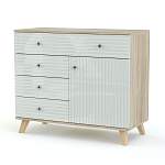 Комод Дания 28 BMS станет интересным акцентом в современных интерьерах стиля лофт и скандинавских. Модель на высоких опорах компактна, но вместительна за счет комбинированной конструкции и незаменима для хранения домашнего текстиля, бытовых, мелочей, размещения предметов декора. Выполненный в сочетании древесных тонов и фрезерованного глянца, комод оборудован одним большим и тремя малыми выдвижными ящиками, а также распашным отделением с полкой. Купить комод Дания 28 BMS, подобрав цветовое решение, вы сможете в нашем интернет-магазине.