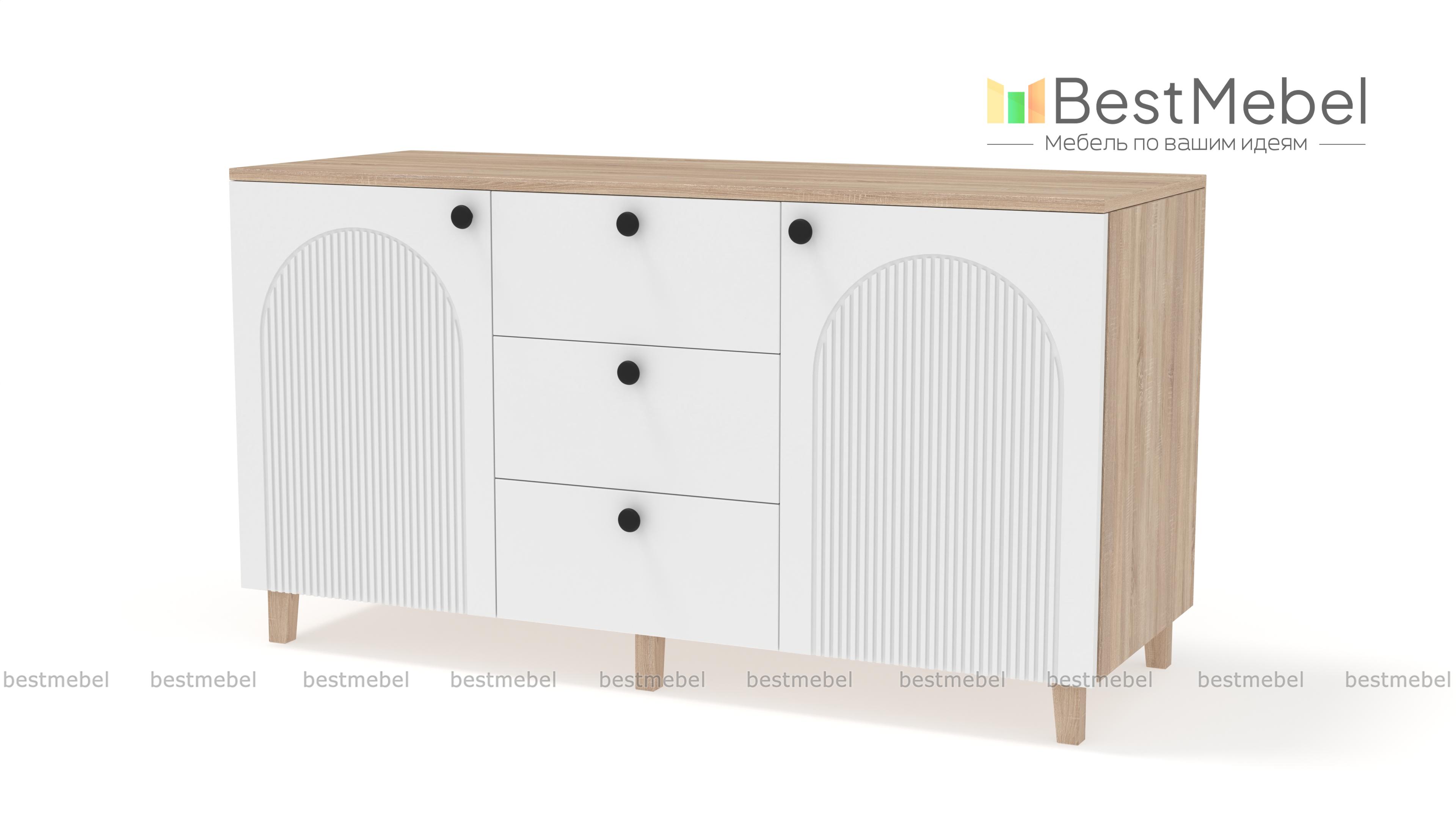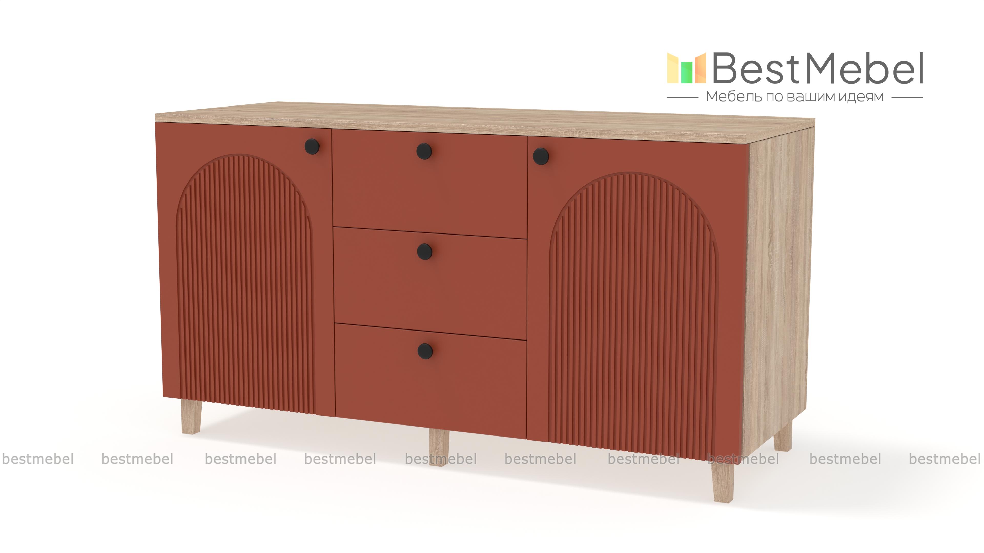 Комод Рене 1 BMS поможет сохранить порядок в комнате и добавит в интерьер стильные акценты. Под широкой столешницей, на которой эффектно смотрится декор, располагаются два распашных отделения с полками и ряд из трех вместительных выдвижных ящиков. В современном дизайне комода использована комбинация темного фактурного фасада и корпуса под древесный массив. Купить комод Рене 1 BMS приглашаем в наш интернет-магазин, подобрав размеры и цвет по своему вкусу.