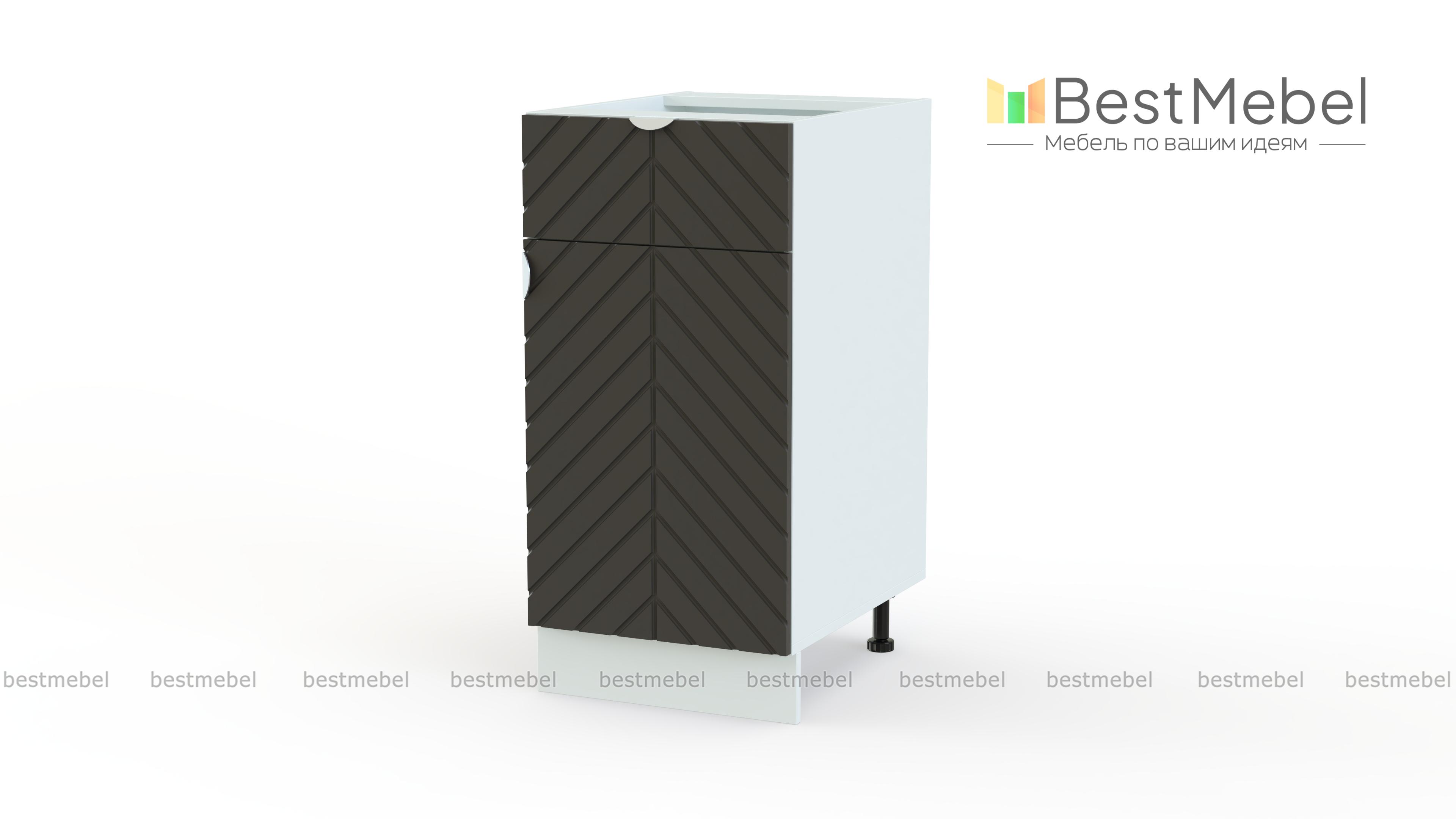 Шкаф нижний с дверцей и ящиком Анаис BMS станет частью стильного кухонного гарнитура. Светлый фасад украшает эффектный диагональный рельеф, полукруглые торцевые ручки выполнены в тон фасаду. Для вашего удобства этот компактный по ширине шкаф оборудован как выдвижным ящичком для мелочей, так и распашным отделением под посуду или продукты. Купить шкаф нижний с дверцей и ящиком Анаис BMS вы сможете в нашем интернет-магазине, по желанию изменив цвет и размеры.