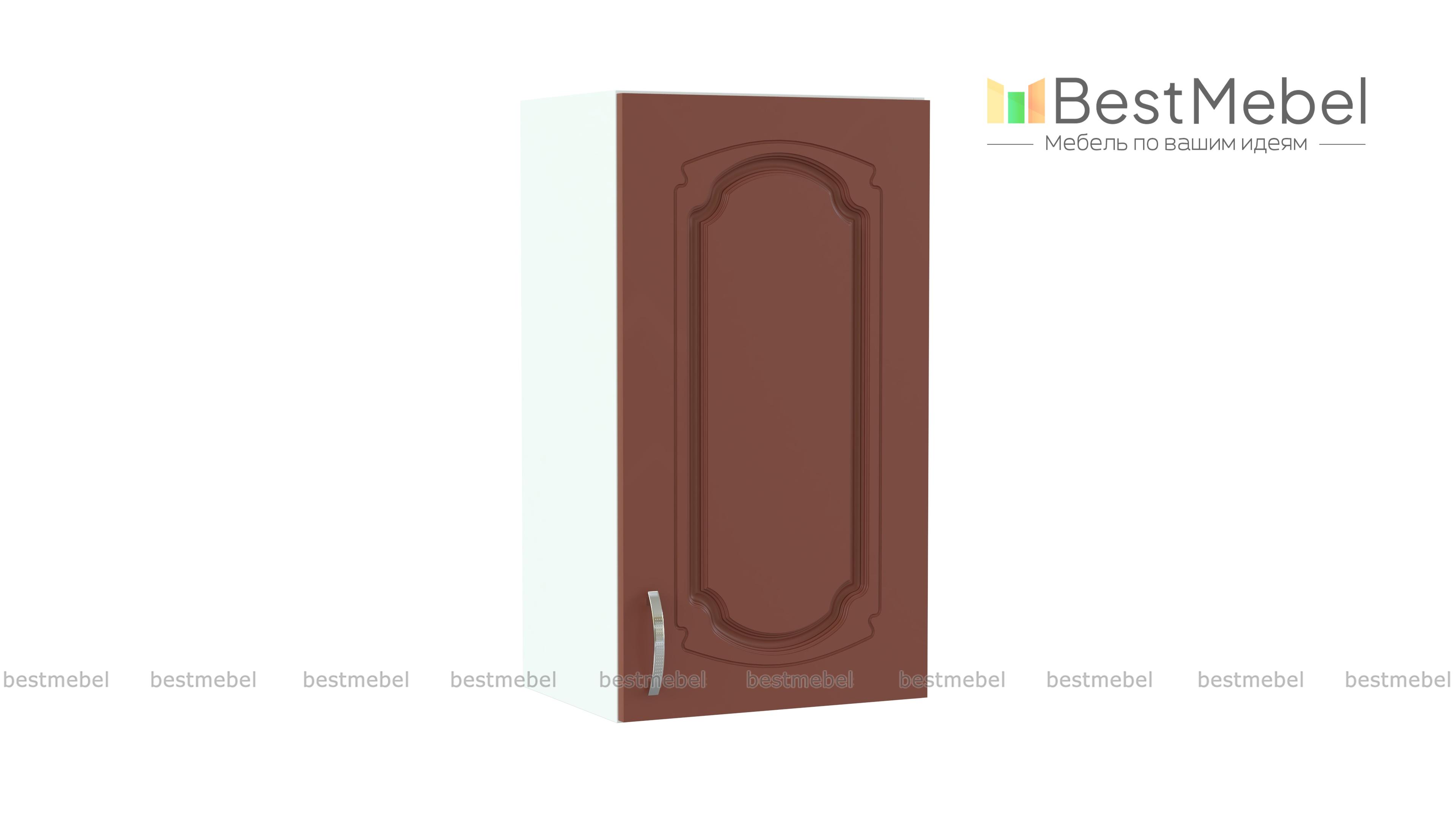 Шкаф верхний с 1-ой дверцей Настя BMS объединил классический дизайн и простую, надежную конструкцию. Модель универсальна и может использоваться как самостоятельно, так и в качестве части модульного комплекта для кухни. Фасад теплых терракотовых тонов, декорированный фрезерованным рисунком, смотрится особенно уютно. За распашной дверцей – просторное отделение с полкой под кухонные аксессуары и продукты. Купить шкаф верхний с 1-ой дверцей Настя BMS по доступной цене вы сможете в нашем интернет-магазине.