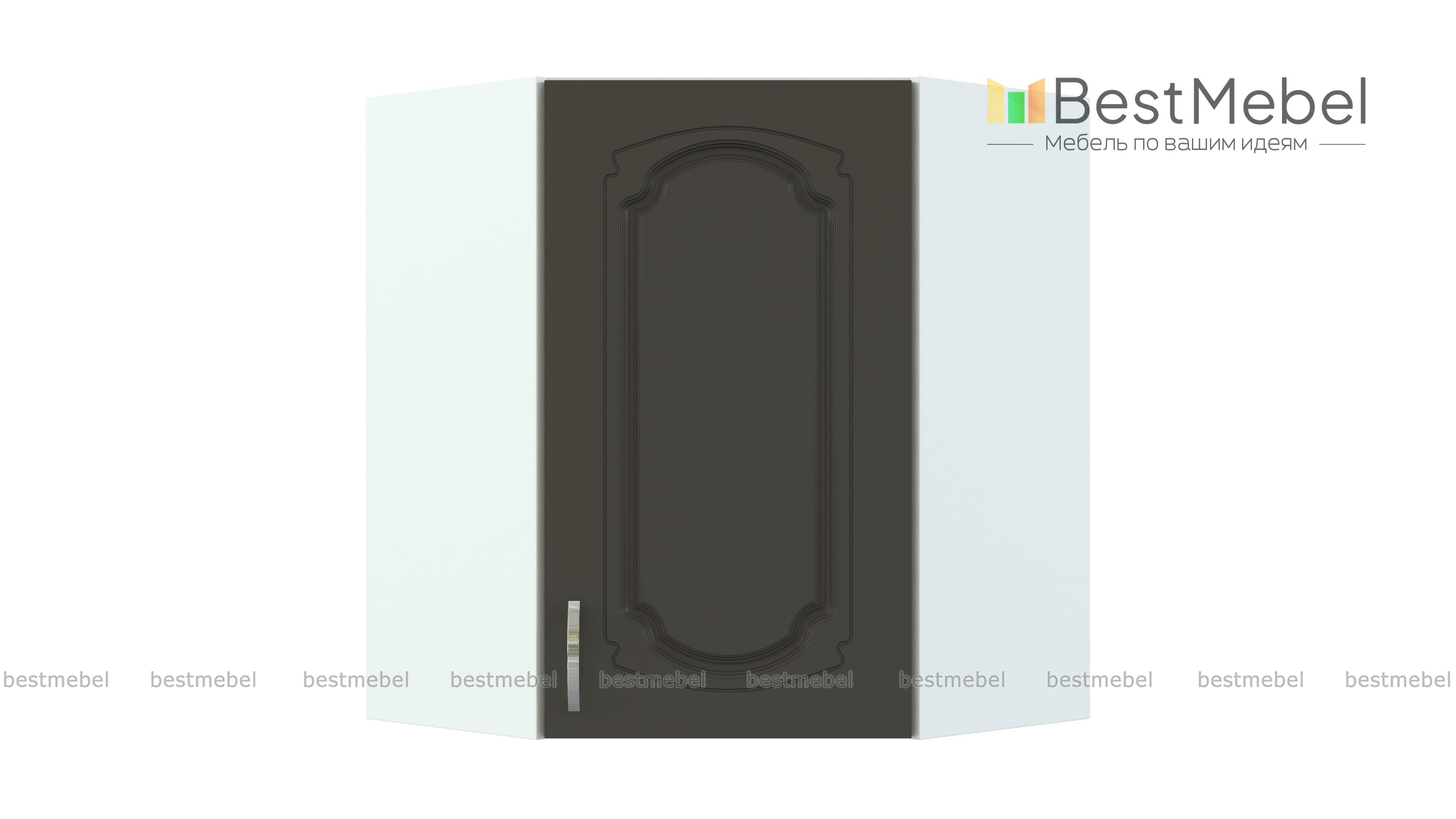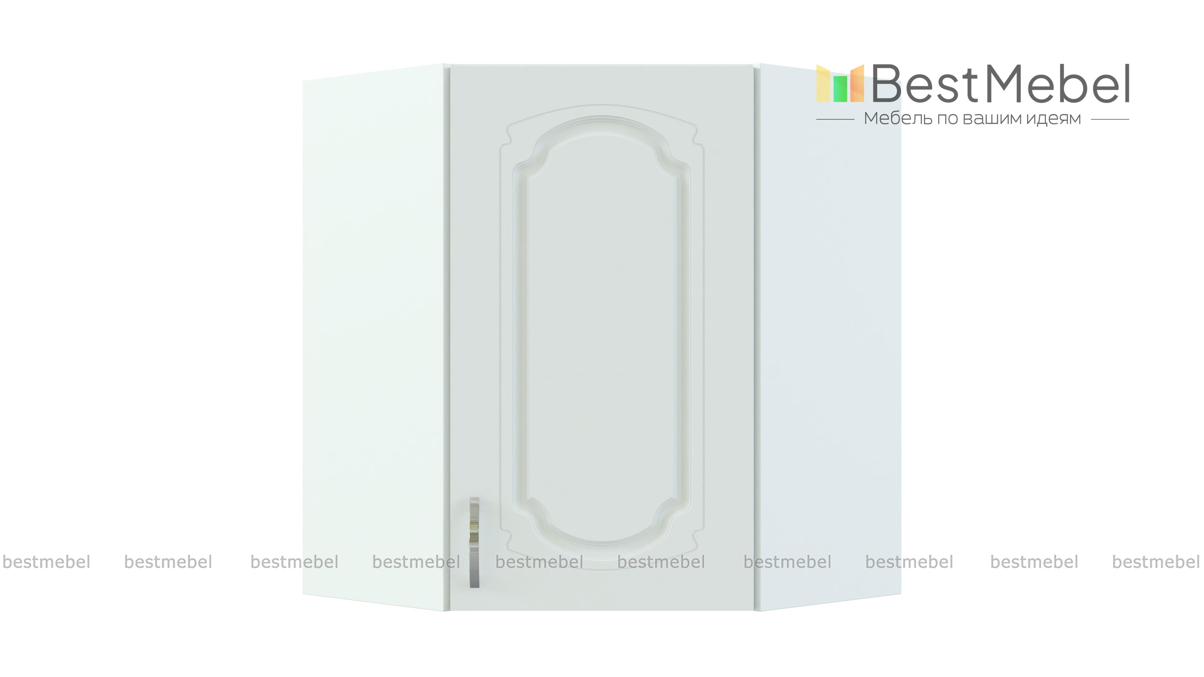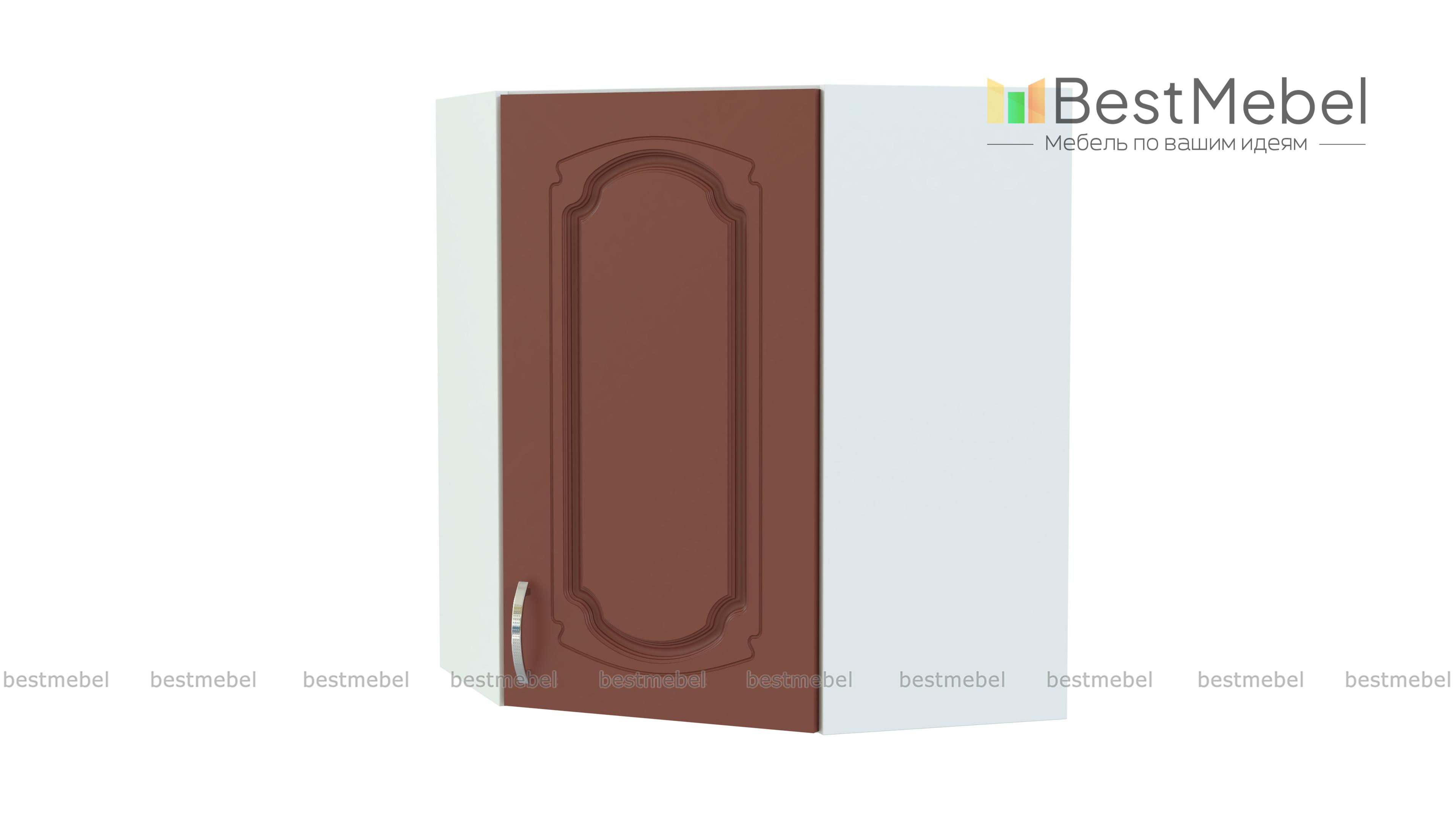 Шкаф верхний угловой Настя BMS займет центральное место в композиции из навесных модулей кухонного комплекта. Шкаф выполнен в характерных для классического стиля теплых тонах и украшен по фасаду элегантной фрезеровкой. Внутреннее отделение с полкой отличается особенной вместительностью и подходит для хранения сыпучих продуктов, специй, посуды и многого другого. Купить шкаф верхний угловой Настя BMS простой и надежной распашной конструкции вы сможете недорого в нашем интернет-магазине.