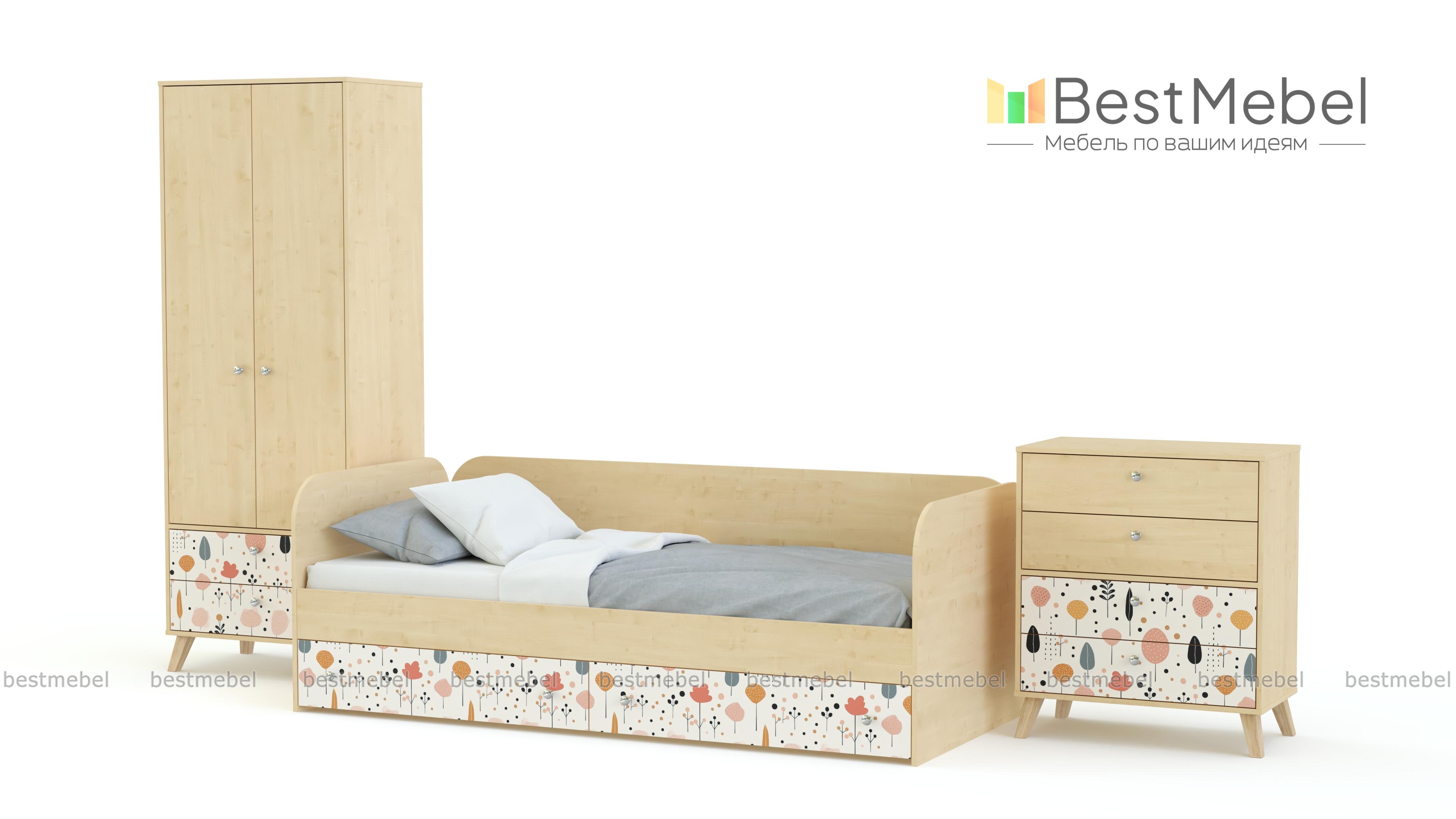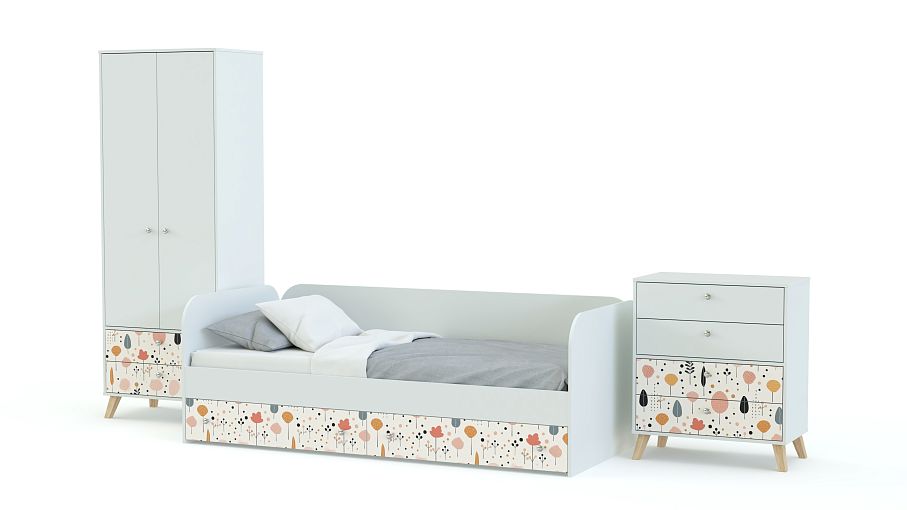 Детская комната Эльза 1 BMS — стильная, функциональная и компактная, что особенно важно для небольших помещений. Кровать-софа прекрасно подходит для сна и дневного отдыха, а для хранения гардероба, белья и игрушек в композицию входят двухстворчатый шкаф с выдвижными ящиками и комод. Нейтральные базовые цвета делают комнату светлее и просторнее, красок добавляет симпатичный фасадный принт. Купить детскую комнату Эльза 1 BMS вы сможете в нашем интернет-магазине, подобрав подходящие именно вам цвета и размеры.
