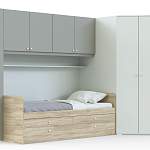 Детская комната Рафаэль 4 BMS объединила комфортную зону отдыха и удобную систему хранения. Угловая форма модели позволит вам сэкономить полезную площадь комнаты для активных игр. Композиция включает в себя платяной шкаф-трапецию и секцию с антресольными распашными шкафчиками, торцевым стеллажом и расположенной в нише кроватью с бельевыми ящиками и дополнительным спальным местом в основании. Купить детскую комнату Рафаэль 4 BMS, в оформлении которой скомбинированы спокойные и яркие оттенки, приглашаем в наш интернет-магазин.