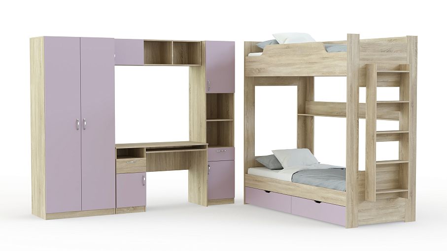 Детская мебель Лотос 8д BMS – отличный выбор для современной комнаты двух детей. В комплект входят двухъярусная кровать с выдвижными ящиками и открытой полкой, компьютерный стол с тумбой, комбинированный пенал, антресольная секция и распашной шкаф для одежды. Все предметы выполнены в сочетании корпуса древесных тонов и ярких фасадов, а разнообразие цветовых решений позволит гармонично вписать мебель в интерьер. Купить детскую мебель Лотос 8д BMS приглашаем по лучшей цене в наш интернет-магазин.