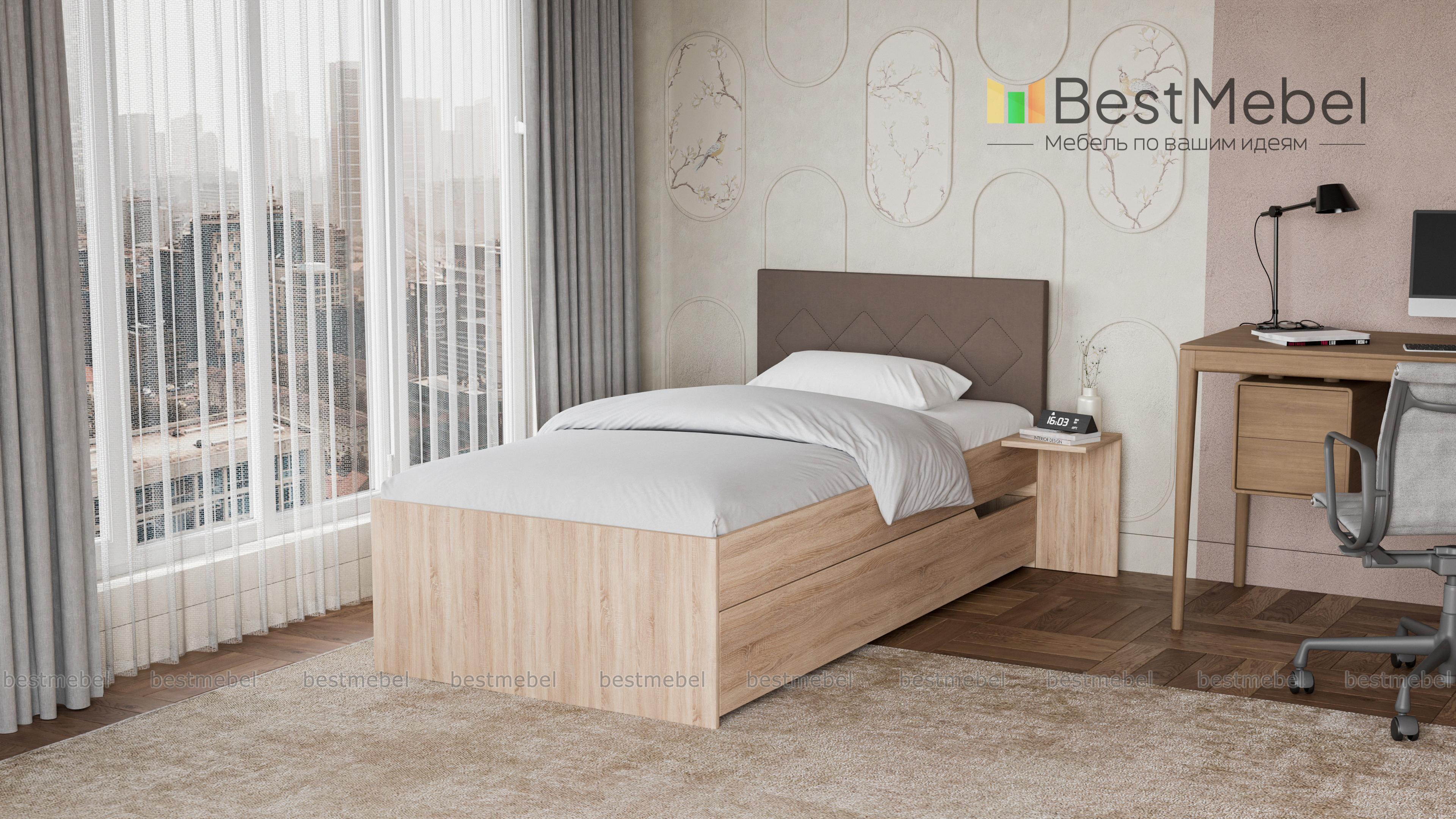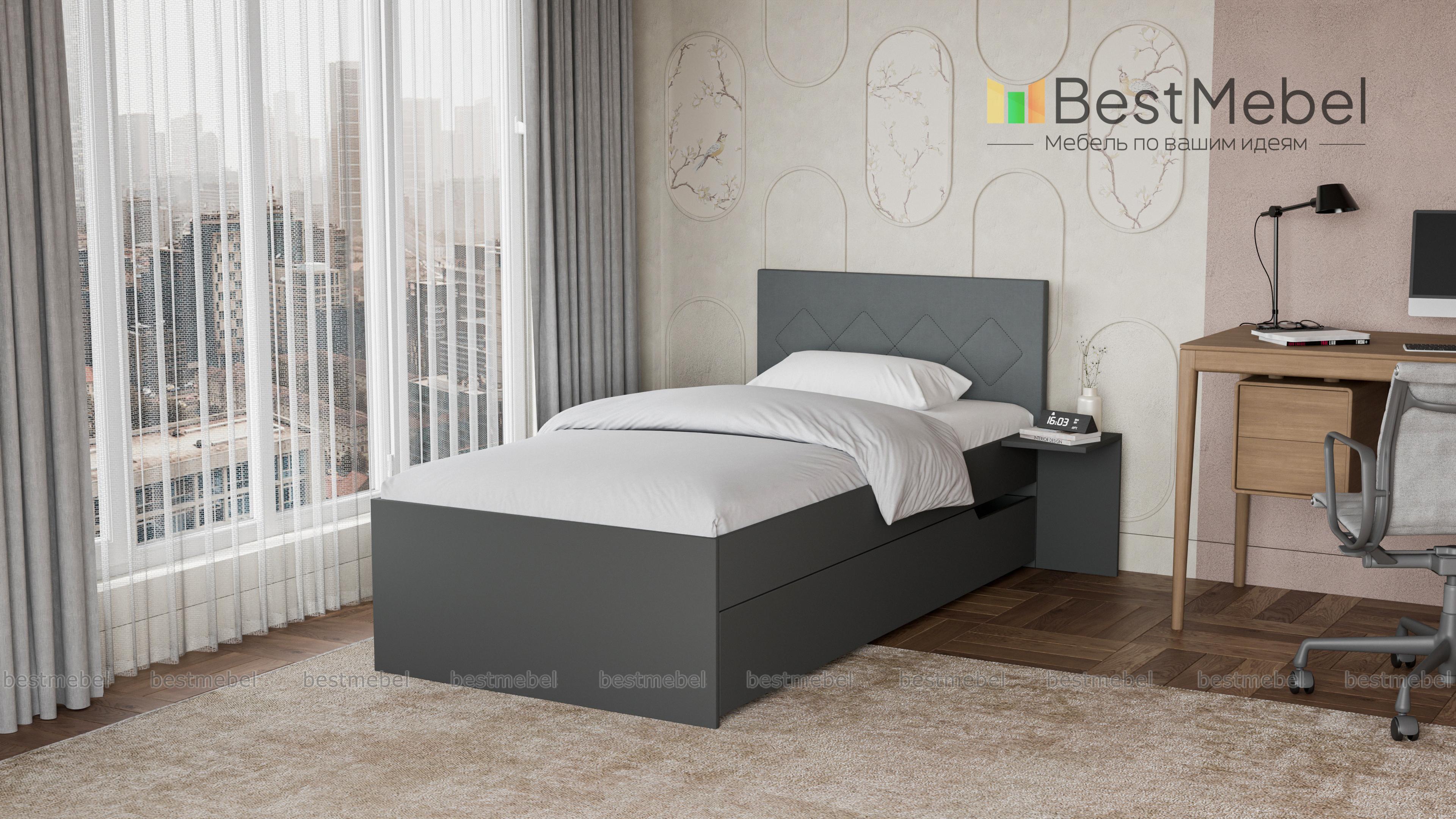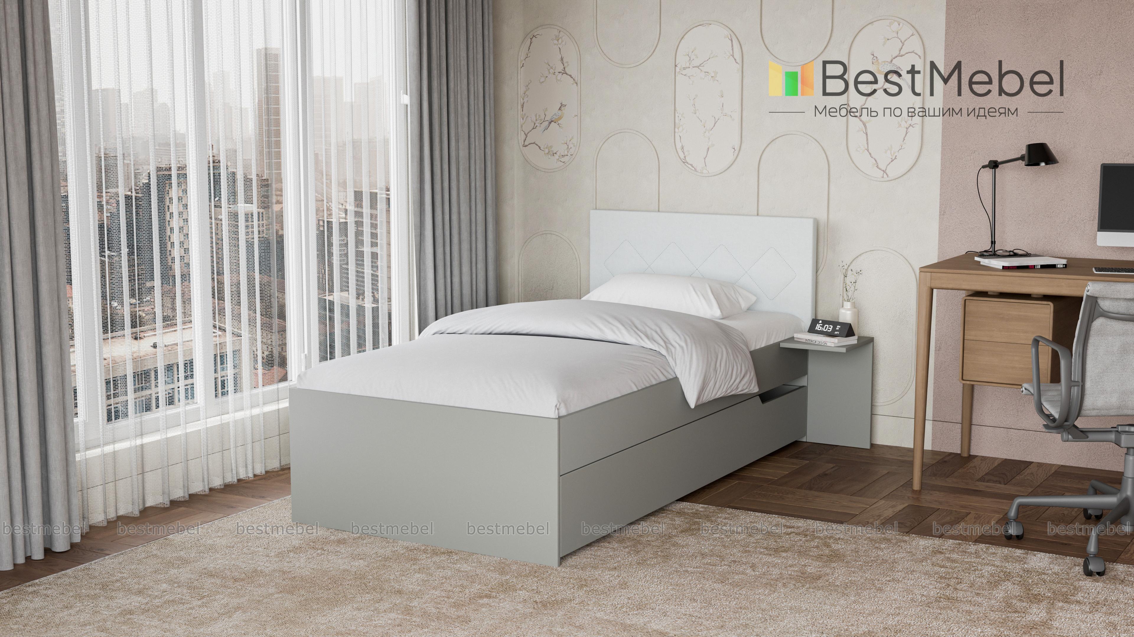 Кровать Магнолия 2 BMS – элегантная современная модель в нейтральном оттенке с контрастным изголовьем, которая дополнит интерьер молодежной комнаты. Лаконичная по форме, кровать оборудована просторным спальным местом без спинки в изножье, спинка изголовья в мягкой обивке декорирована прострочкой ромбами. Для хранения постельных принадлежностей предусмотрен широкий подкроватный ящик, а необходимые под рукой мелочи разместятся на приставном ночном столике. Купить кровать Магнолия 2 BMS вы сможете в нашем интернет-магазине с учетом необходимых параметров.