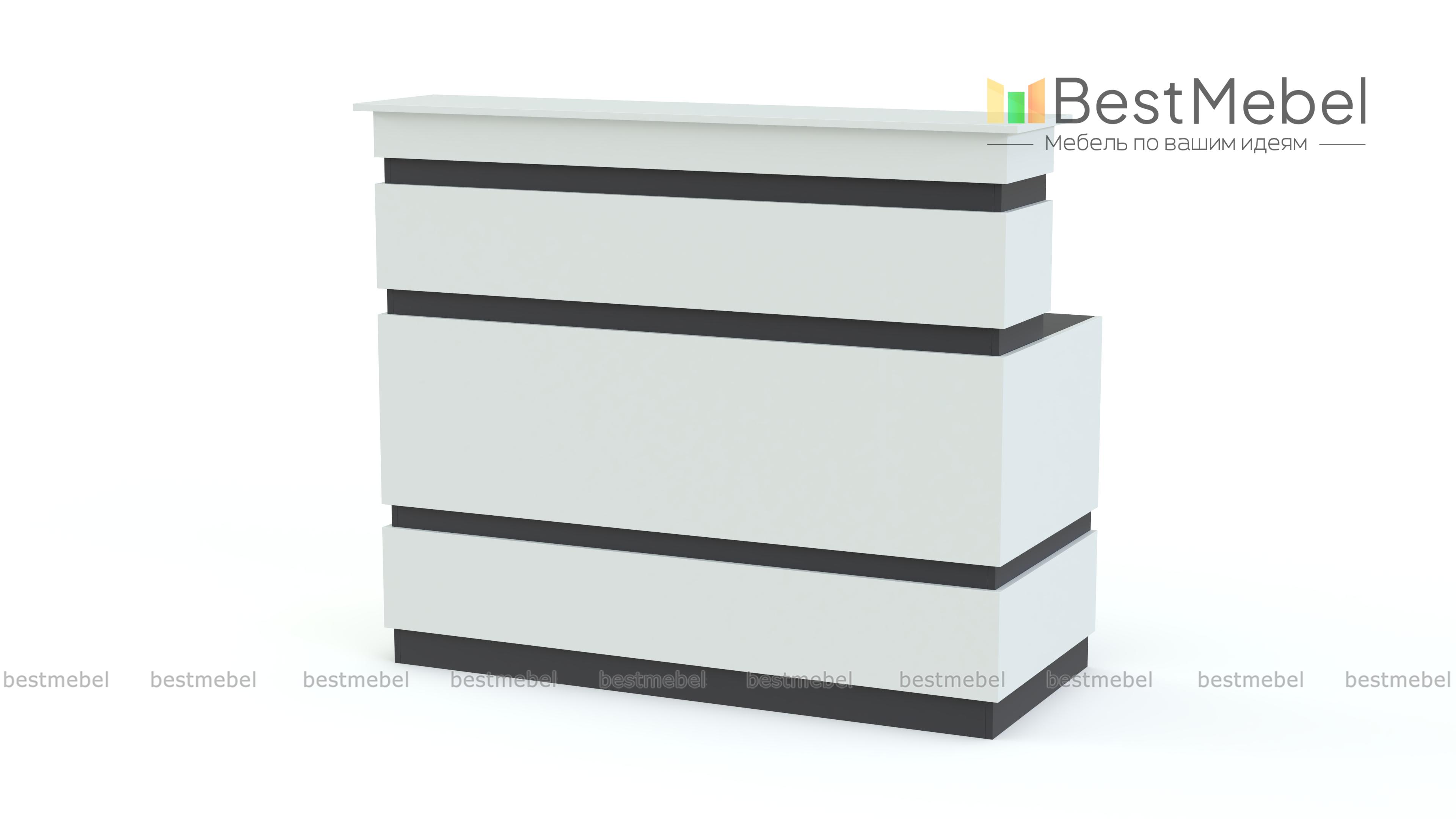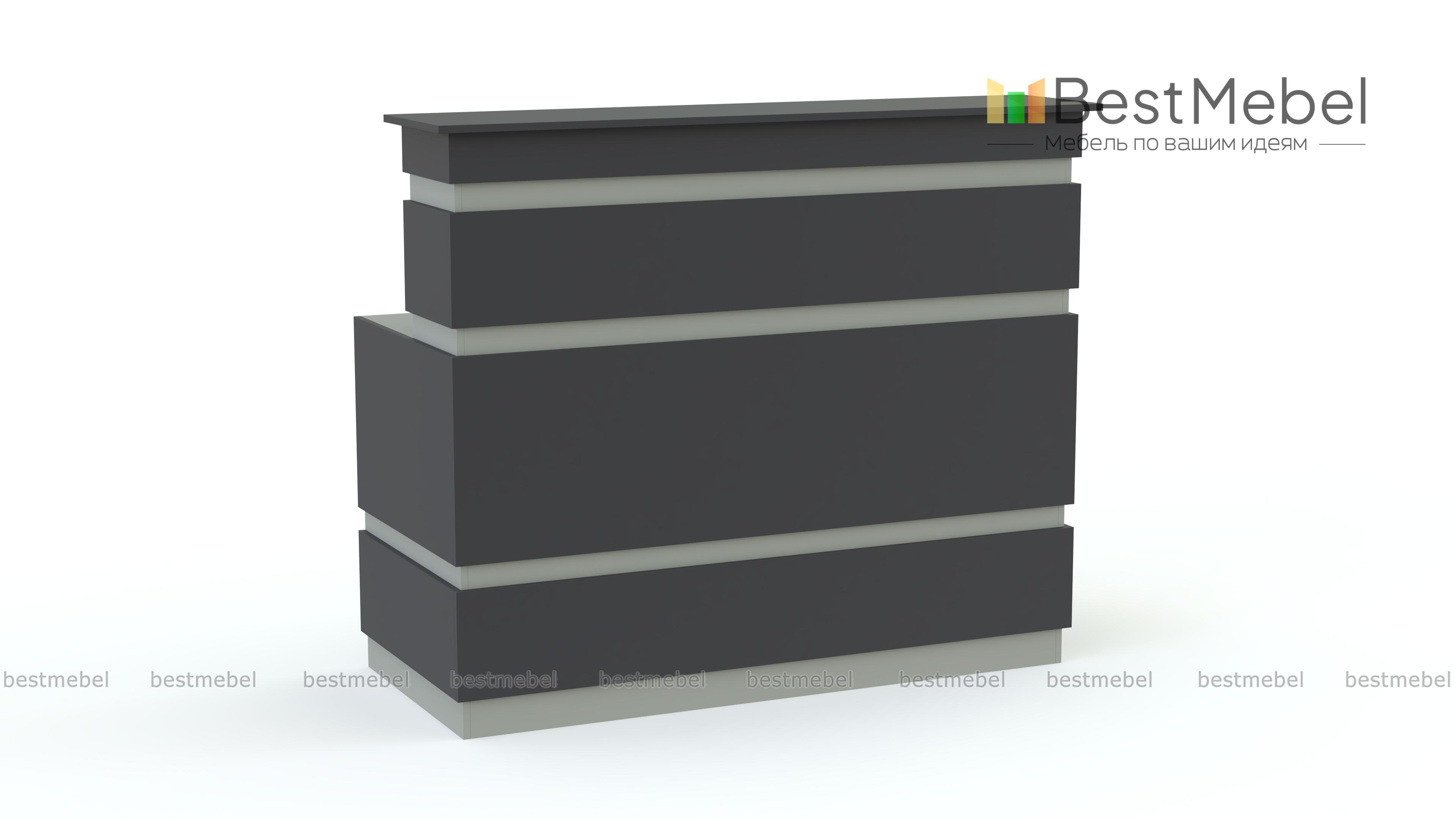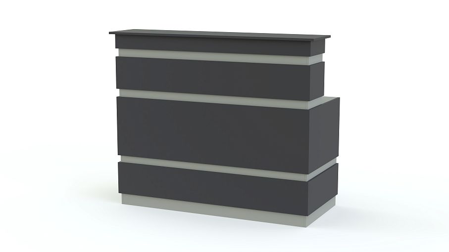 Стойка ресепшен № 53 BMS станет не только практичным дополнением интерьера, но и ярким акцентом. Лаконичная по форме, компактная модель выполнена в нестандартном сочетании графитовых цветов и подчеркнет имидж стильного салона красоты. Классическая конструкция представляет собой стол с надстройкой. Верхняя столешница будет удобна для посетителей, на нижней разместится все необходимое для работы администратора. Купить стойку ресепшен № 53 BMS приглашаем в наш интернет-магазин по приятной цене.
