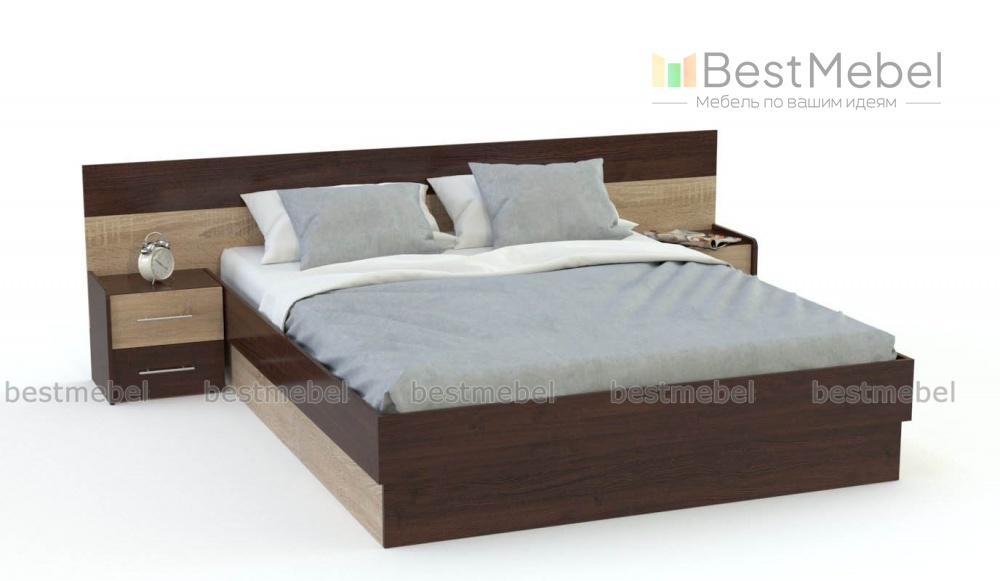 Кровать Верде BMS станет центральным предметом меблировки современной спальни и подарит владельцам комфортный отдых. Просторное спальное место располагается на устойчивом подиуме, а прикроватные тумбы представляют собой единое целое с широкой спинкой изголовья. Глухое основание не позволит скапливаться пыли и облегчит уборку. Контрастные древесные тона подчеркивают строгие четкие линии кровати. Кровать с подъемным механизмом.