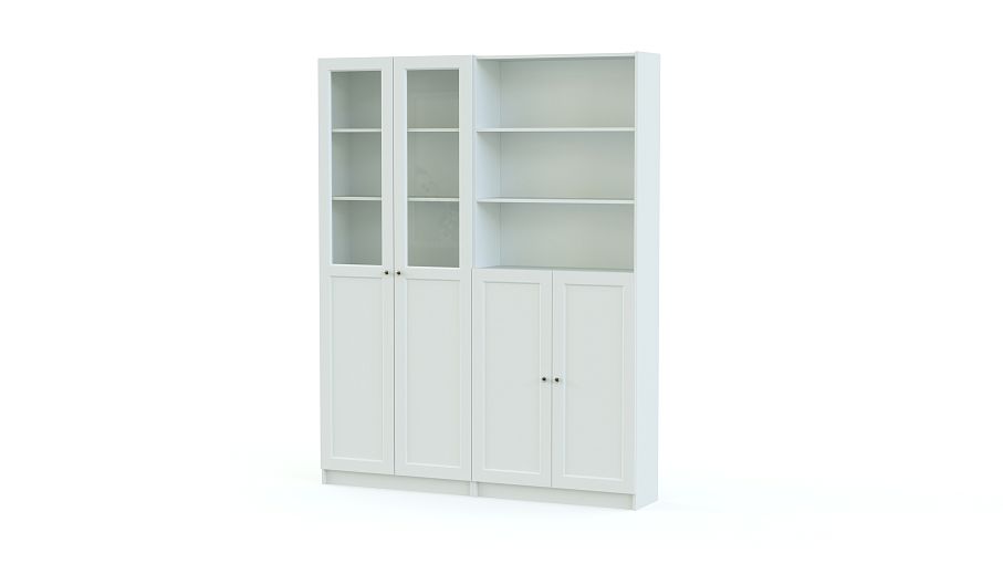 Шкаф Билли Оксберг Billy Oxberg 27 состоит из двух комбнированных распашных шкафов – с застекленными и открытыми полками. За глухими дверцами в нижней части будут скрыты разнообразные бытовые вещи, бумаги и книги, и комната примет аккуратный вид. Композиция классического дизайна в популярном светлом оттенке универсальна и дает много возможностей для экспериментов с цветом. Купить шкаф Билли Оксберг Billy Oxberg 27 по доступной цене вы сможете в нашем интернет-магазине. Выбирайте мебель в стиле IKEA (ИКЕА) от производителя BestMebelShop!