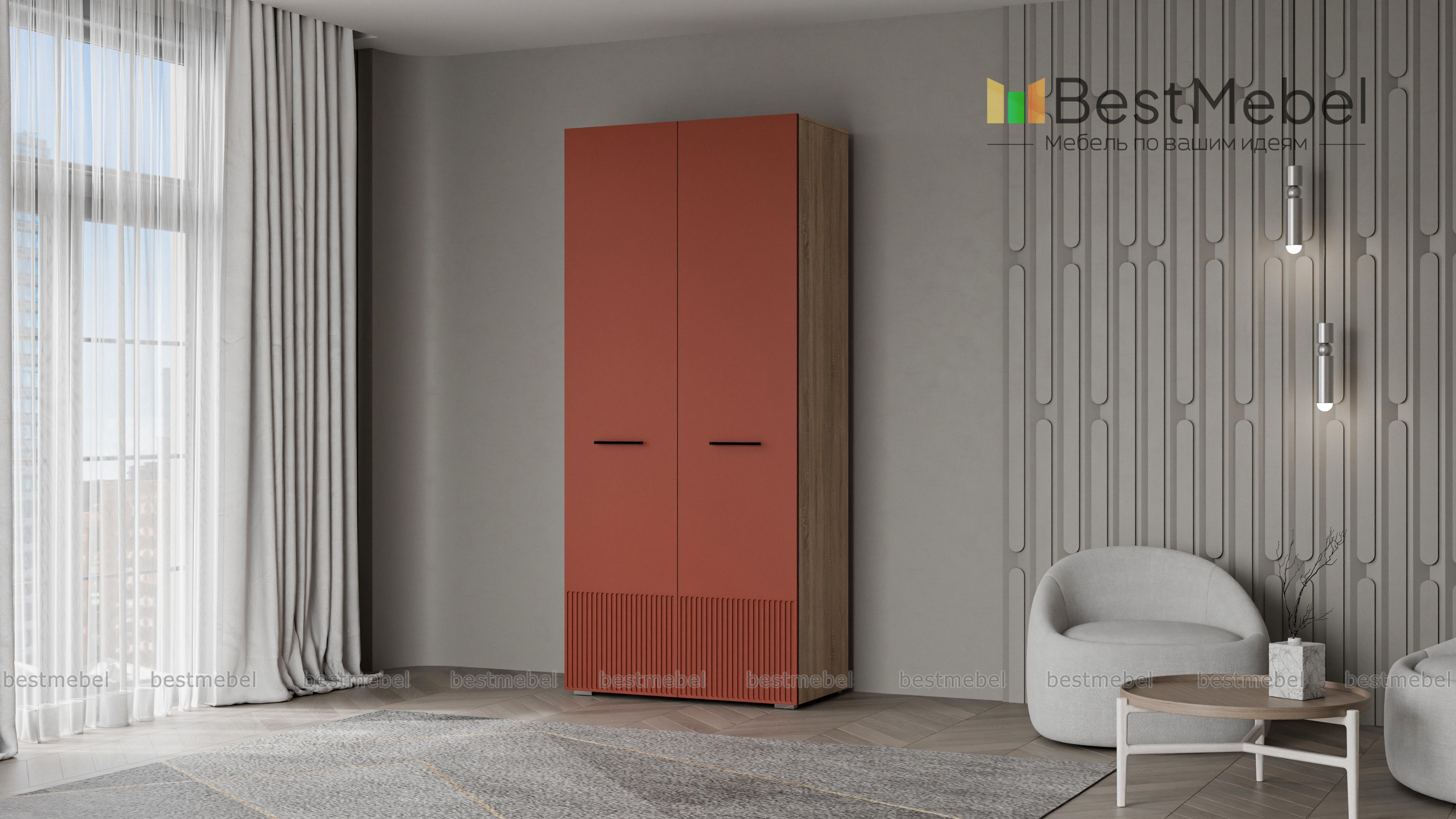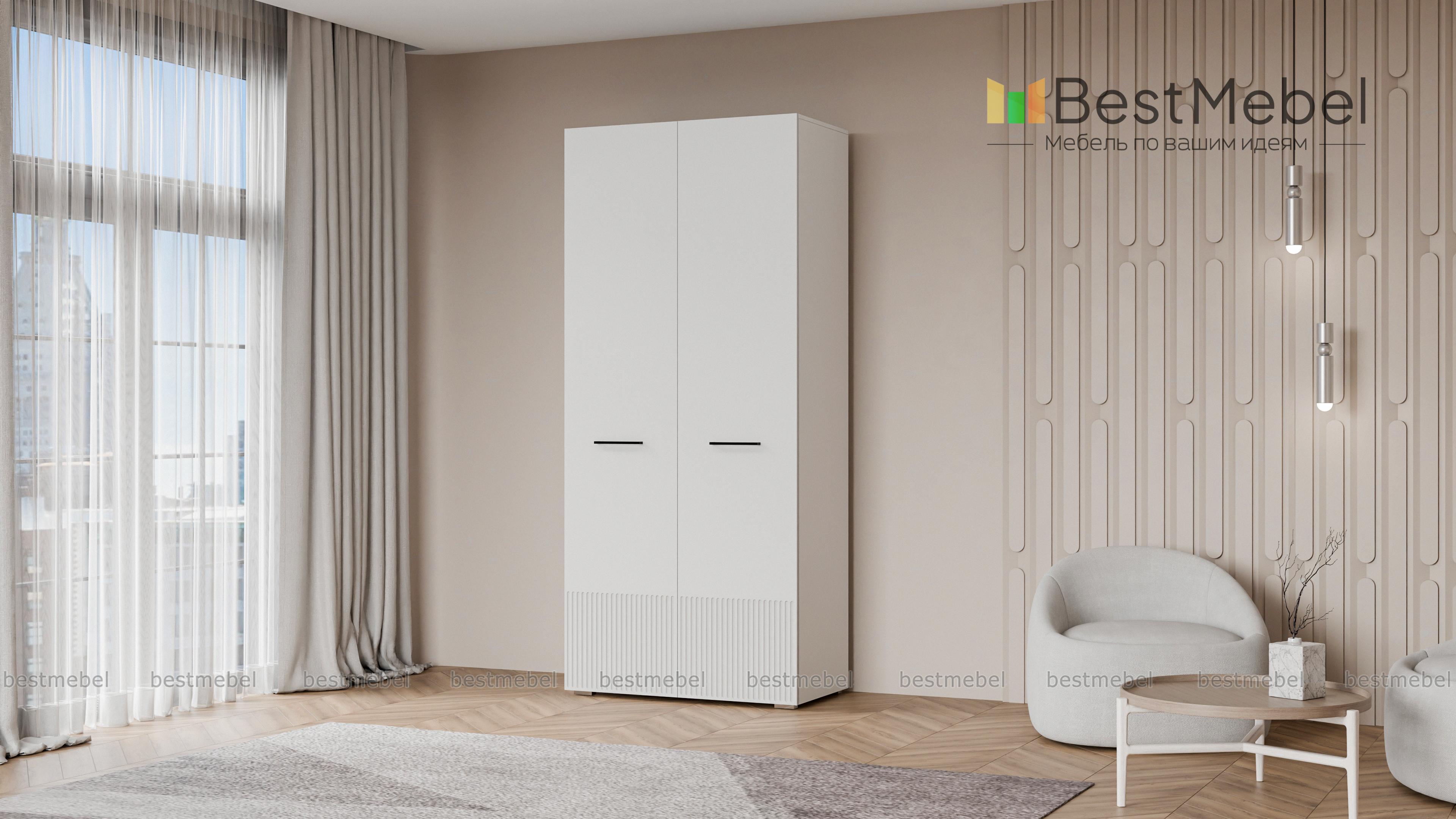 Шкаф распашной Декарт 2 BMS поможет удобно расположить повседневные вещи даже при малом метраже. Система хранения компактной двухдверной модели включает в себя штангу для одежды и расположенную сверху полку для коробок и других габаритных предметов. Фасад в цвет корпуса выполнен из МДФ и оформлен стильным рельефом, поперечные ручки-скобы добавляют стильный акцент. Купить шкаф распашной Декарт 2 BMS в любом размере и оттенке из нашего каталога приглашаем на сайт интернет-магазина.