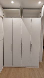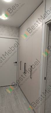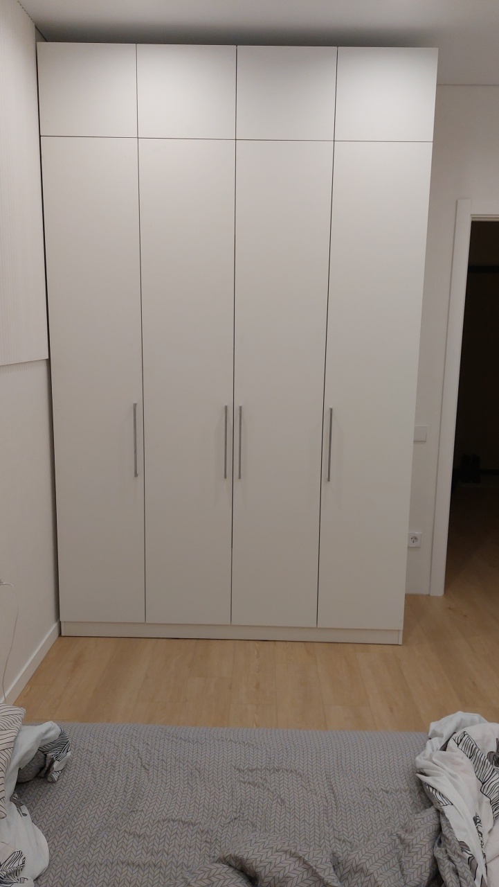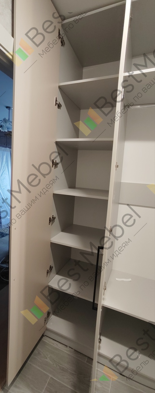 Шкаф распашной Остин Лайт 3 BMS (1860х2490х550), заказ 00000204766. Делали ремонт в коридоре и необходимо было заменить два шкафа, прихожую и дверцы на антресолях. Всё заказали здесь. Увидели на сайте этот шкаф и поняли - это то, что искали. Самостоятельно поменяли размеры, цвет фасадов (Тэффи L) и цвет самого шкафа (серый), кромку лицевых частей на 2 мм. ручки оставили эти (понравились), петли поменяли на Блюмовские с доводчиками. Внутри не меняли, был как надо. Середина - штанга и две полки (сверху и снизу), по бокам полки. Получился очень большой и вместительный шкаф. После оформления заказа на сайте, перезвонила менеджер (минут через 20), еще раз всё уточнила и перепроверила, помогла с точными размерами, чтобы шкаф точно встал в нишу. Всё изготовили быстро. Позвонили и согласовали день доставки. Доставка хорошая, оформляли с поднятием в квартиру. Комплектация полная, всё целое. Выдали документы с гарантией и телефоном компании по сборке. Позвонили туда и через час с нами связался сборщик, согласовали уже с ним дату и время. Отличный парень по сборке мебели. Собрал нам сразу два шкафа и прихожую за 4 часа. Спасибо, что появился такой интернет-магазин! Цена шкафа намного ниже, чем заказывать в компаниях по изготовлению мебели на заказ (узнавали в 5 компаниях) и сроки изготовления в несколько раз быстрее. Спасибо, что появился такой интернет-магазин!