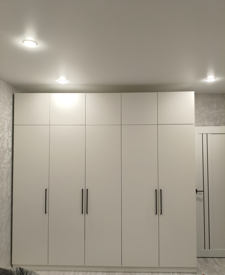 Заказ 00000275042, шкаф распашной Остин Лайт 6 BMS (1700х2500х500). Это не первый мой шкаф с БестМебель. Классно, что можно придумать свое наполнение, очень удобно. В целом качество нормальное, кое-где есть микро сколы, но их видно только при ближайшем рассмотрении, но не при ежедневном использовании. Фурнитура приемлемая, только на верхних полках мы просили не устанавливать пуш-ту-опен механизм, иначе дверцы немного оттопыриваются. Но поскольку туда убраны редко используемые вещи, это не проблема. Так что могу рекомендовать, особенно если требуется какое-то нестандартное исполнение.