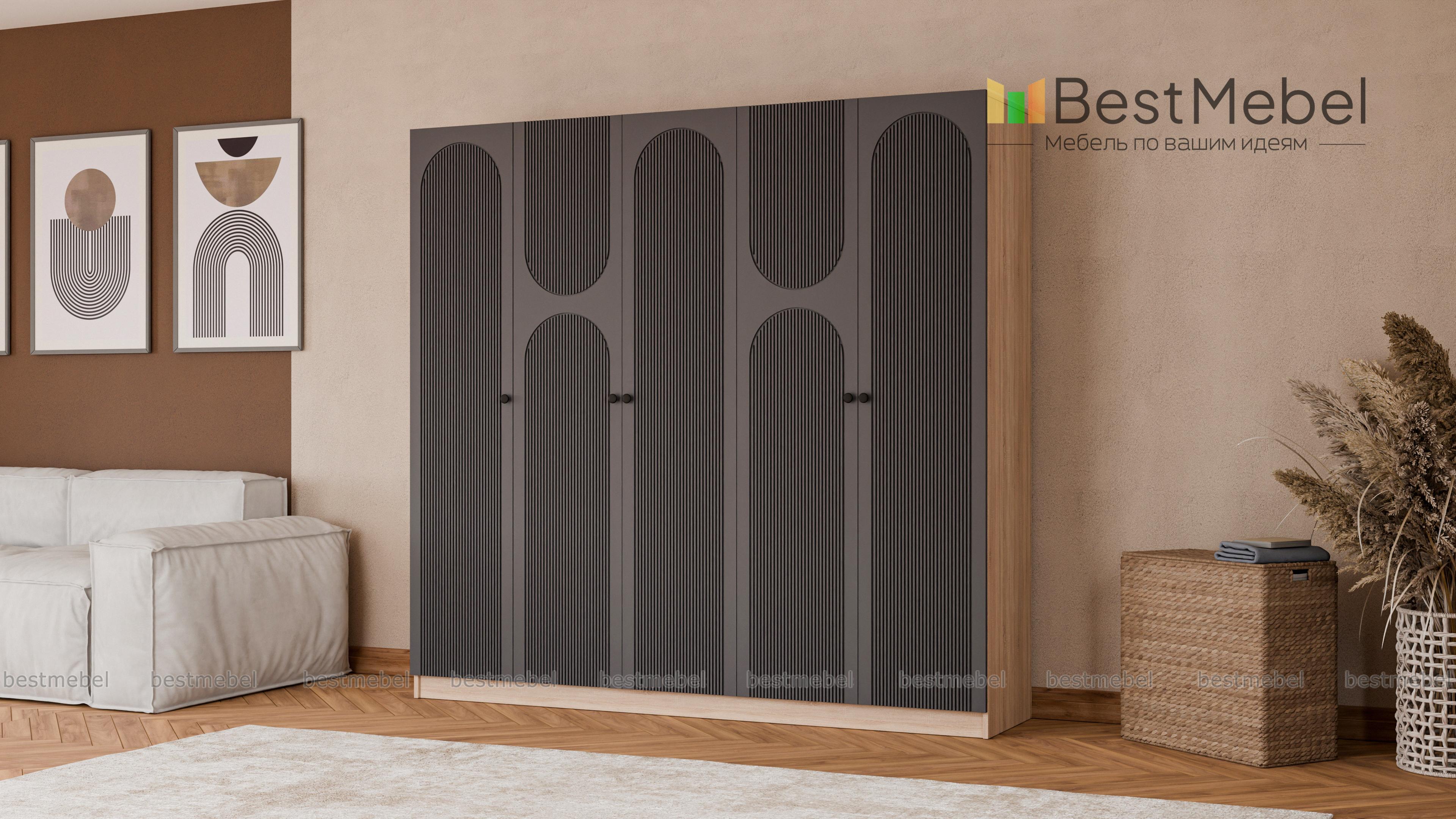 Шкаф распашной Рене 31 BMS подходит для установки в спальнях, прихожих и детских комнатах. Вместительная пятидверная модель выглядит легкой за счет светлого фасада с изящным рельефом. Бельевые стеллажи и платяные штанги помогут компактно расположить вещи на вешалках, трикотаж и постельное белье, а распашные дверцы обеспечивают отличный обзор содержимому. Купить шкаф распашной Рене 31 BMS вы сможете в нашем интернет-магазине, подобрав размеры и цвет по каталогу.