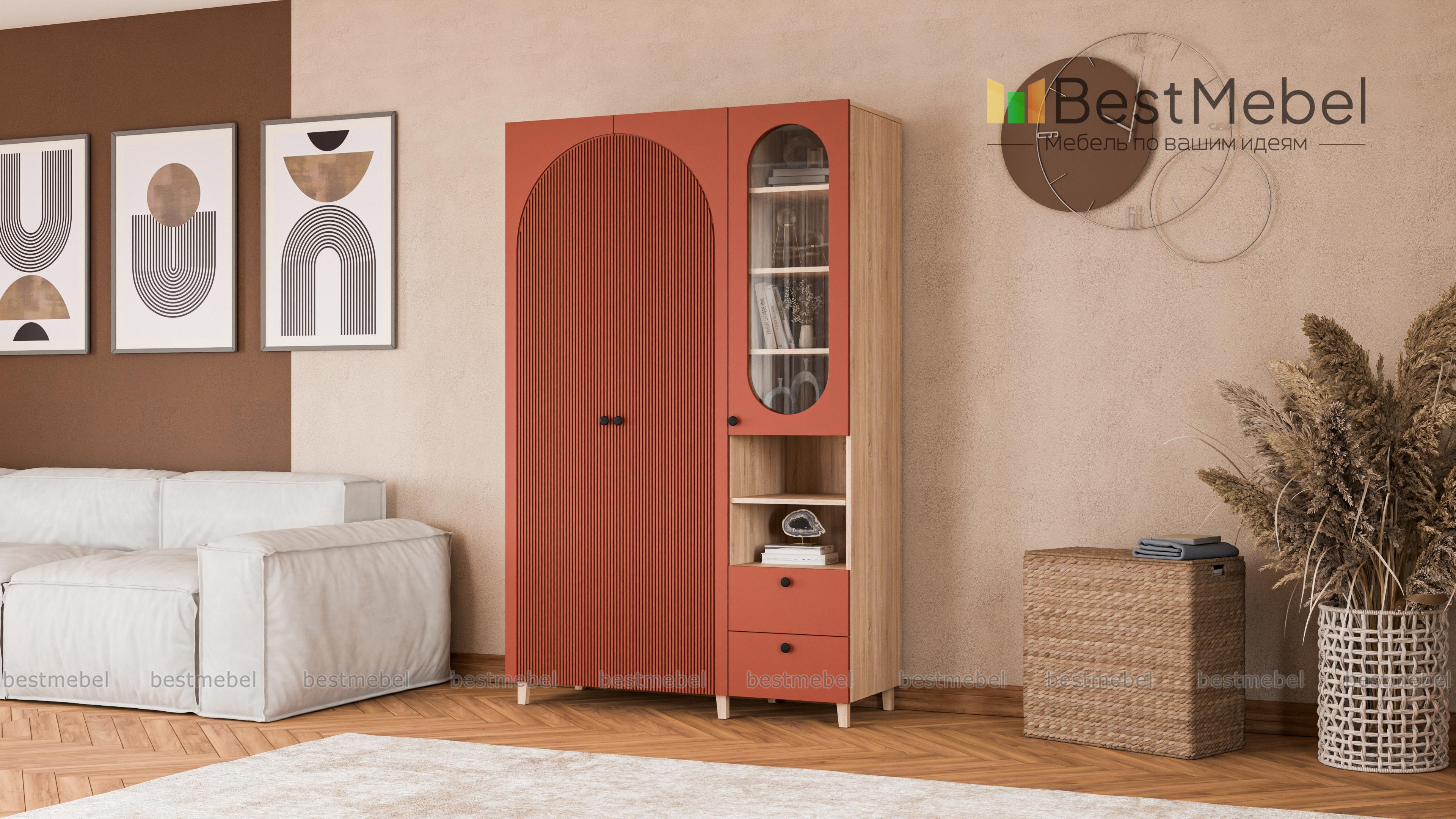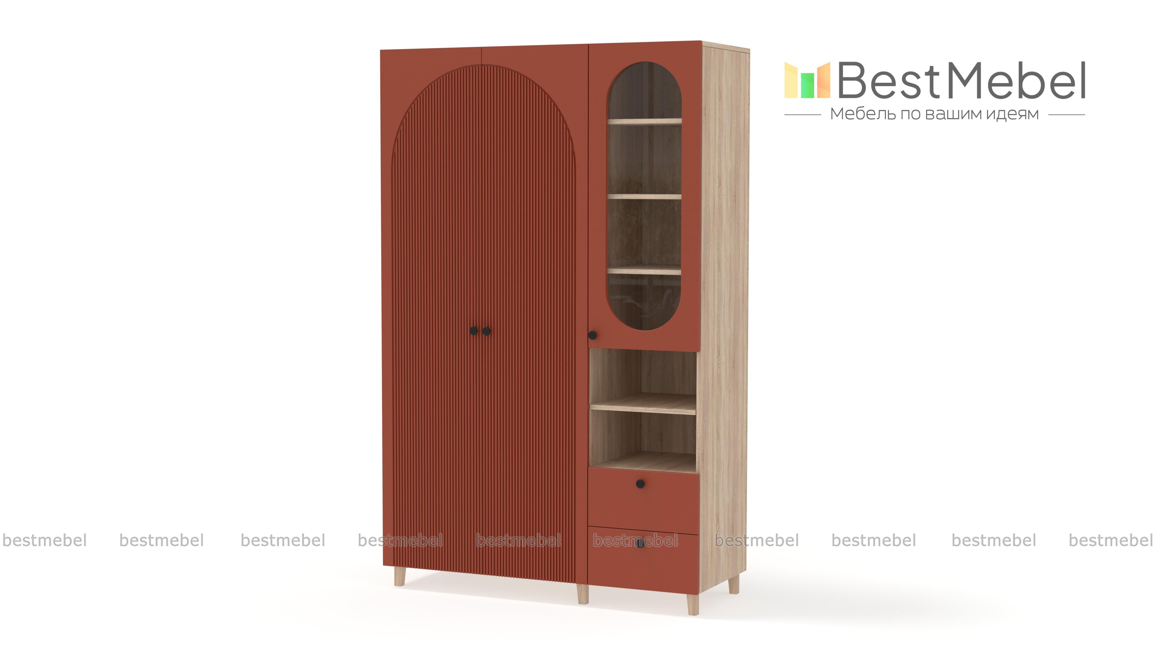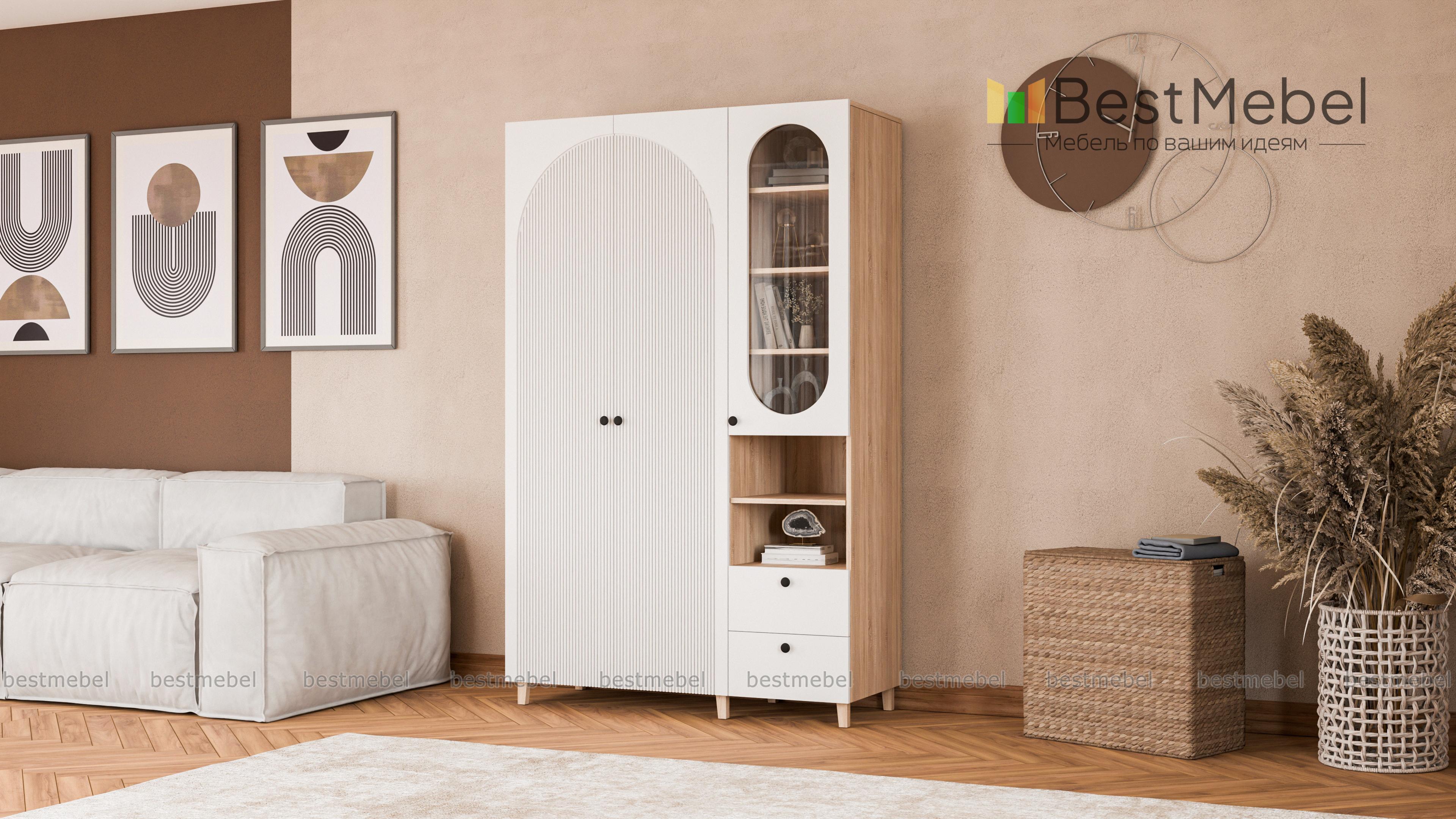Шкаф распашной Вивьен 22 BMS на деревянных ножках — элегантный и функциональный. Грамотно организовать хранение помогут отделение со штангой, витрина, открытая секция с полкой и пара выдвижных ящиков. Универсальное цветовое решение шкафа сочетается практически с любой отделкой и декором, а полукруглые вырезы вносят в интерьер стильный акцент. Купить шкаф распашной Вивьен 22 BMS вы сможете в нашем интернет-магазине, по желанию изменив цвет и размеры.