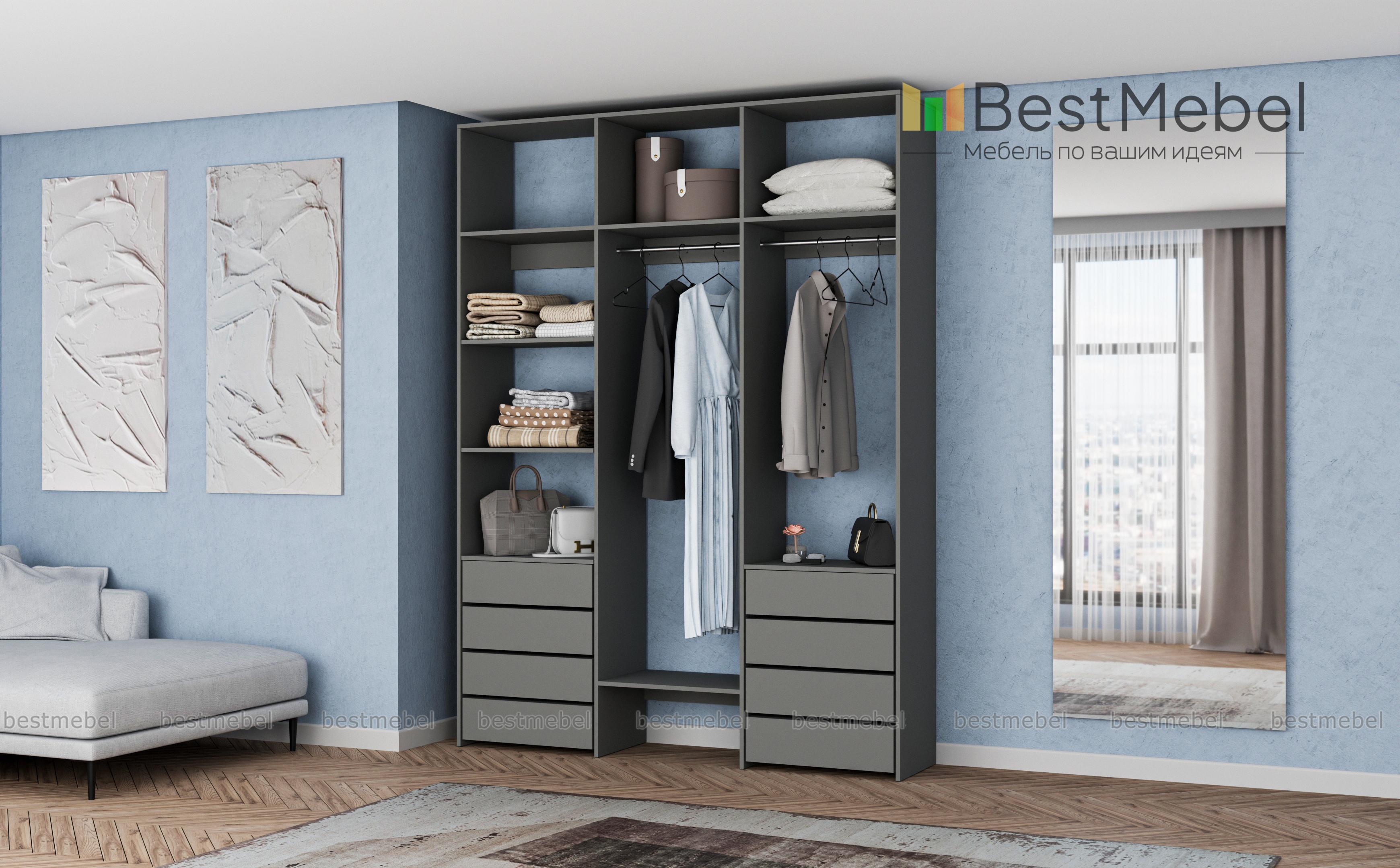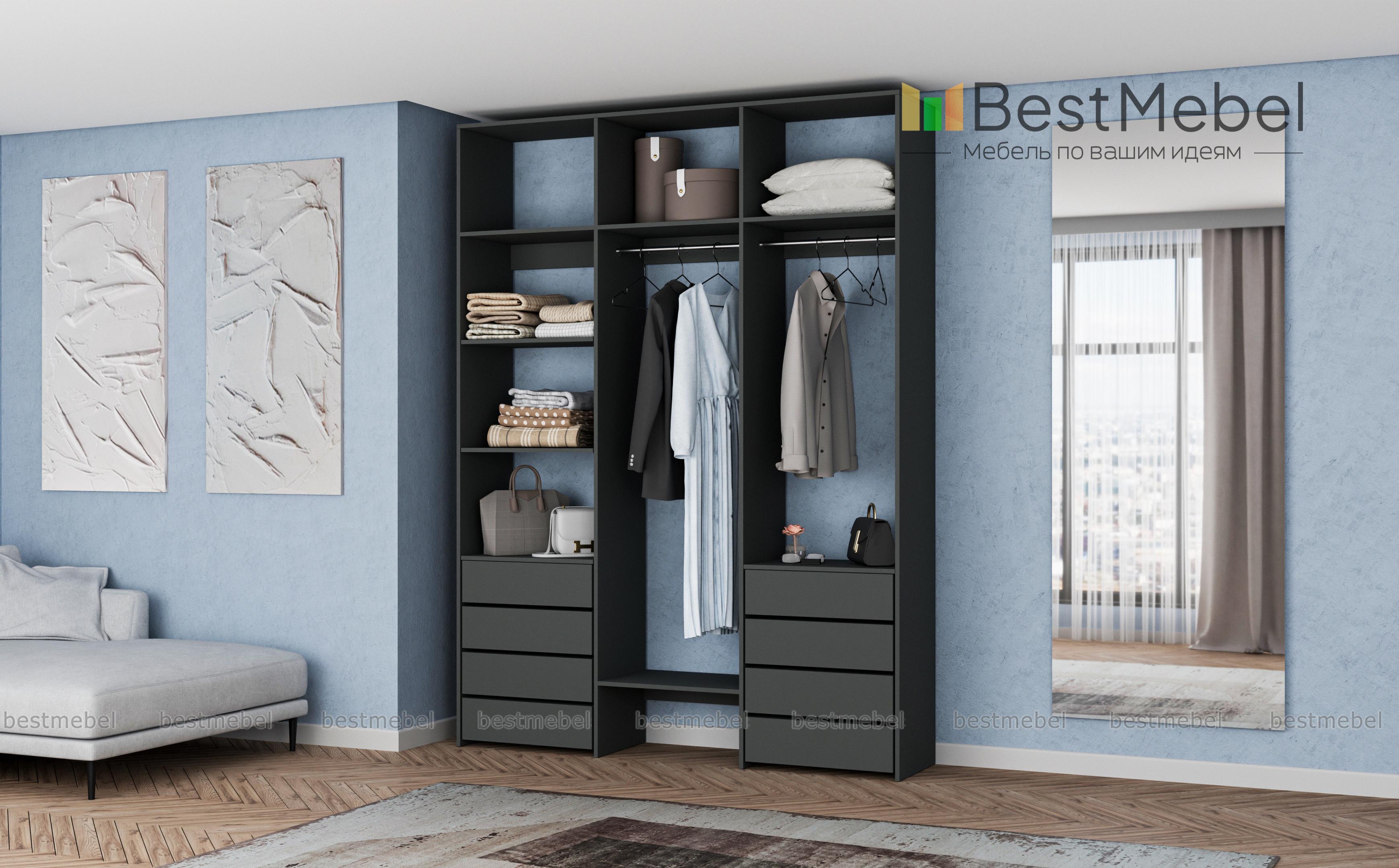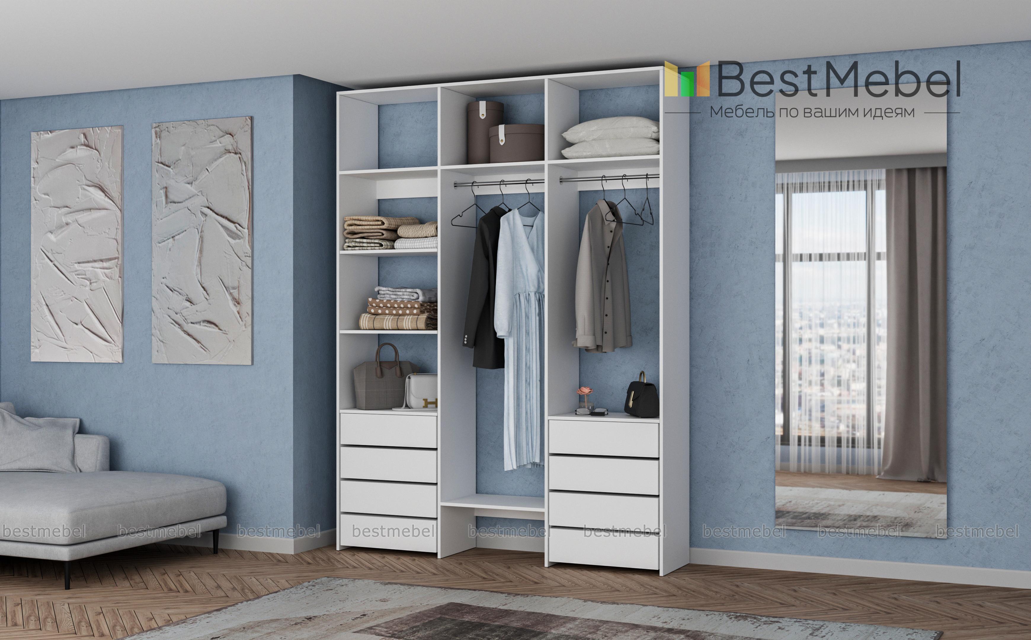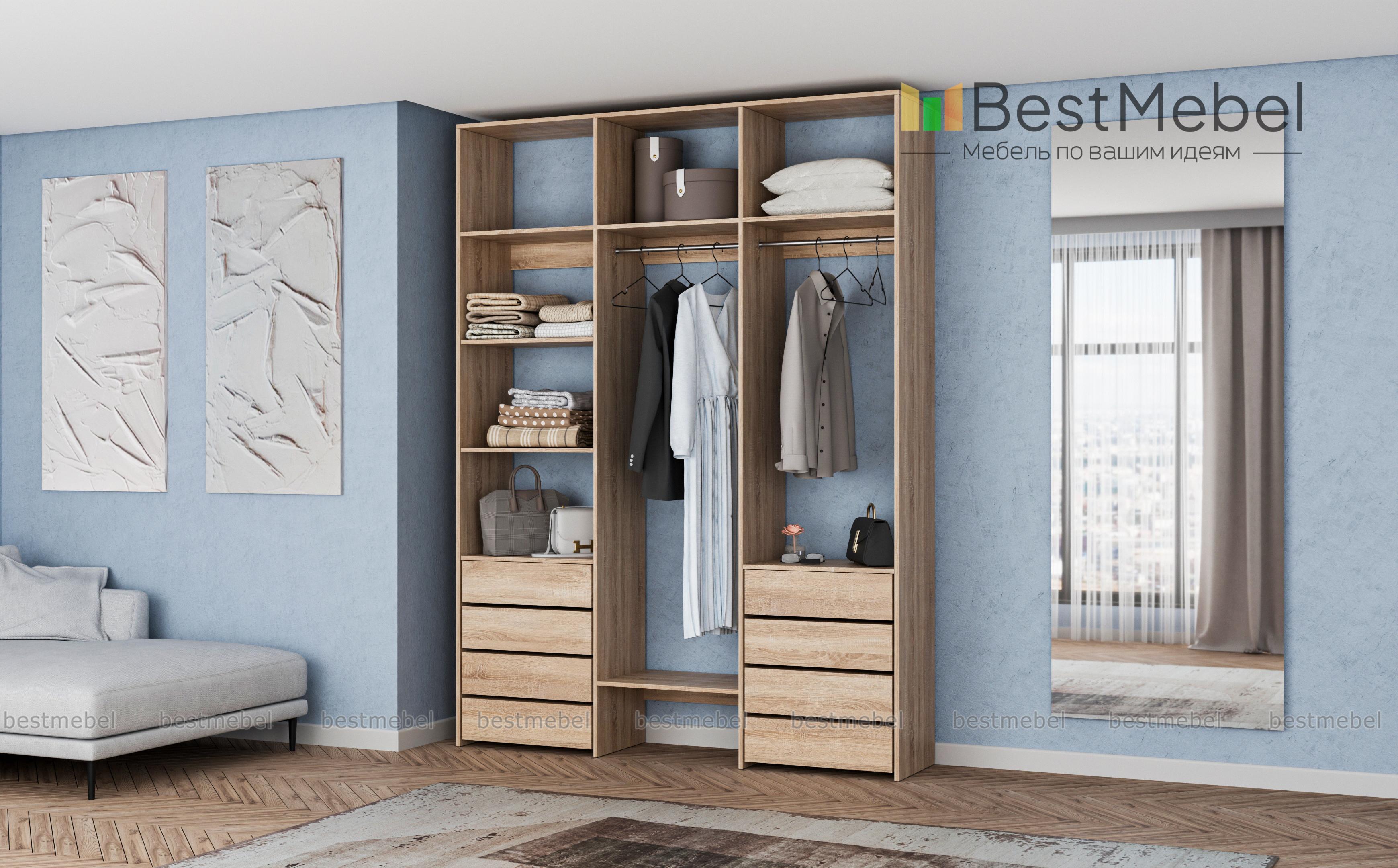 Стеллаж для одежды Мирта 11 BMS оснащен полками, двумя перекладинами для вешалок с одеждой и выдвижными ящиками, в которых удобно хранить текстиль и сезонные аксессуары. Трехсекционная конструкция из ЛДСП отличается прочностью, а лаконичный дизайн подходит для разных по стилю интерьеров. Стеллаж поможет вам удобно организовать пространство, будь то гардеробная комната, прихожая или детская спальня. Купить стеллаж для одежды Мирта 11 BMS в необходимом размере и цвете приглашаем в наш интернет-магазин.