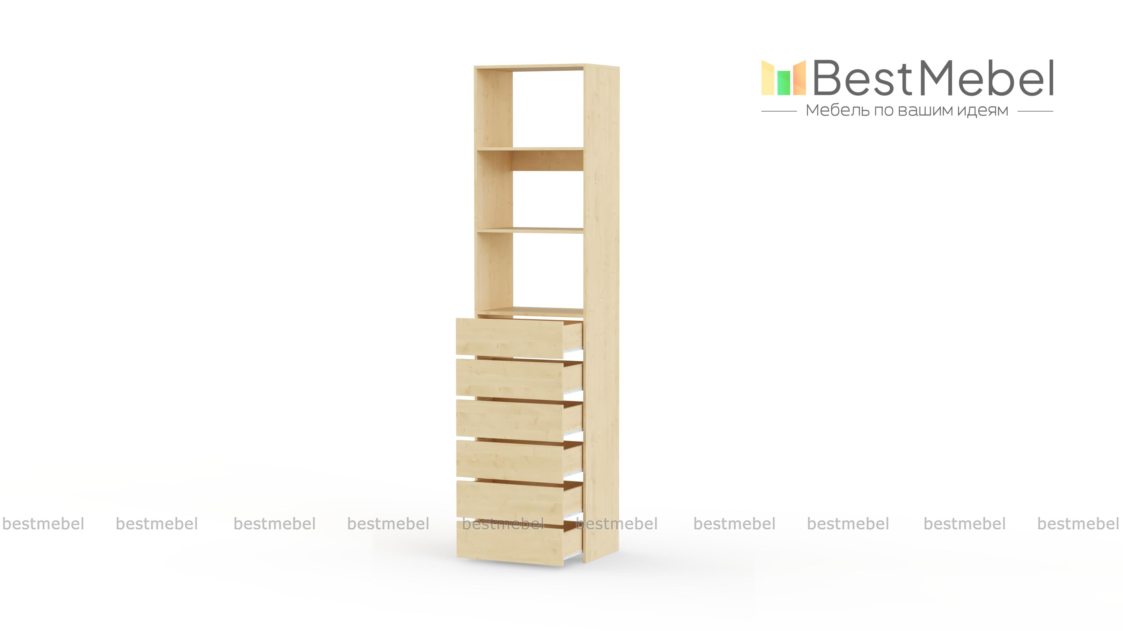 Стеллаж для одежды Мирта 37 BMS поможет оборудовать место для хранения стопок с одеждой, органайзеров с мелочами и сезонных аксессуаров. Разделенный двумя полками в верхней части, стеллаж дополнен шестью выдвижными отделениями. Поверхности из ламинированной ДСП устойчивы к появлению царапин и влаге, надолго сохраняя эстетичный внешний вид. Купить стеллаж для одежды Мирта 37 BMS приглашаем в наш интернет-магазин с индивидуальным подбором цвета и размеров.