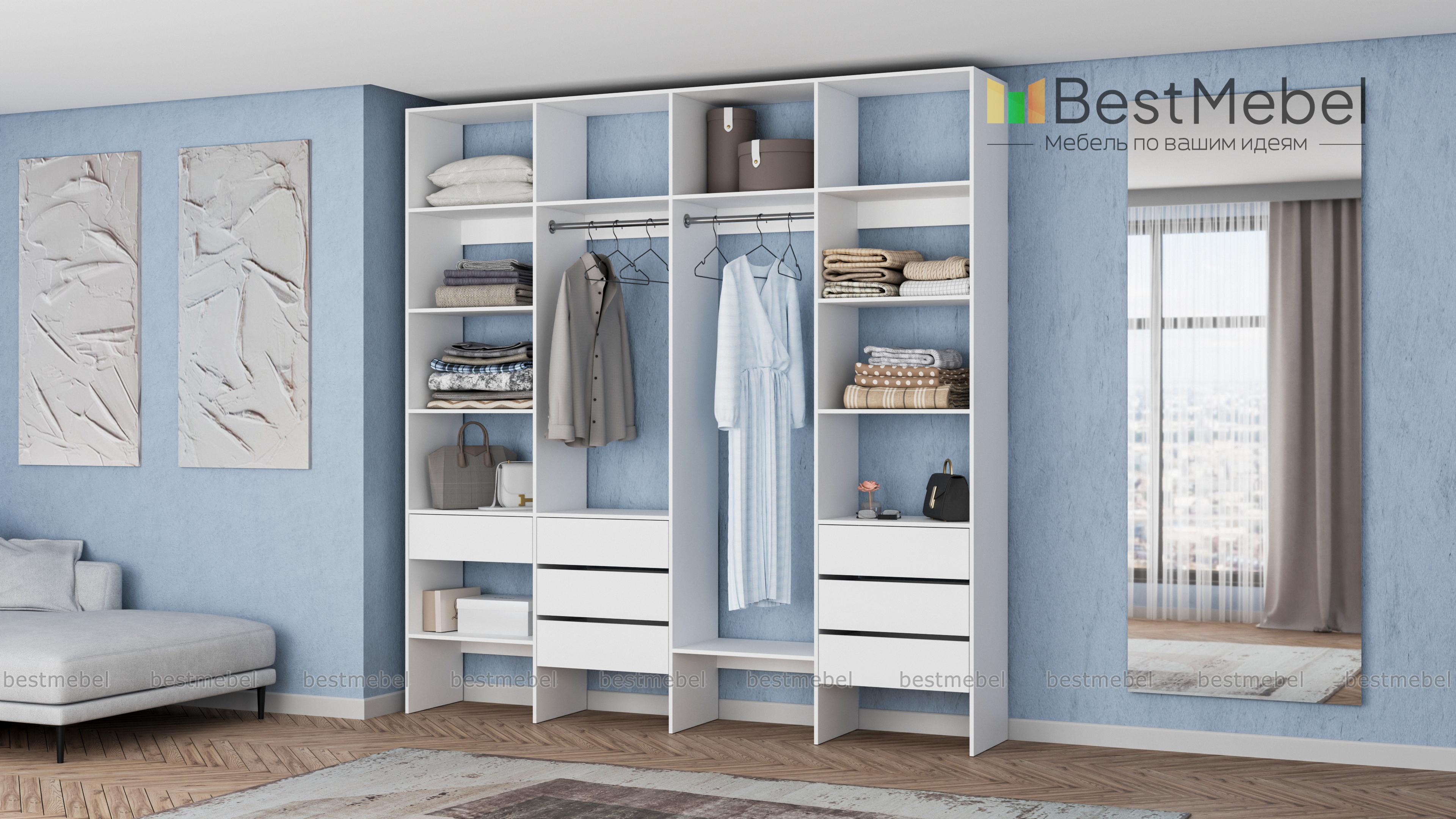 Стеллаж для одежды Мирта 67 BMS сделает пространство вашего дома легче и свободнее. Открытая конструкция объединила две штанги — под одежду разной длины, бельевые полки и удобную комбинацию выдвижных ящиков. Отсутствие декора и накладной фурнитуры в сочетании с базовым оттенком и простотой линий делает стеллаж по-настоящему универсальным. Купить стеллаж для одежды Мирта 67 BMS вы всегда сможете на сайте нашего интернет-магазина, по желанию изменив цвет и размеры.