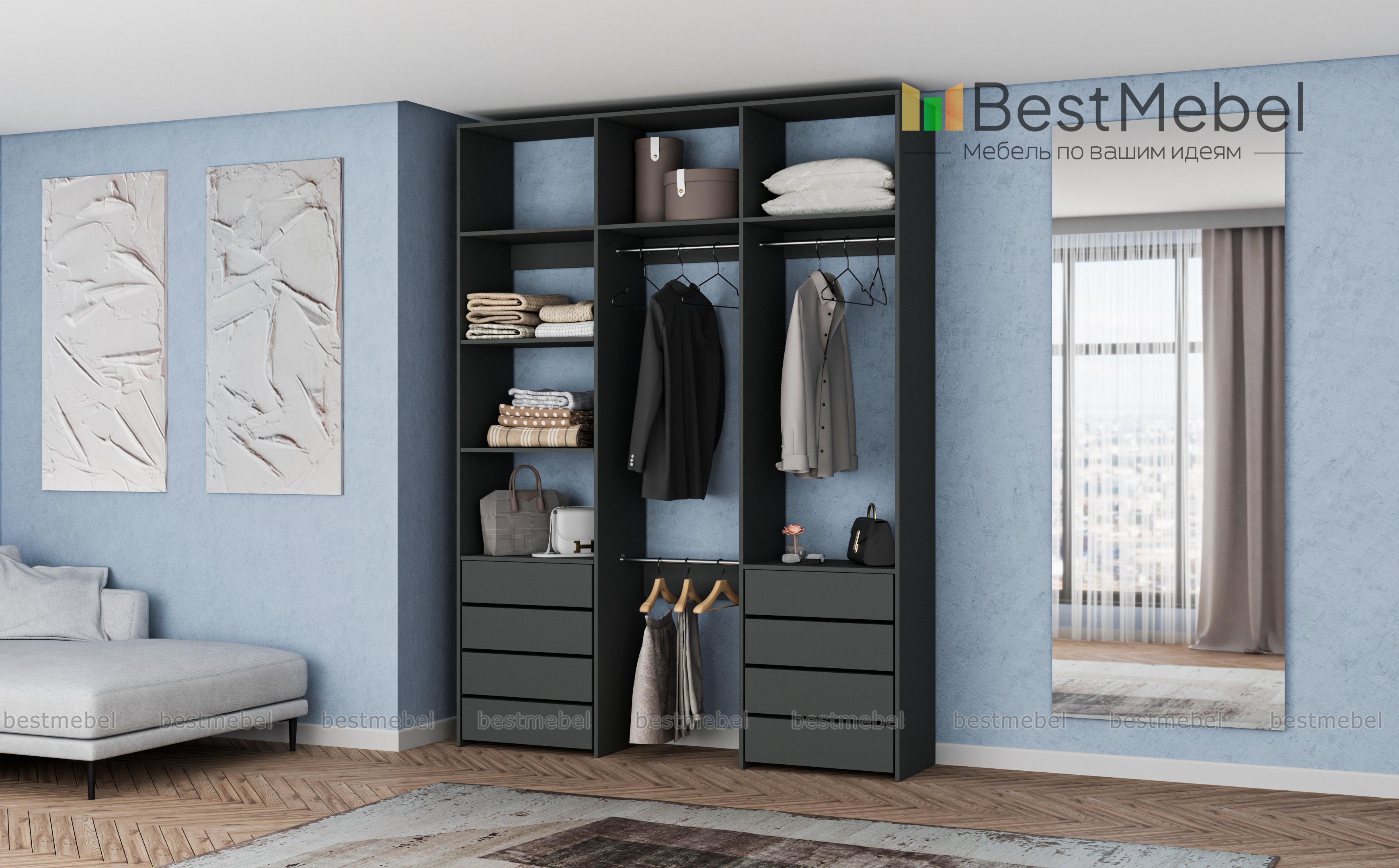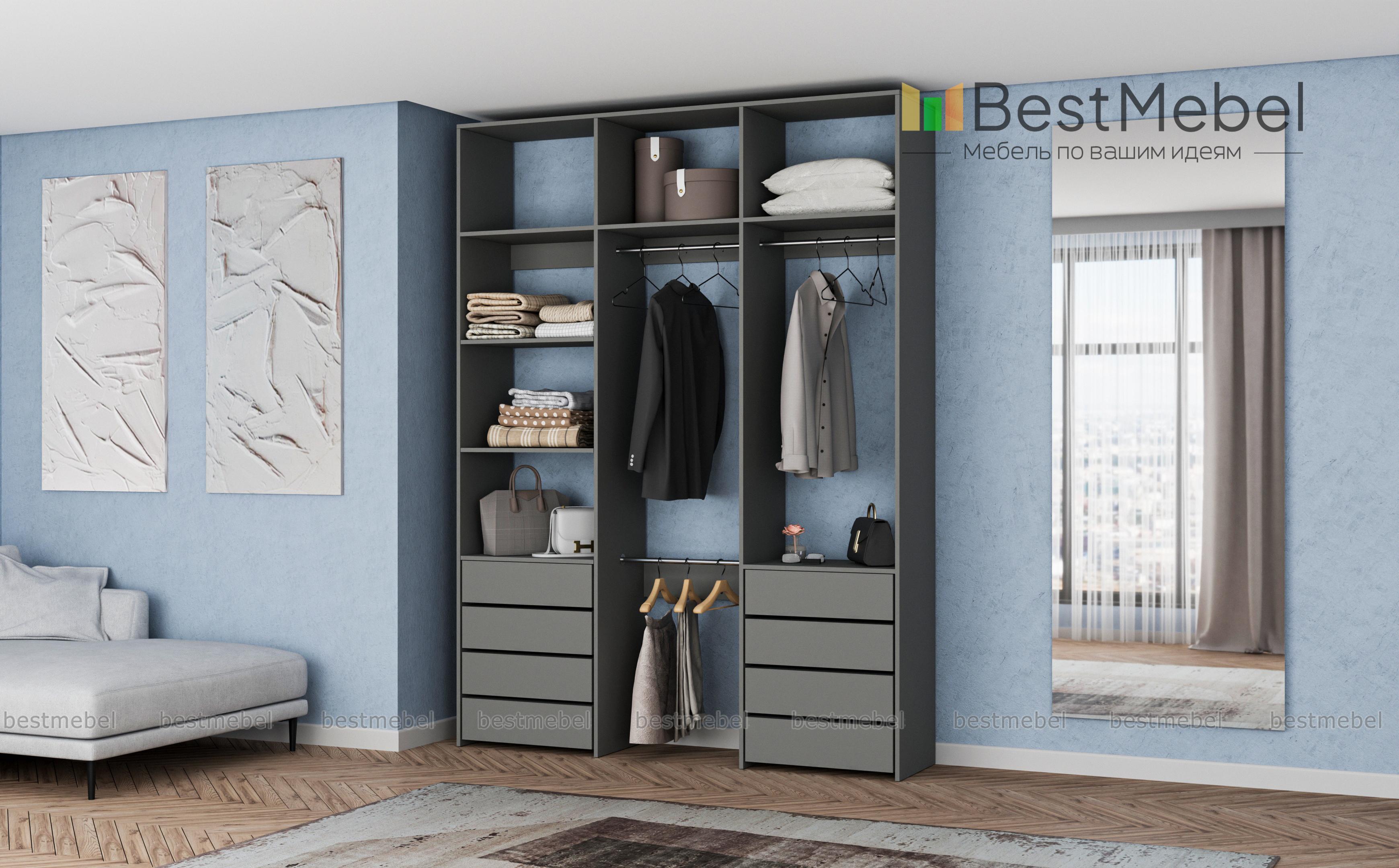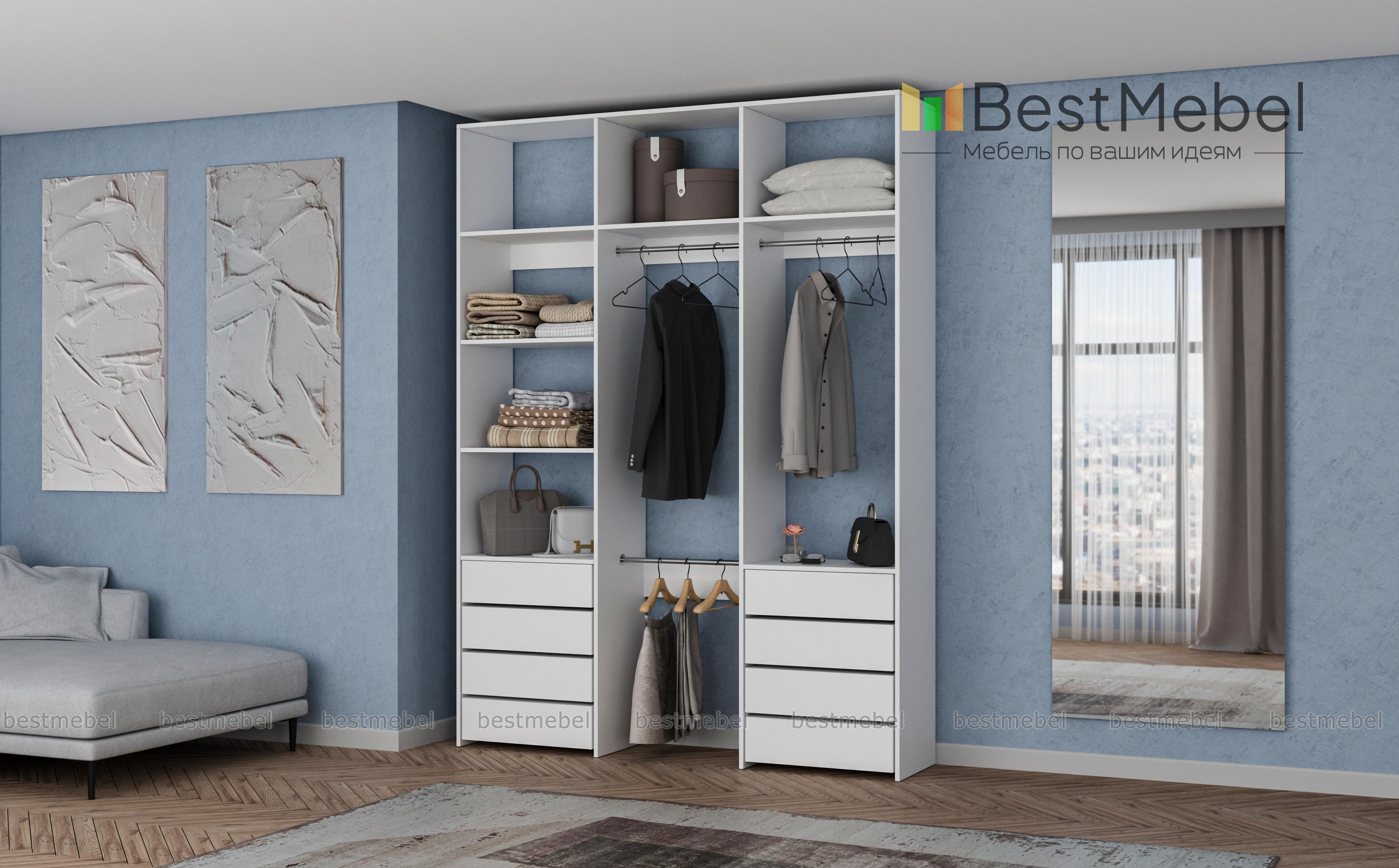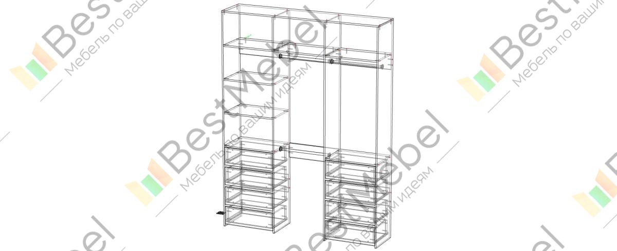 Стеллаж для одежды Мирта 8 BMS поможет создать удобное пространство для хранения в прихожей или гардеробной. Вместительная трехсекционная конструкция состоит из открытых полок, восьми выдвижных ящиков и трех платяных штанг, расположенных на разных уровнях. Лаконичный дизайн и широкий выбор оттенков позволяют вписать стеллаж практически в любой современный интерьер. Купить стеллаж для одежды Мирта 8 BMS, изготовленный по вашим размерам, приглашаем в наш интернет-магазин.