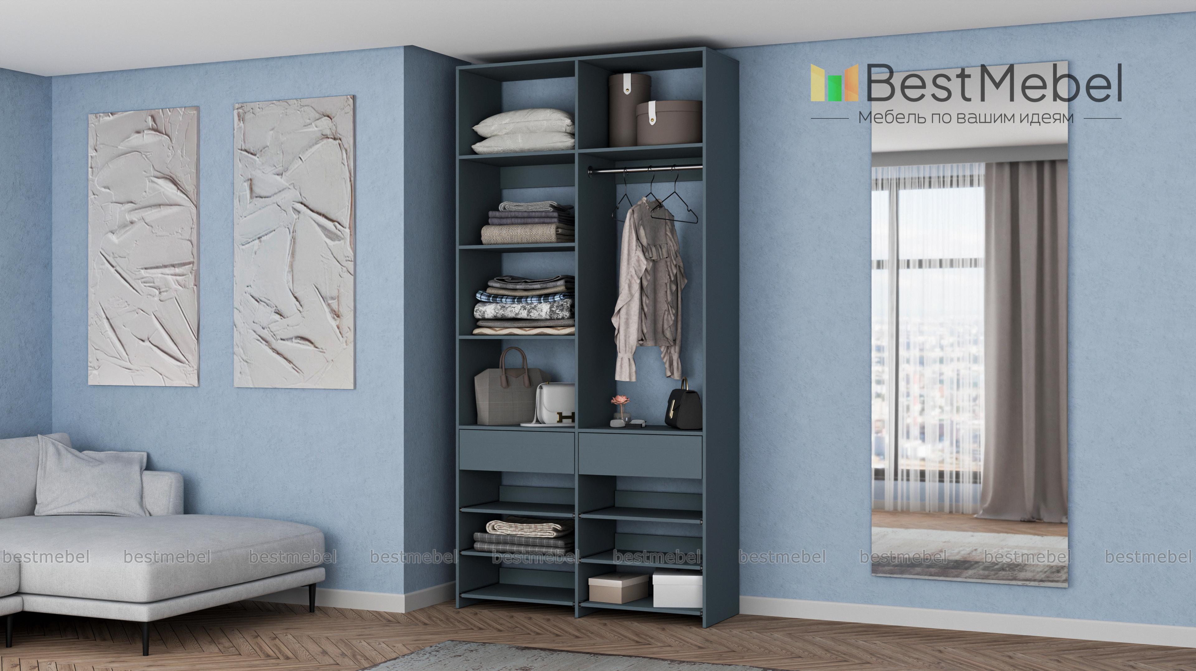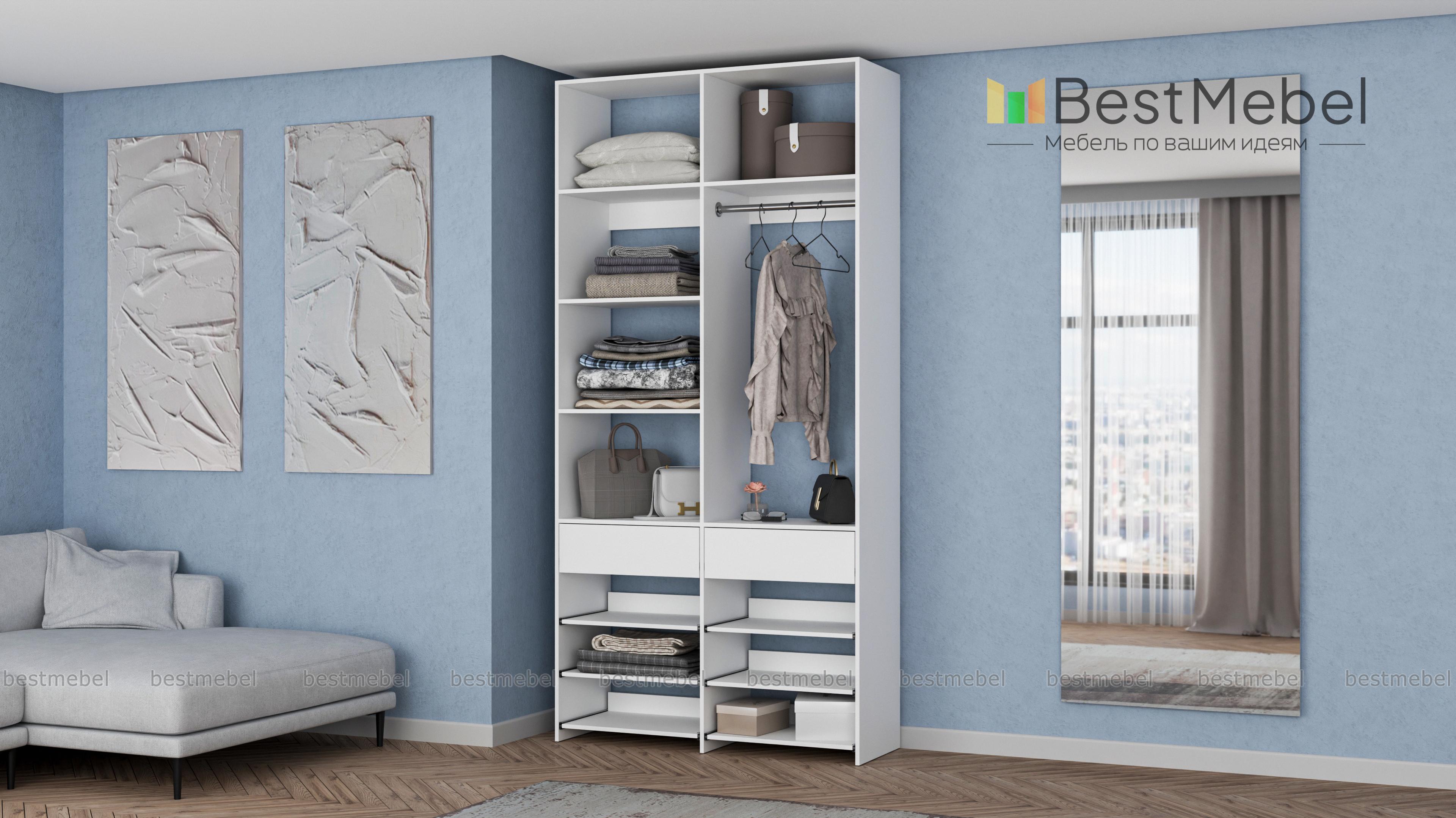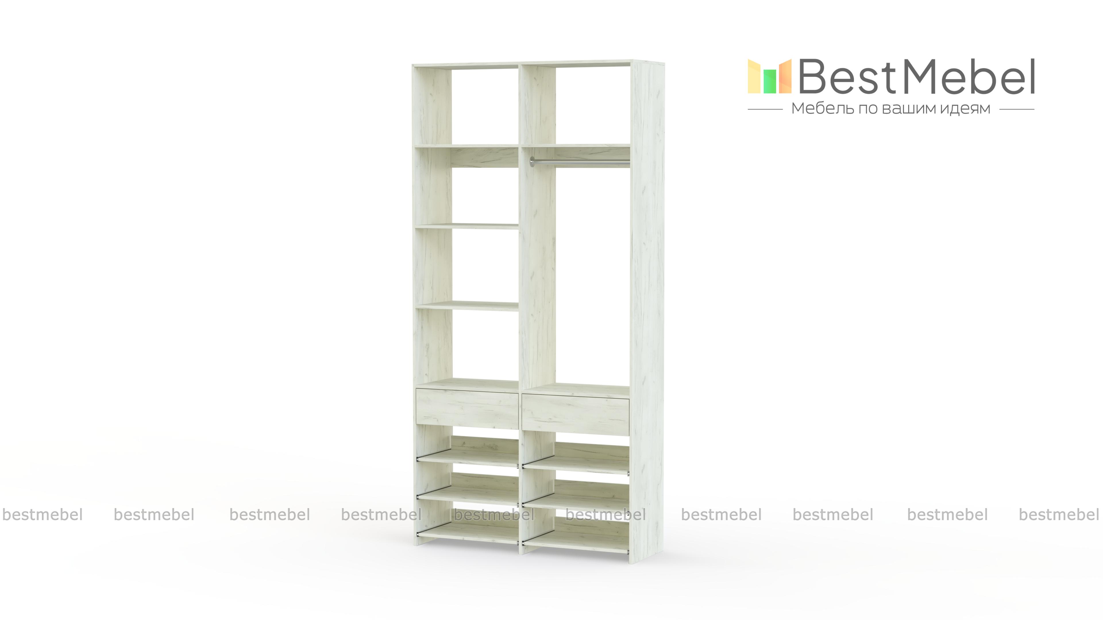 Стеллаж для одежды Мирта 82 BMS эффективно использует ограниченную площадь маленькой прихожей или гардеробной комнаты. В конфигурации со штангой, двумя ящиками, выдвижными и стационарными полками есть место для одежды, обуви и мелких аксессуаров. Ламинированное покрытие стеллажа устойчиво к влаге и появлению царапин, легко моется и эстетично выглядит. Купить стеллаж для одежды Мирта 82 BMS в оттенках нашего каталога и любом удобном размере вы сможете на сайте интернет-магазина.
