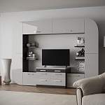 Необычный футуристичный дизайн модели "Флагман мини" глянец BMS оценят истинные поклонники минимализма и стиля хай-тэк. Сплошной белый глянец фасадов, контрастная отделка, скругленные углы и высокая эргономичность гостиной станут гармоничным дополнением современных интерьеров. Центральная часть композиции – тумба под ТВ с большой диагональю, дополненная закрытыми отделениями и открытыми полками. Дверцы шкафов оснащены системой открывания без ручек.