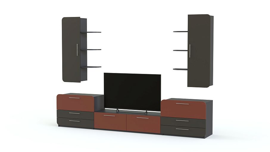 Стенка Модерно 8.1 BMS подойдет современным гостиным и станет ярким акцентом в интерьере. Лаконичный дизайн понравится ценителям минимализма и эргономичных решений. В комплект входит несколько модулей – низкая тумба с двумя ящиками и симметрично расположенными колонками и высокие узкие навесные шкафчики, комбинированные с открытыми полками. Эффектные и износостойкие матовые фасады надолго сохранят эстетичный вид. Купить стенку Модерно 8.1 BMS, подобрав цветовое сочетание, вы сможете в нашем интернет-магазине.