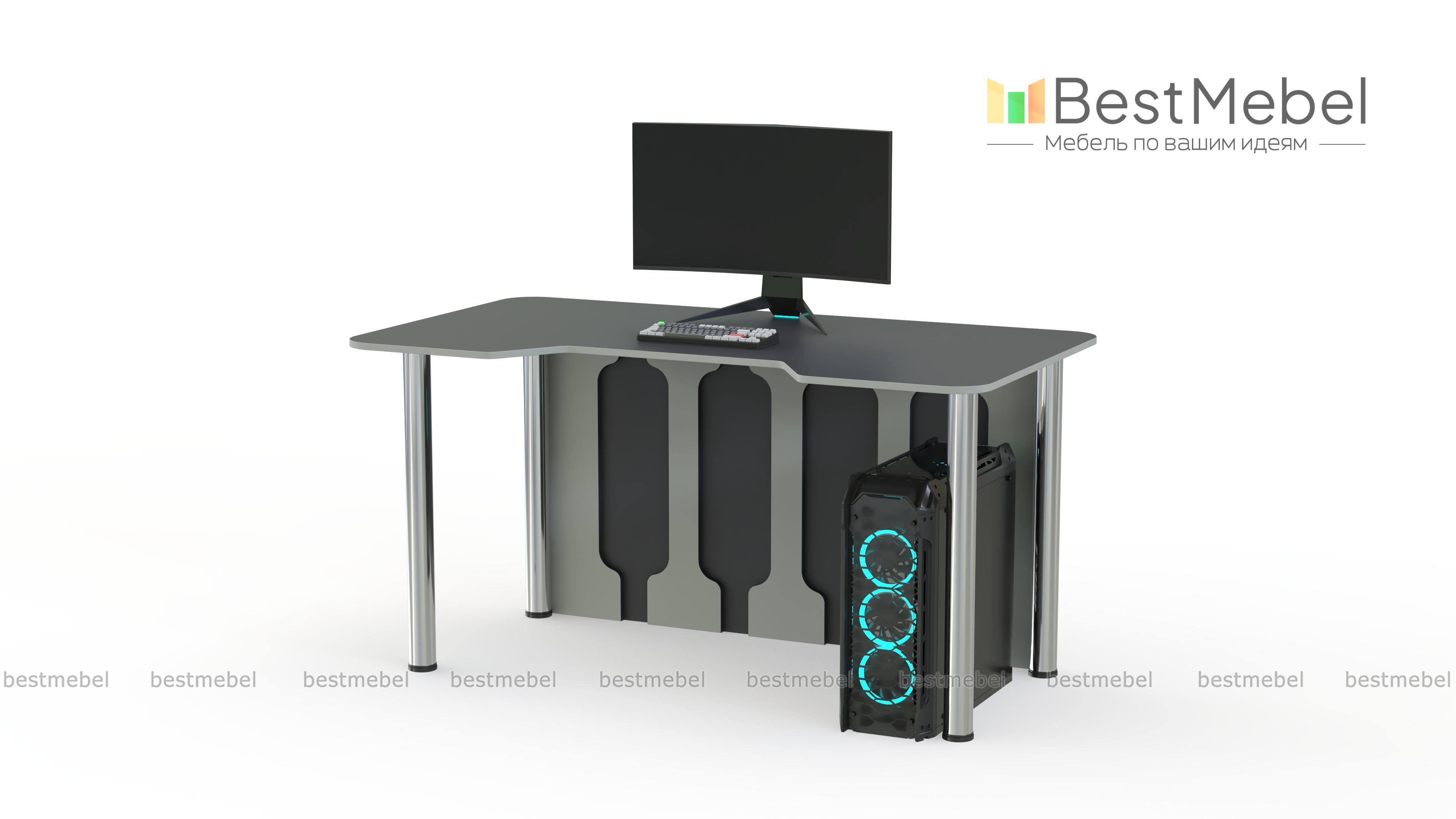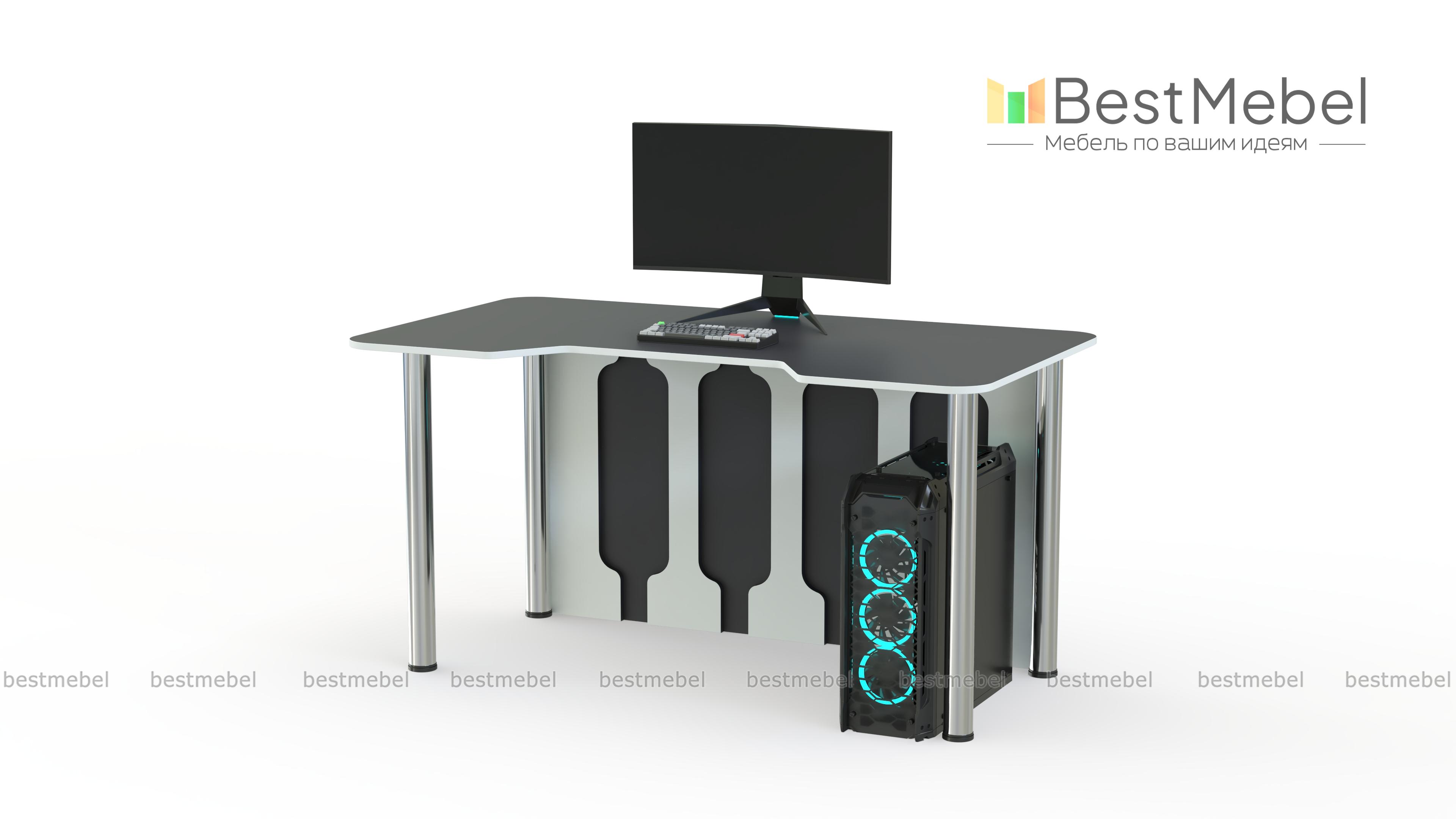 Игровой стол Стар-6 BMS вы сможете использовать для работы или учебы благодаря универсальной конструкции. Яркая модель, выполненная в сочетании нейтрального серого цвета и белого оттенка, оборудована просторной столешницей с трапециевидной выемкой переднего края. Устойчивость и при этом легкость придают столу регулируемые хромированные опоры и задняя стенка с декоративными вырезами. Купить игровой стол Стар-6 BMS приглашаем в наш интернет-магазин с возможностью изготовления по индивидуальным размерам.