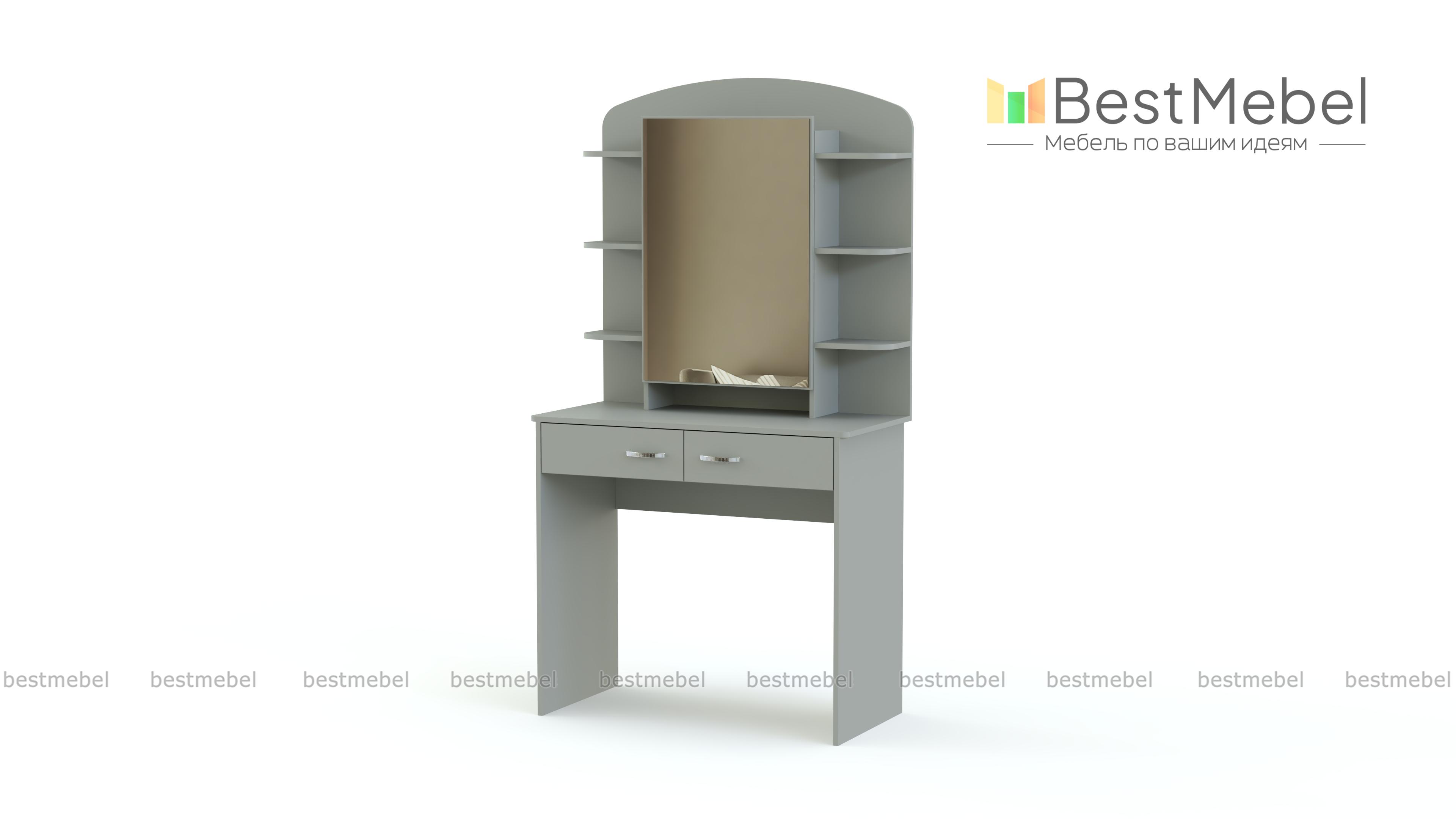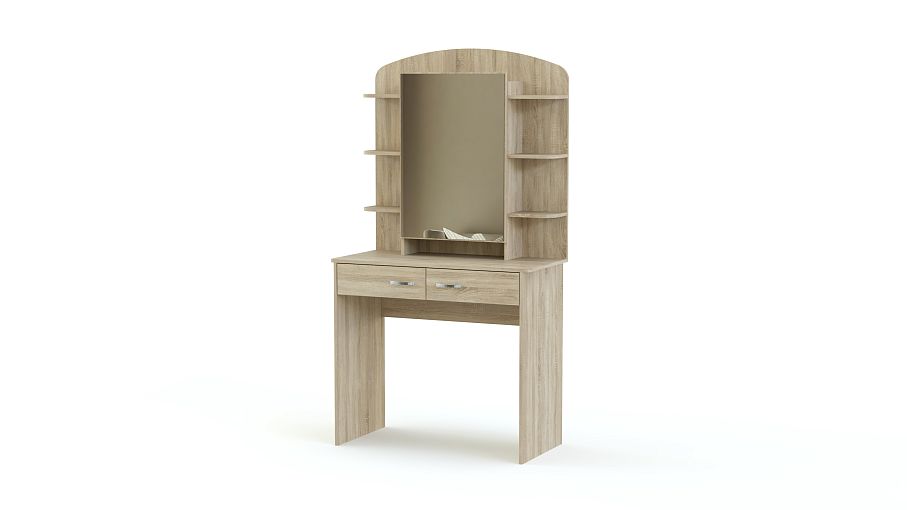 Туалетный столик Милано СБ-2329 BMS – предмет мебели, который по достоинству оценит настоящая женщина. Ведь так приятно и комфортно иметь под рукой все эти милые сердцу мелочи. Модель выполнена в современном стиле, имеет большое место для зеркала, два выдвижных ящичка и шесть открытых полочек для предметов декора, косметики, духов и т.д. За таким изделием очень удобно заниматься косметическими процедурами. У нас Вы можете купить туалетный столик Милано СБ-2329 BMS недорого, при этом у Вас есть возможность самостоятельного выбора цвета и параметров модели.