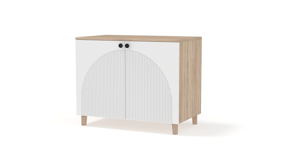 Тумба Вивьен 3 BMS современного дизайна подходит для установки в прихожих, гостиных или уютных спальнях. Универсальная распашная модель оснащена двумя дверцами с круглыми ручками и удобной для размещения светильника, декора и важных мелочей столешницей. Тумба с корпусом из ЛДСП располагается на высоких устойчивых ножках, акцентный фактурный фасад выполнен из МДФ. Купить тумбу Вивьен 3 BMS с выбором размеров, цвета и фурнитуры приглашаем к нам в интернет-магазин.