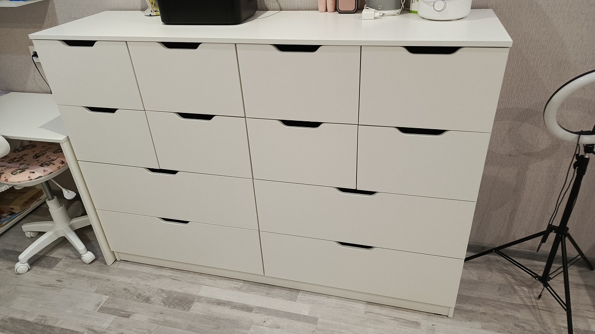 Заказ 00000896805, изделие Комод Нордли Nordli 14 (1700х1190х470) Понравилось орошее качество материалов, простая сборка. Комод очень вместительный Быстрая доставка в обговоренный срок.