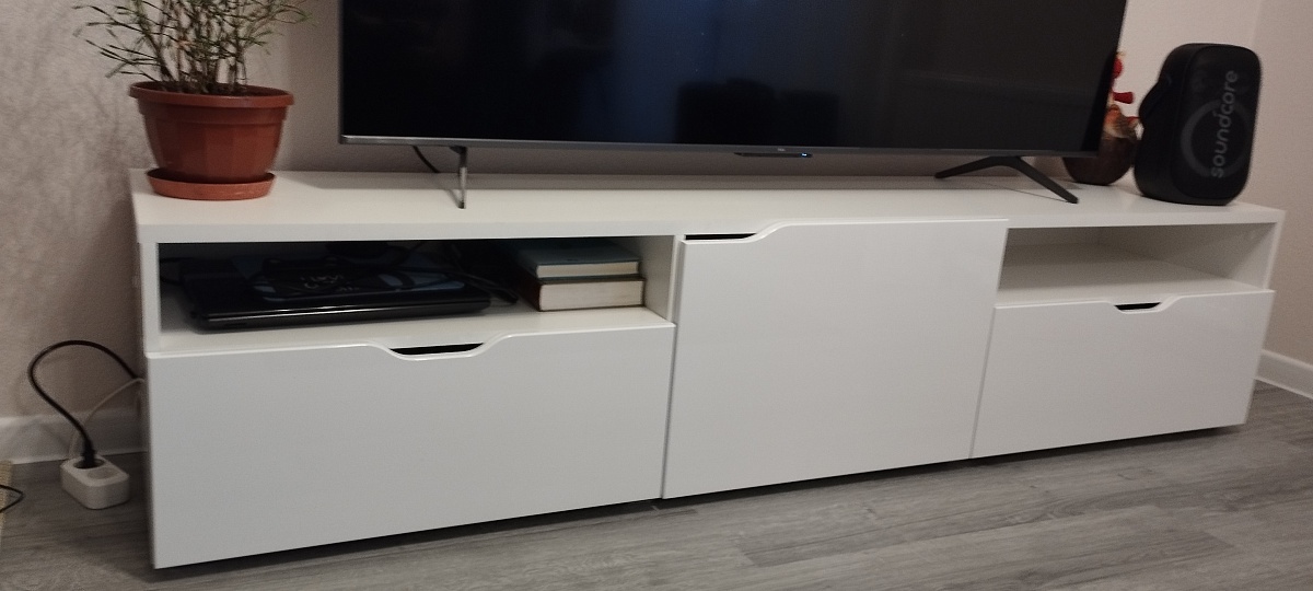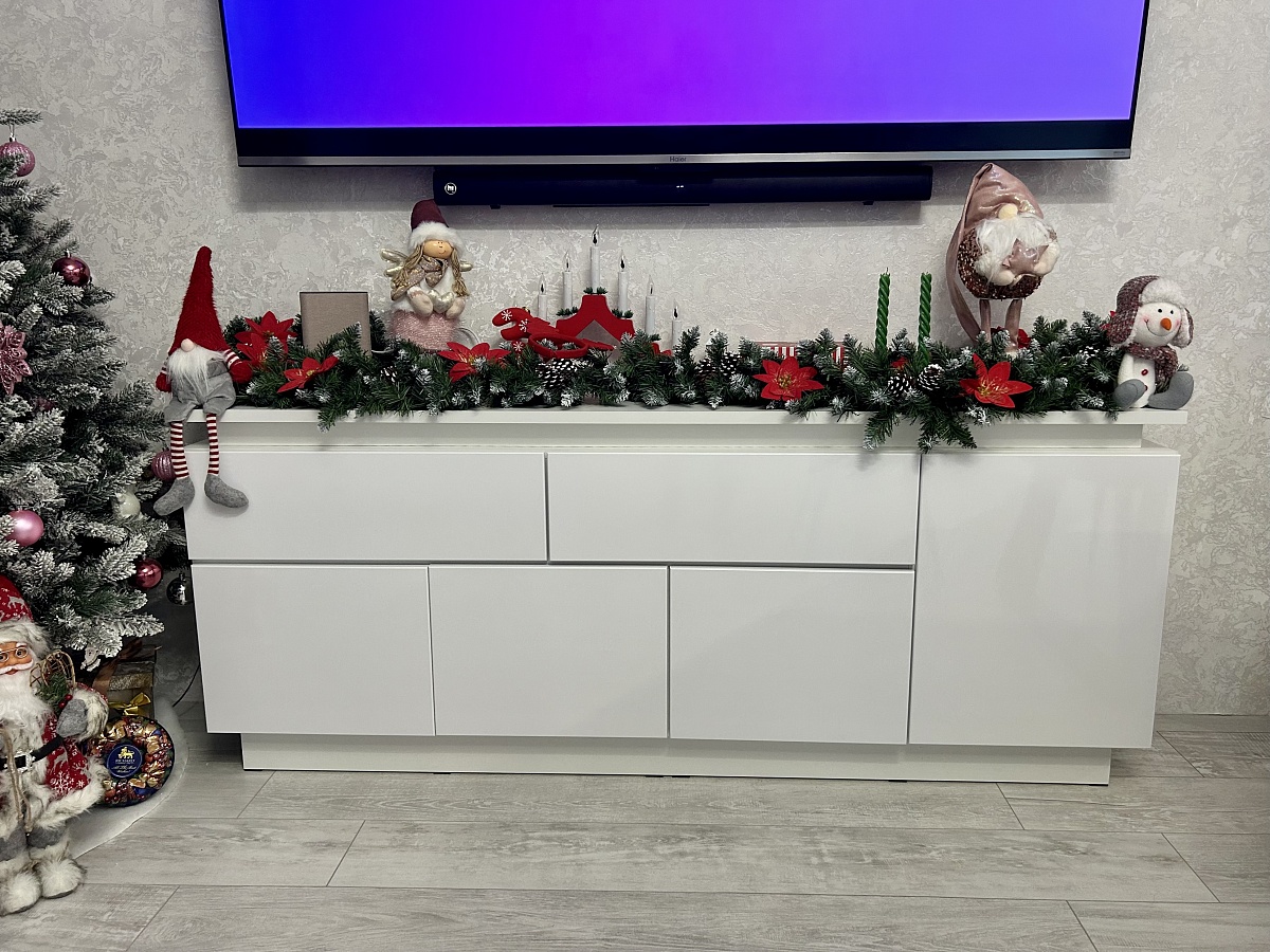 Заказ 00000882821 (№1101212),Очень рада, что обратилась в компанию «BestMebel» за Комодом Infinity Блеск 10 BMS (1750х710х350).Искала тумбу под телевизор, но запрос был на полноценный комод для домашних нужд. Тяжело было найти тумбу шириной от 170 см и высотой от 70 см, в БэстМебель огромный Плюс в том, что профессионалы изготовят мебель под Ваш размер!Заказала, изготовили быстро, привезли до адреса за город, всё в отличном состоянии, доводчики в поряде. Инструкция, конечно, целый квест, но разобрались)))Идеально вписался в мой интерьер. Классно, что под разное время года он служит мне еще отличной площадкой для создания уюта в доме.В общем, советую покупателям, ведь в «бэстмебель» приятная бонусная система, удобный сайт и огромный выбор мебели (а также цветов, материалов, фурнитуры и т.п.) под любой ваш запрос!