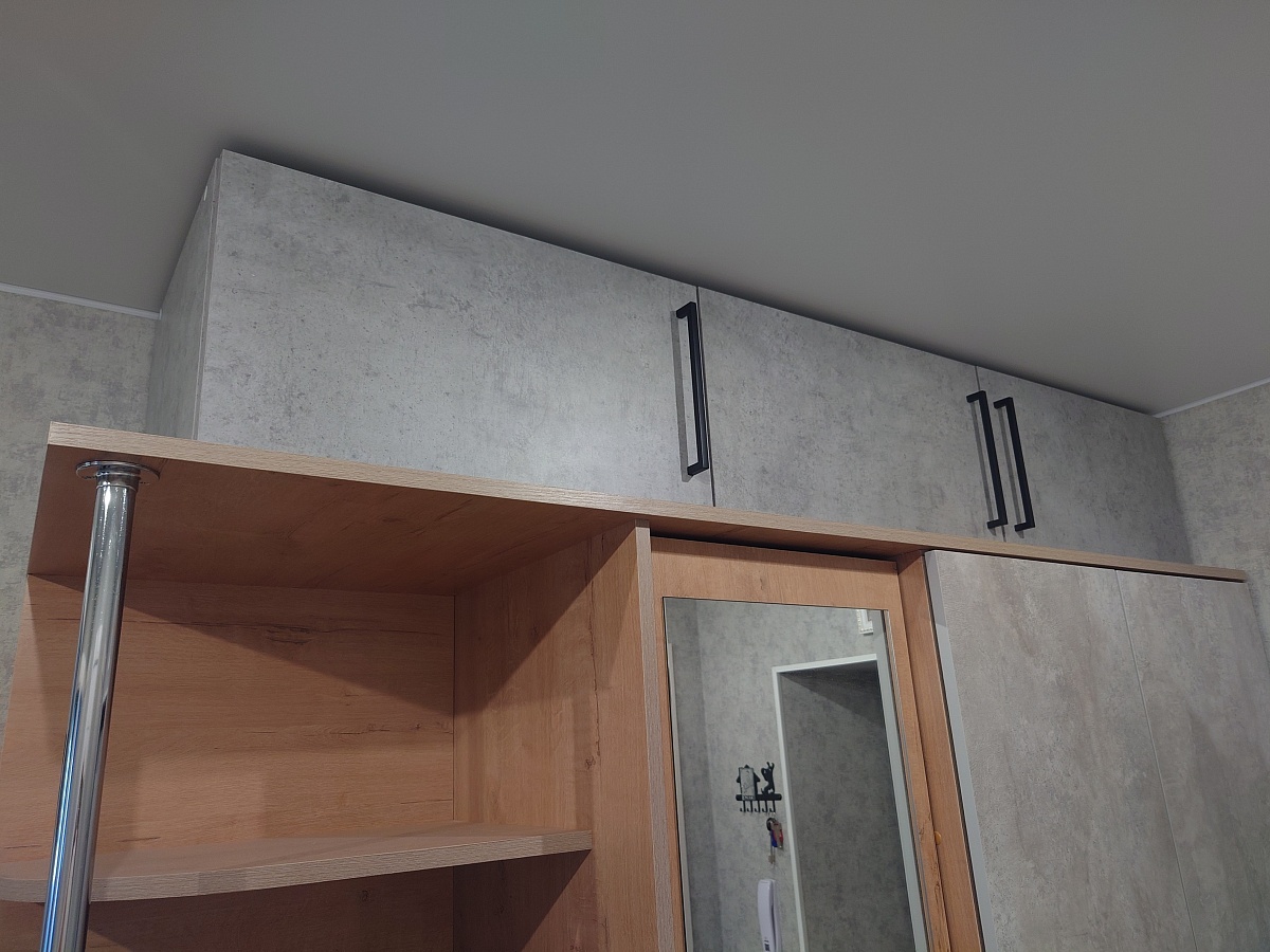 Заказ 00000789973, изделие Антресоль Остин Лайт 2 BMS (1600х300х400), цвет светлый бетон. Покупала для комплекта к прихожей другого производителя. Прихожая была низковата, хотелось сделать выше. Антресоль хорошо вписалась и по фактуре и по цвету и по размеру. Сделали и доставили быстро.