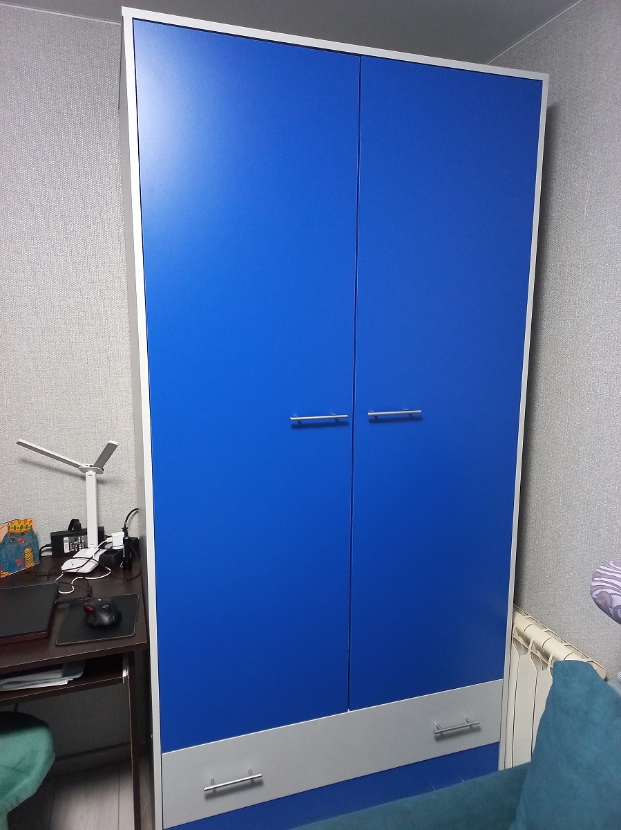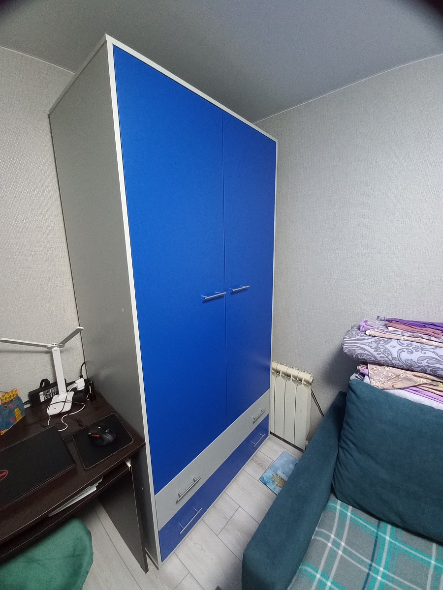 Шкаф отличный. Заказала в сине сером цвете. Была не большая проблемка, двери привезли не того цвета. Но все быстро решили и привезли нужные. Даже оставили другие, теперь можно менять 🙂