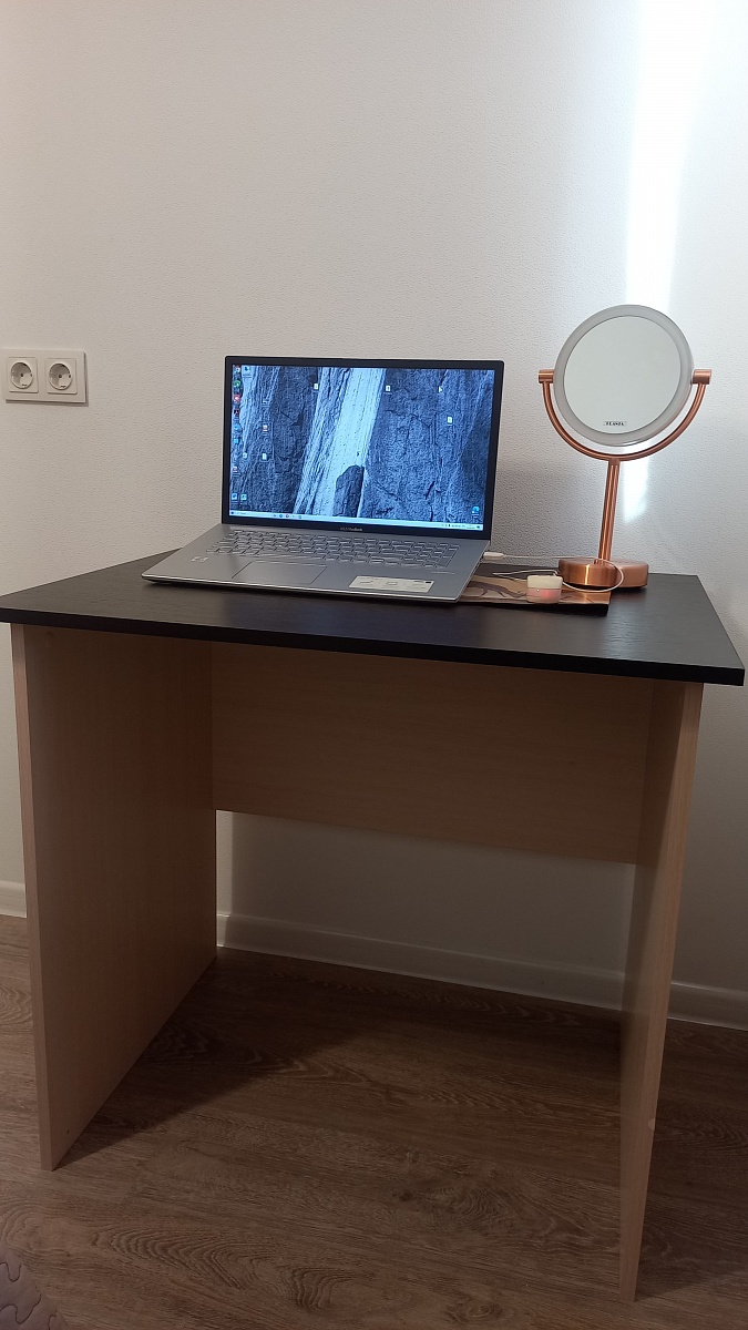 Заказ 00000684797, изделие Компьютерный стол Твен BMS (800х790х600) (входил в общий заказ №998515 на сайте) Был приобретен по акции "мебель за рубль". Очень компактный удобный стол, лёгкая сборка. Колесики сначала установили, но позже сняли -  без них столик стал и чуть ниже, и намного устойчивее.