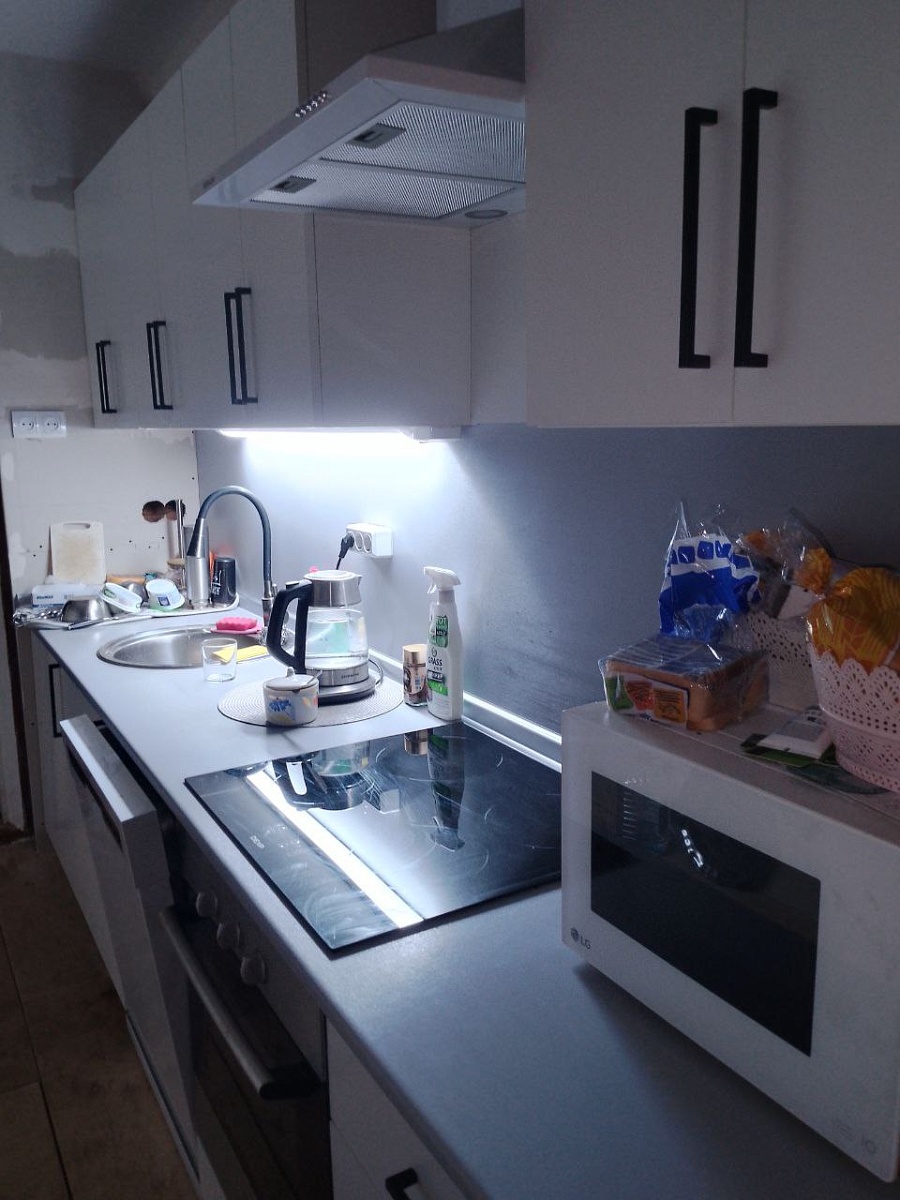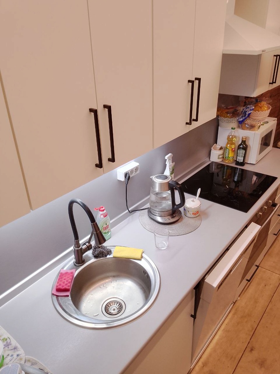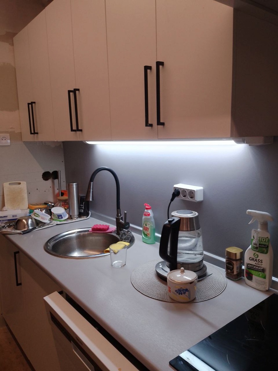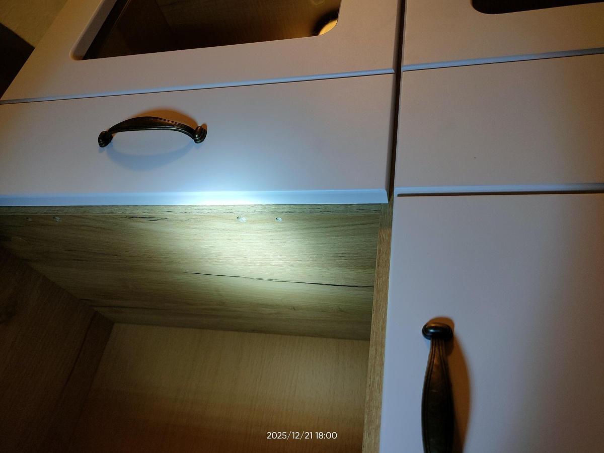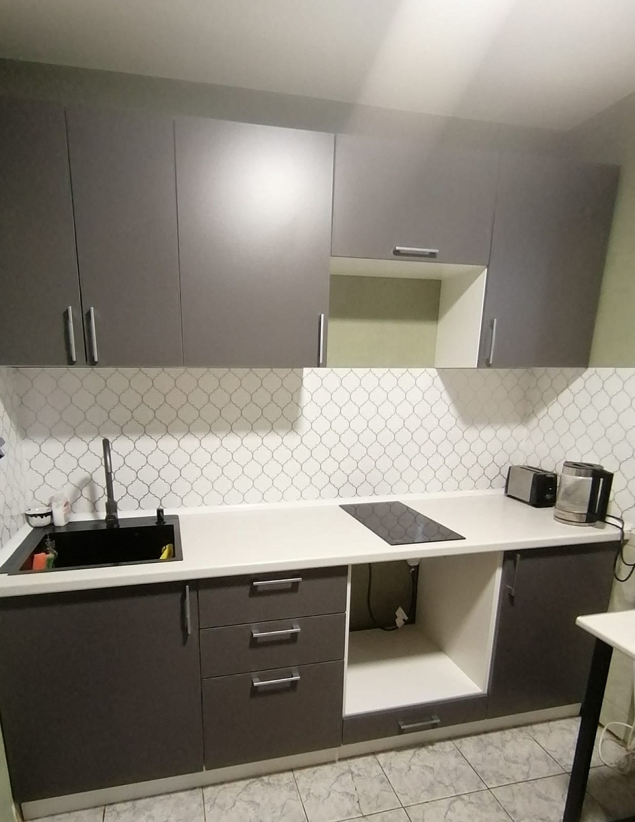 Отличная бюджетная кухня. Быстро изготовили, привезли, собрали. Были минимальные сколы внутри (это вопросы к доставке), но мне некритично. Всё работает, петли, доводчики в норме).Отзыв оставляю после 2 месячного пользования.