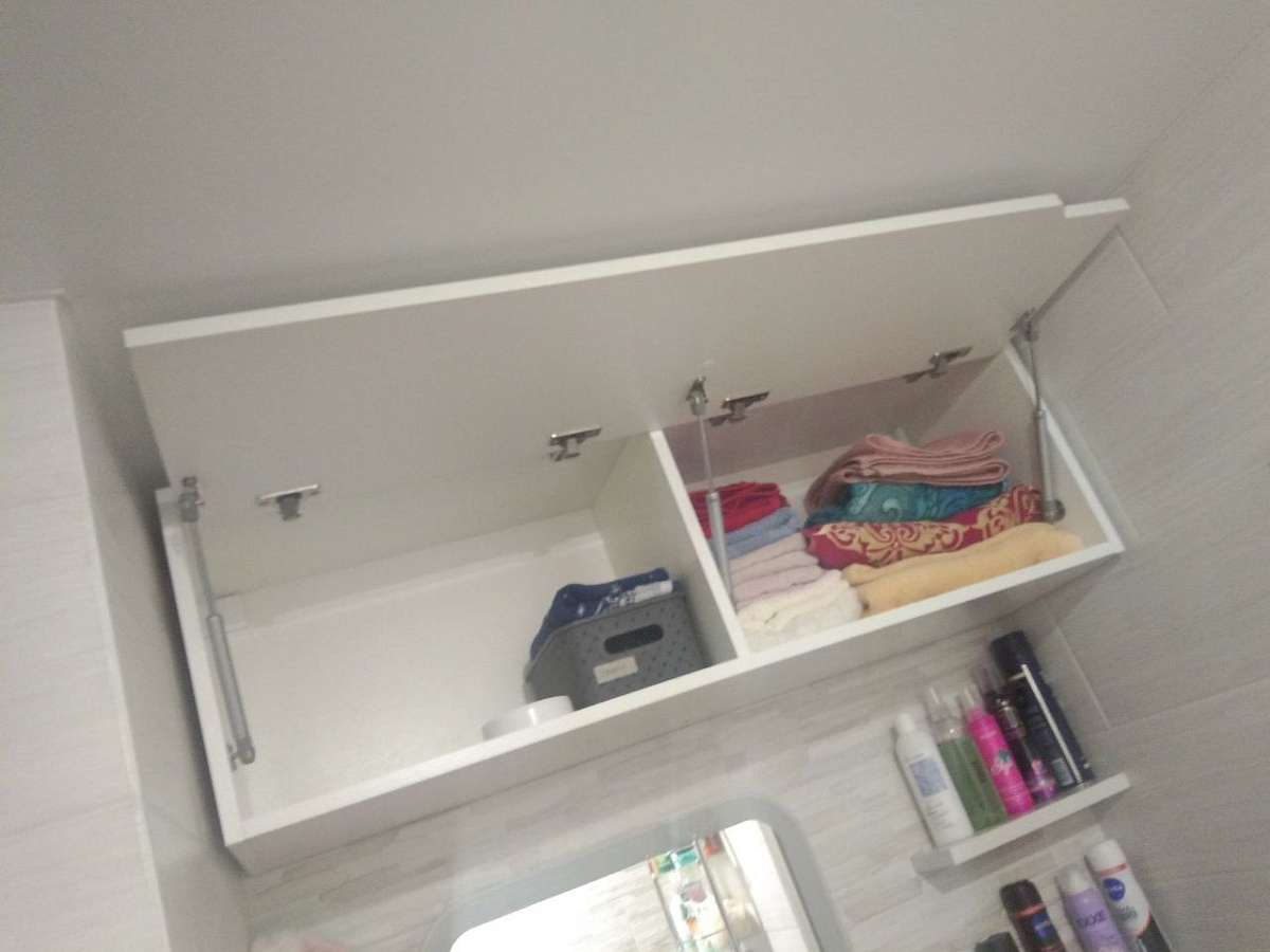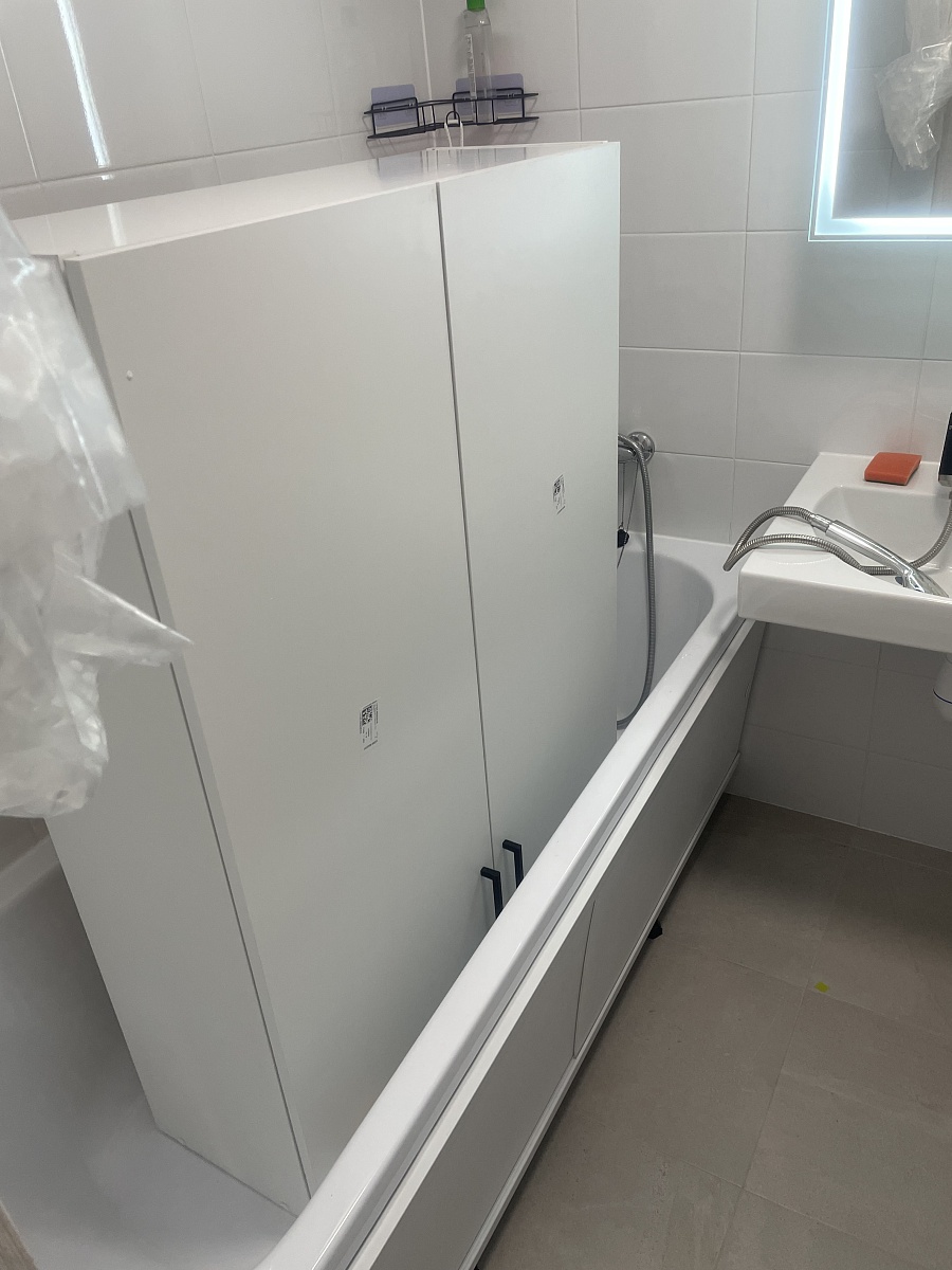 Заказ №1170941Заказала шкаф белый, в нишу в ванной. Дом ПИКовский. Размер 890-1150-300. Внутри 3 полки. Покрытие внешнее матовое белое. Шкаф большой вместительный. Прикрепили изнутри уголками к стене. Дверки брала без доводчика , пожалела , с доводчиками УДОБНЕЕ! Хороший шкафчик