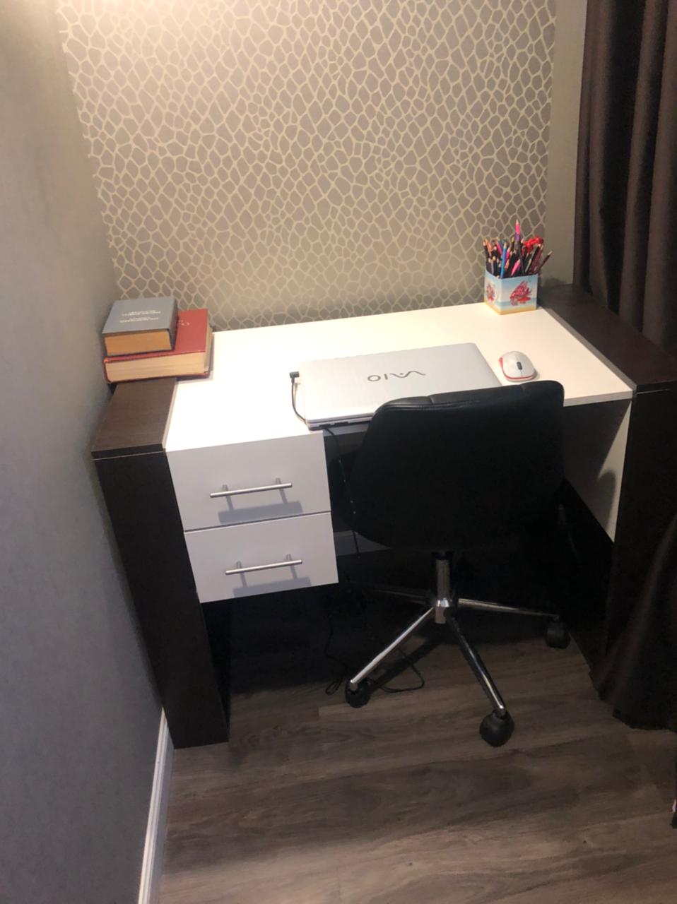 Заказывала стол под заказ с моим цветом белый + венге, пришёл очень быстро, в нужном цвете, очень вписался в интерьер, легко собрали. Смотрится стильно