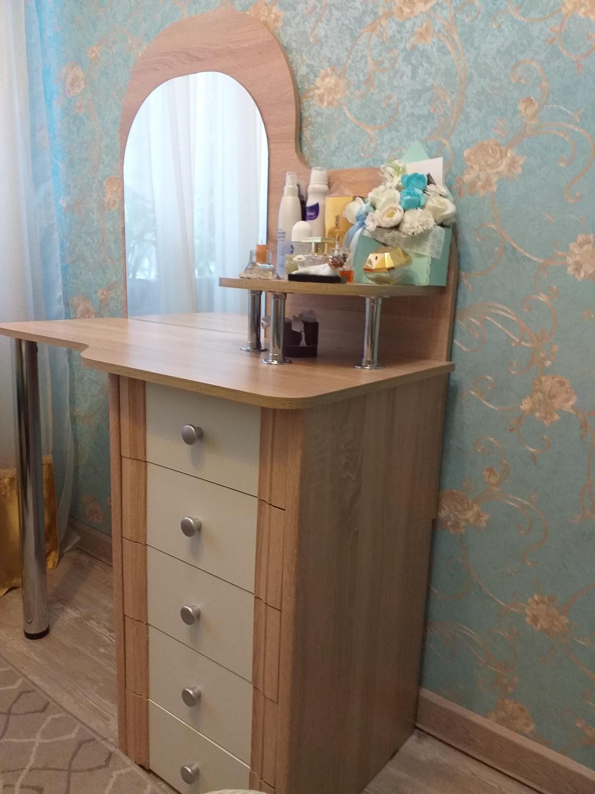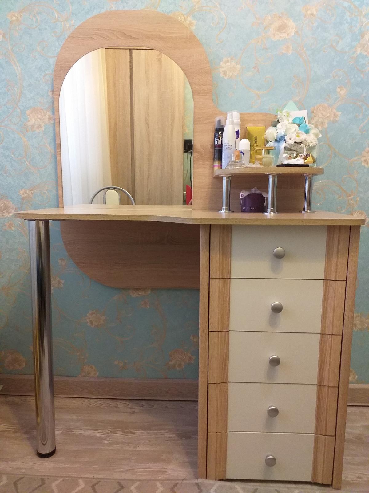 Очень довольна покупкой. Качественный товар. Великолепная текстура, идеальные детали. Фурнитура замечательная. В комплекте было всё. Сами собрали без проблем. Зеркало прикрепили на своё усмотрение, оставила сверху место, для светильника на прищепке. Столик функционально очень удобный: полочка на столешнице, 5 вместительных ящиков, легко двигающихся. Оригинальный дизайн, сглаженные углы, создают комфортную обстановку в комнате. За ним приятно находиться, привести себя в порядок или использовать в качестве письменного стола и даже работать швейной машинке вполне удобно. Благодарю производителя за замечательную модель, полноценную комплектацию и аккуратную упаковку всех деталей. И конечно благодарю интернет-магазин за вежливых сотрудников менеджеров и организацию своевременной и качественной доставки.