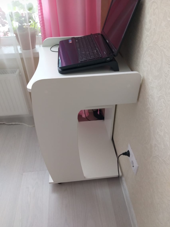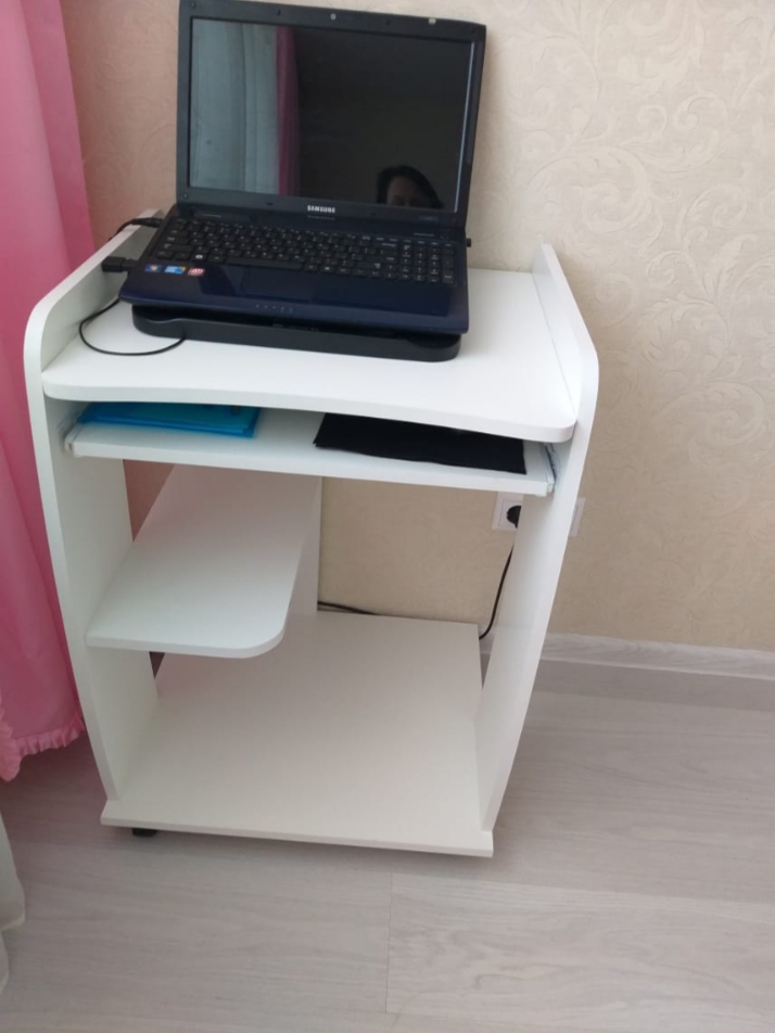 Приобрела данный компьютерный столик!  Дизайн отличный, белый стандартного размера, очень компактный! Супер! Качество материала хотелось бы лучше! Но смотрится очень нормально в белой спальне!