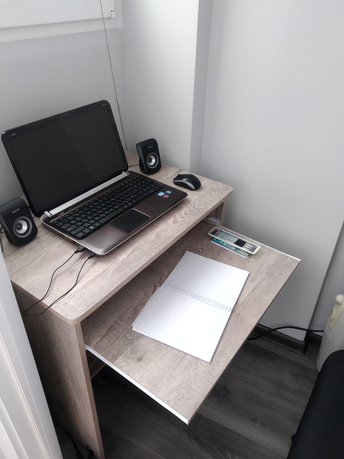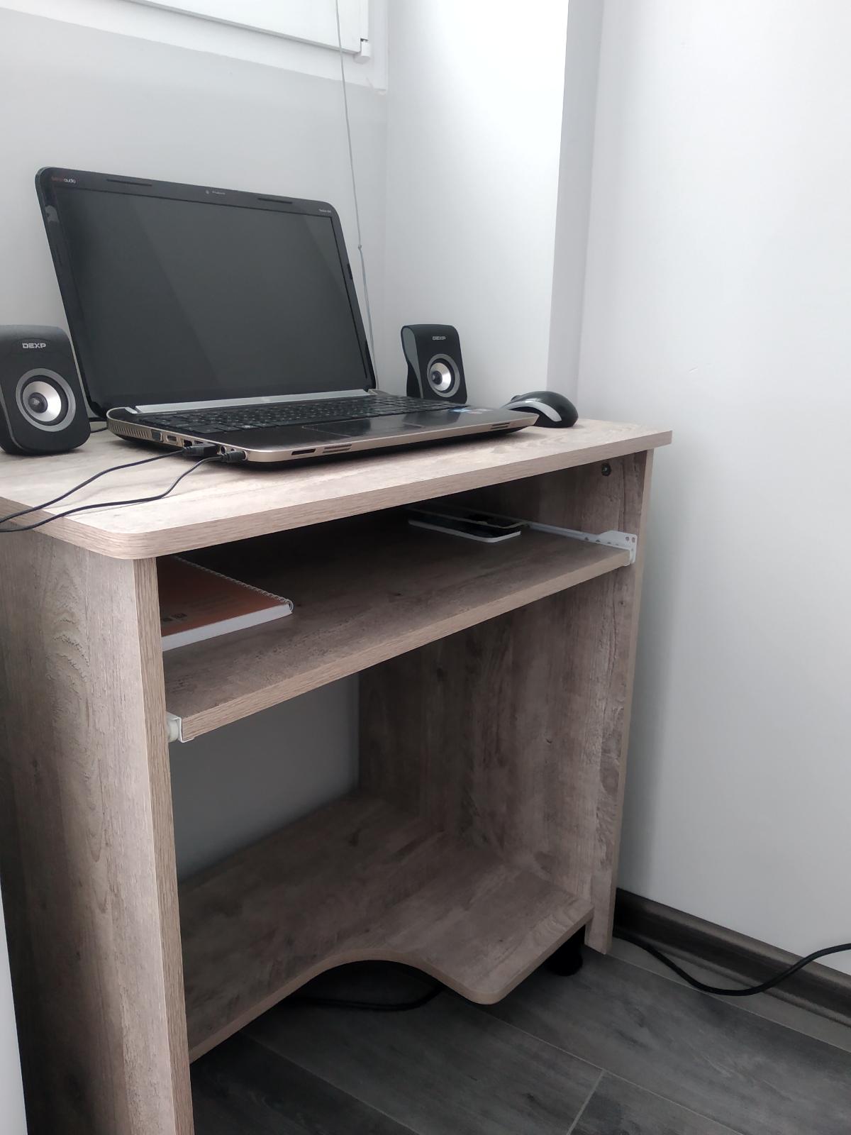 Замечательный компьютерный стол был приобретен осенью прошлого года. Название стола «Фортуна 22.1» (700х750х500), производитель – компания «Bestmebelshop». Небольшие габариты помещения, куда планировалось поставить стол, определяли его размер. Являясь компактным компьютерным столом, он сделан с исключительной функциональностью. В конструкции стола предусмотрено всё необходимое. На столешнице спокойно умещается крупный ноутбук, колонки к нему и настольная лампа, остается еще место для телефона и футляра для очков. Выдвижная полочка для клавиатуры используется в качестве письменного стола. На нижней полке удобно разместился «Пилот» и принтер. Качество стола отменное, расцветку выбрали с учетом гармоничного сочетания с полом и стенами помещения. Удобная система оплаты, при заказе. Доставка была осуществлена своевременно (как было прописано в договоре). Собирал сам, с этим тоже никаких проблем не возникло, все детали идеально подходят друг к другу. Пользуюсь столом уже около полугода. Очень доволен покупкой. Слова благодарности компании «Bestmebelshop». Определённо рекомендую данного производителя мебели.