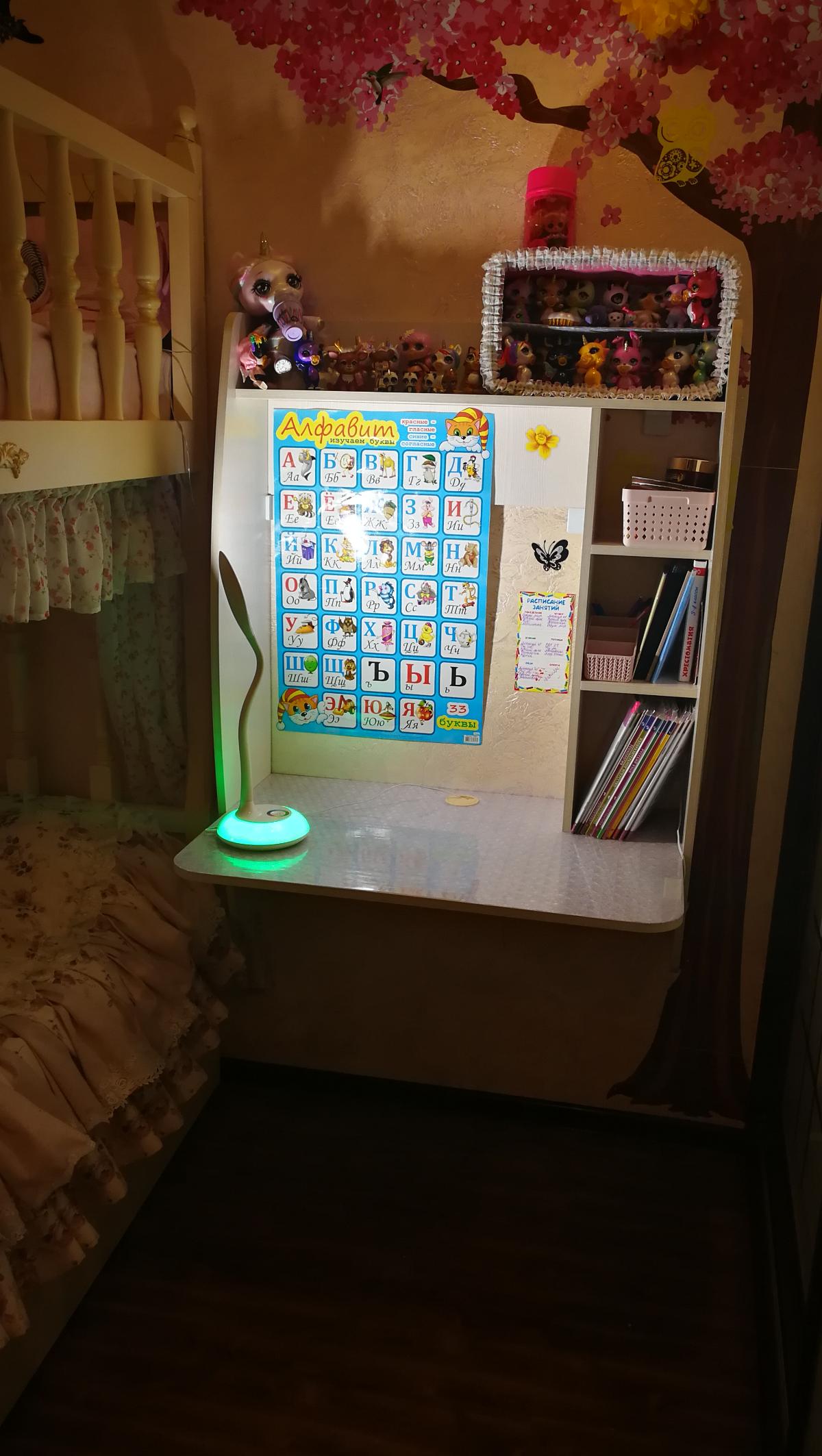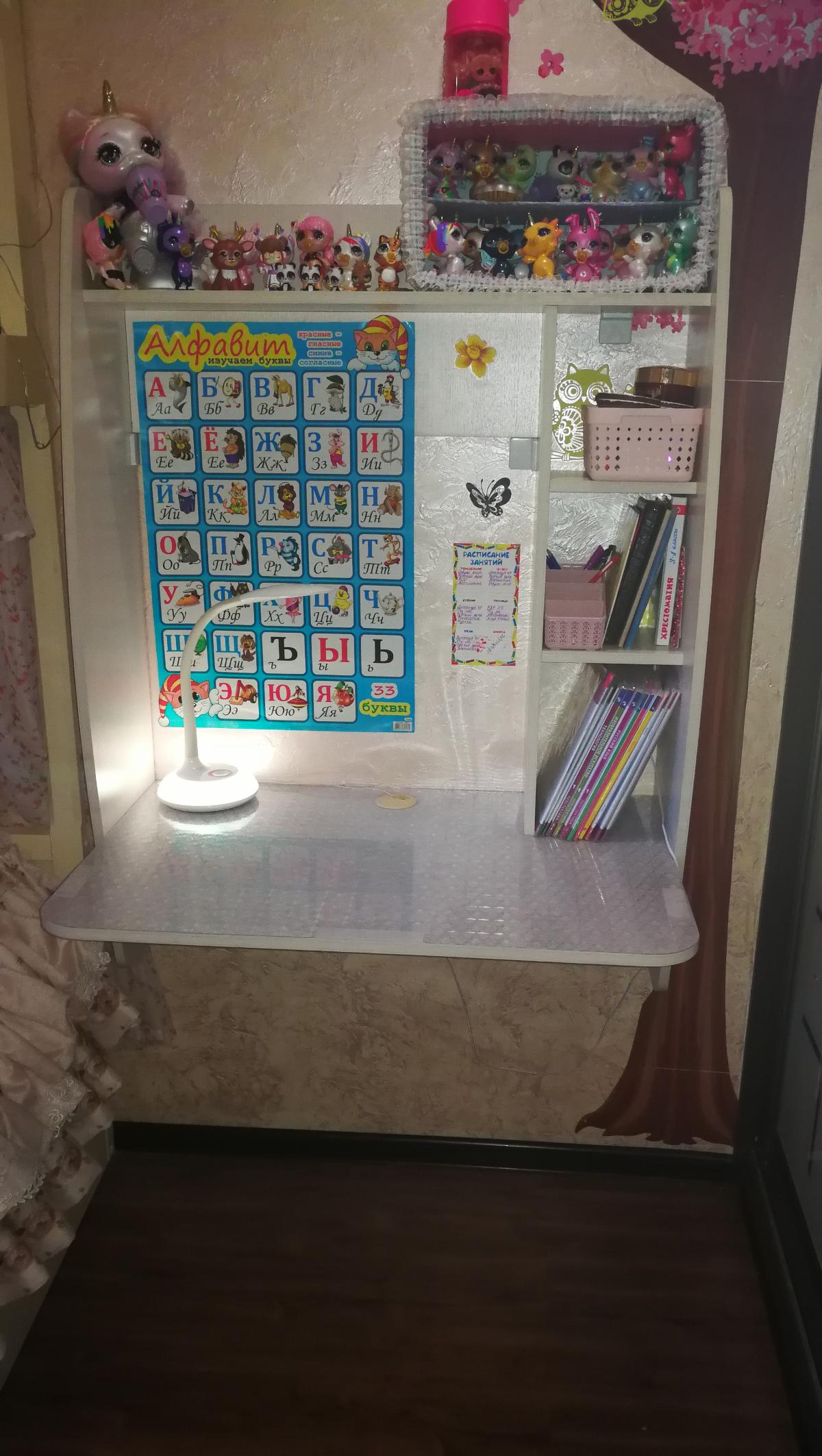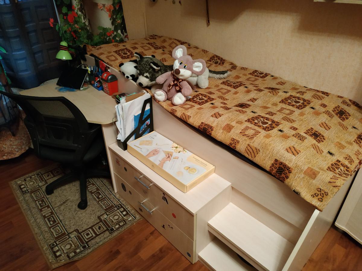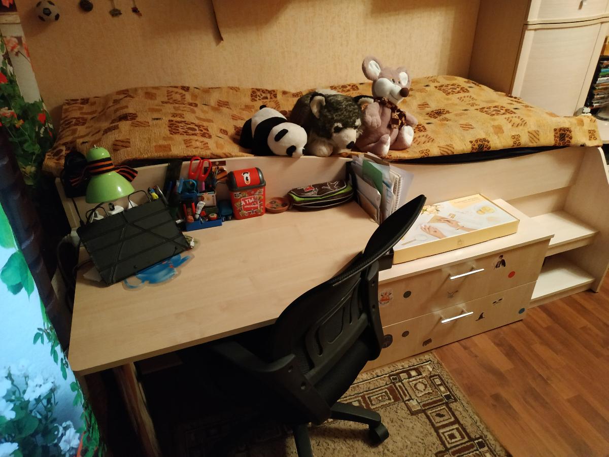 Стол очень понравился, а главное теперь есть куда выкатить нижнее спальное место, для третьего ребенка. Ребята быстро приехали, оперативно установили и усилили крепления. Дизайн тоже быстро очень согласовали, размеры нашего стола 90/120/58,5 цвет белая бодега.  Дополнительно я просила изменить высоту нижней полки, т.к у начальных классов высокие книги. Магазину спасибо.