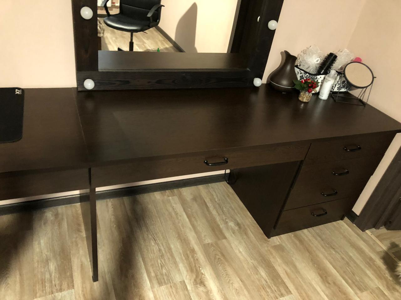 Огромный плюс- изготовление мебели по моим размерам. Сделали все мм в мм. Верят в людей) никаких предоплат, даже несмотря на нестандартные размеры. Стол получился шикарный.Один минус- схема сборки.Имея опыт в сборке мебели, я собирал стол 4 вечера. Однозначно рекомендую к покупке. Но нужно заказывать услугу сборки.
