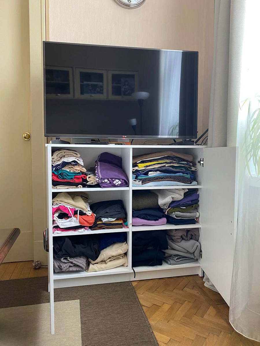 Брали стеллаж с двумя блоками ящиков вместо полок. Удалось немного разобрать и разложить мужские игрушки.