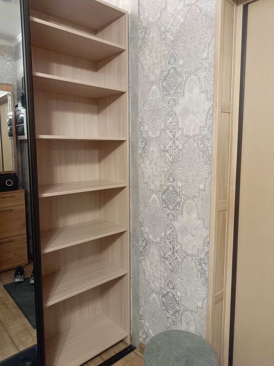 Угловой шкаф без двери брали в гардеробную. Собирал сам.  Удобно, функционально.