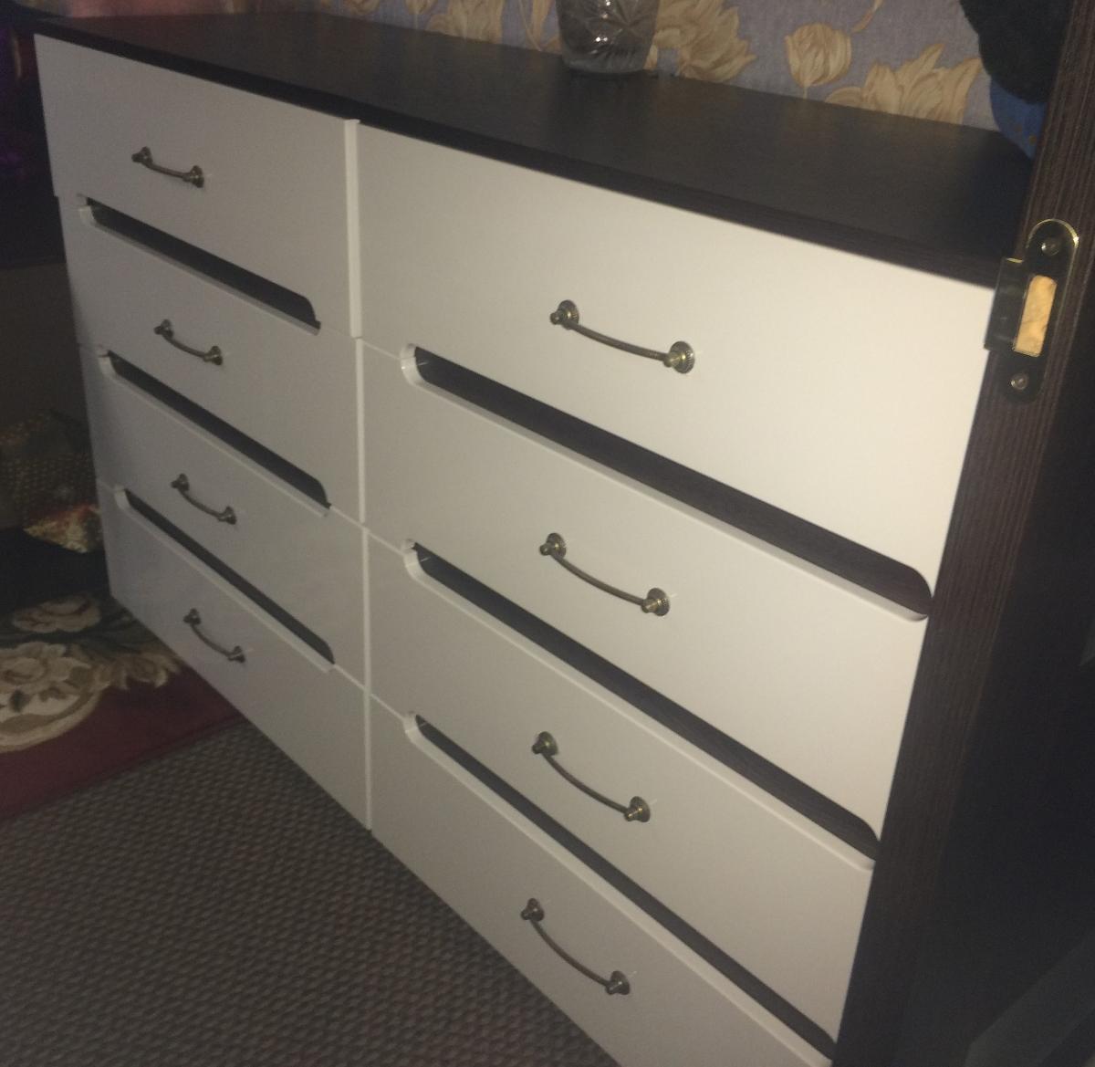 Заказ 00000347777 от 27.01.2020. Взял именно этот комод, т.к. у меня такая же стенка. Качество отличное, комплектация хорошая. Можно выбрать размер, фурнитуру и цвет. Из-за того, что максимальная ширина 1250 мм, пришлось взять 2 х 750 мм, т.к. мне нужен был 1500 мм. В итоге получилось лучше, чем ожидал. Заказ поставили в указанный срок. Очень доволен.