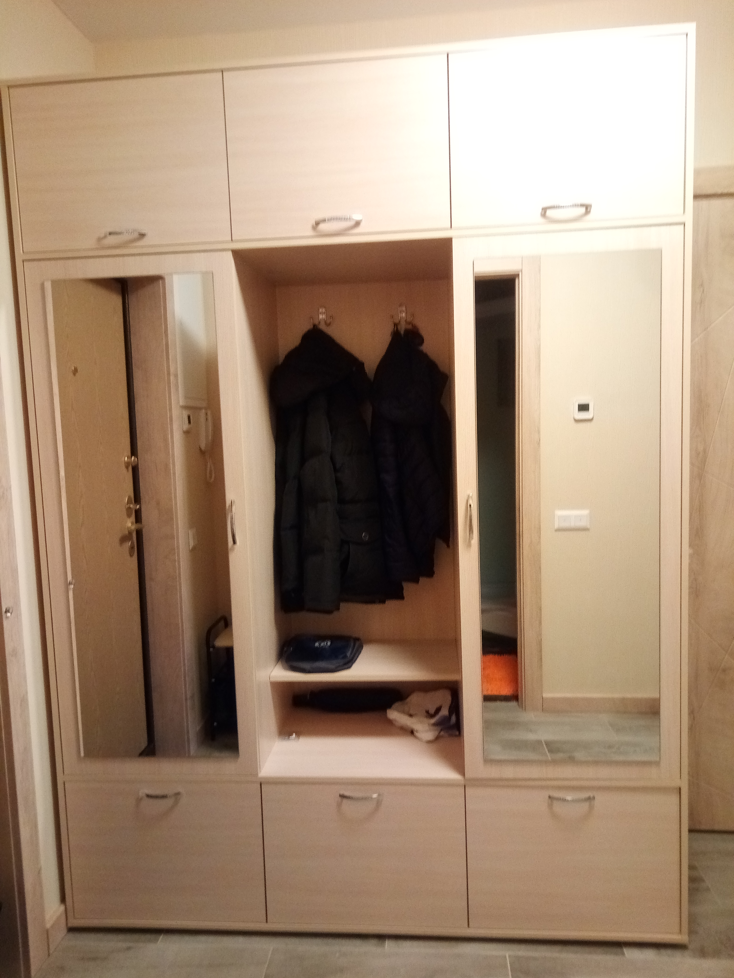 Маленькая,но вместительная прихожая для малогабаритной квартиры по адекватной цене. Отличный бюджетный вариант! Привезли вовремя, комплектующие в полном составе, собирали сами. Сервисом и качеством довольны. Решилась на заказ, когда посмотрела реальные фото и отзывы других довольных покупателей. Спасибо вам!