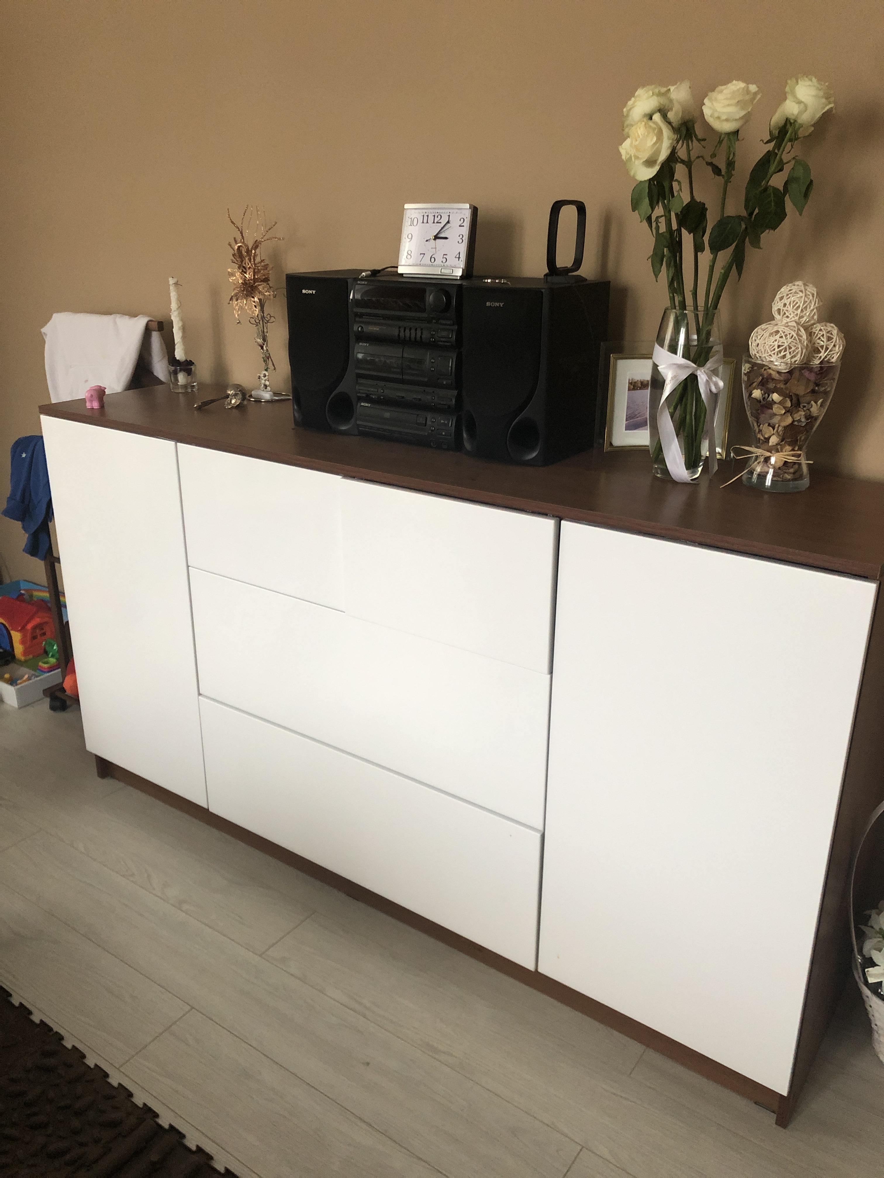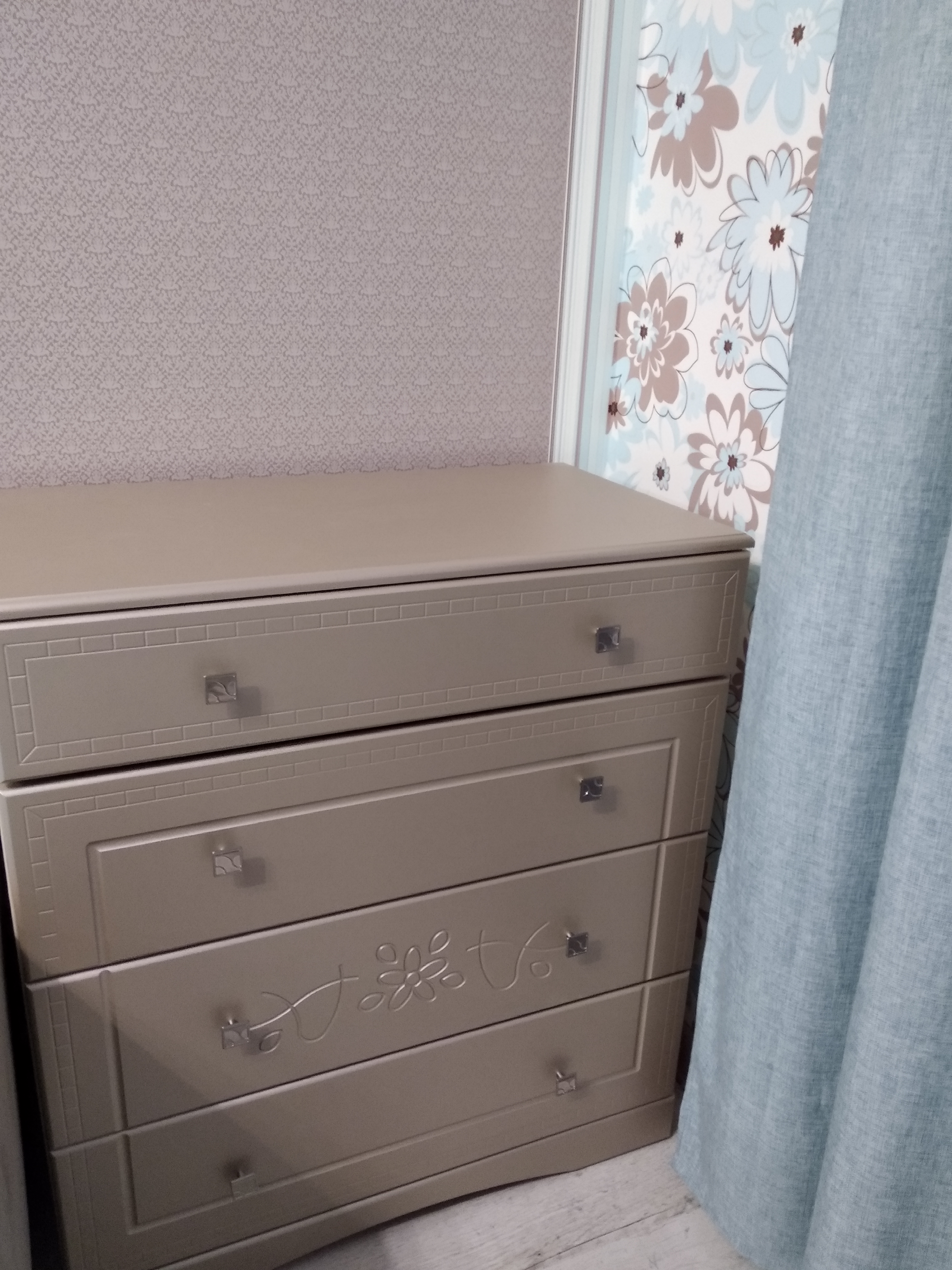 Очень качественный комод, все отделения удобные, открывается нажатием, ящики глубокие, вместительные. Я заказывала по своим размерам самый высокий и широкий. Очень довольна! По цвету подобрала к остальной мебели