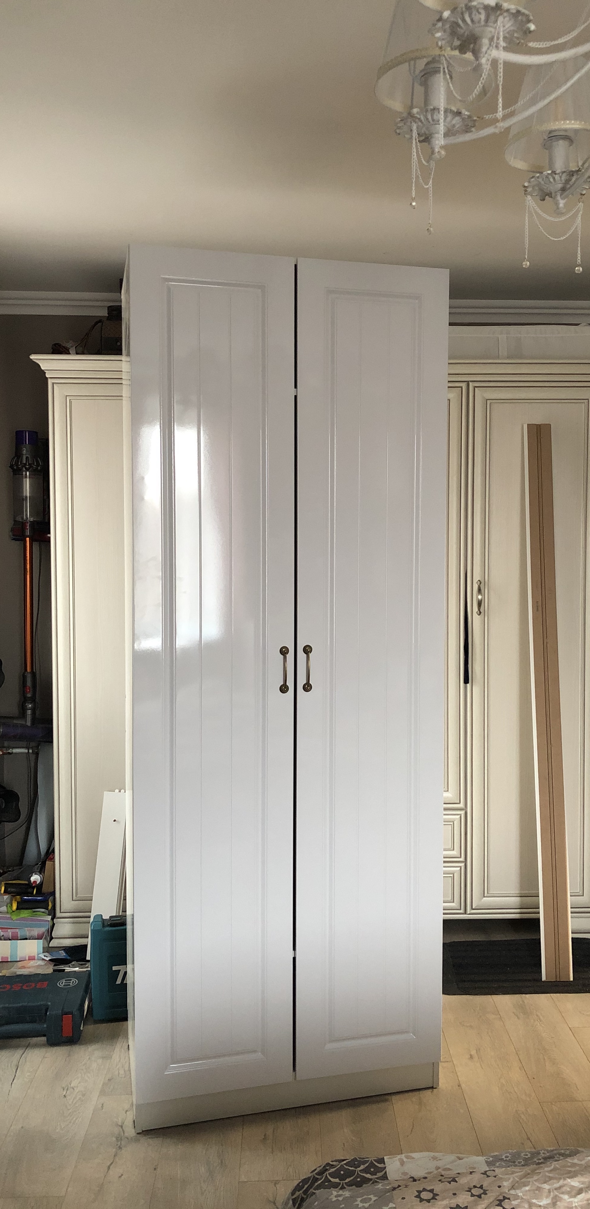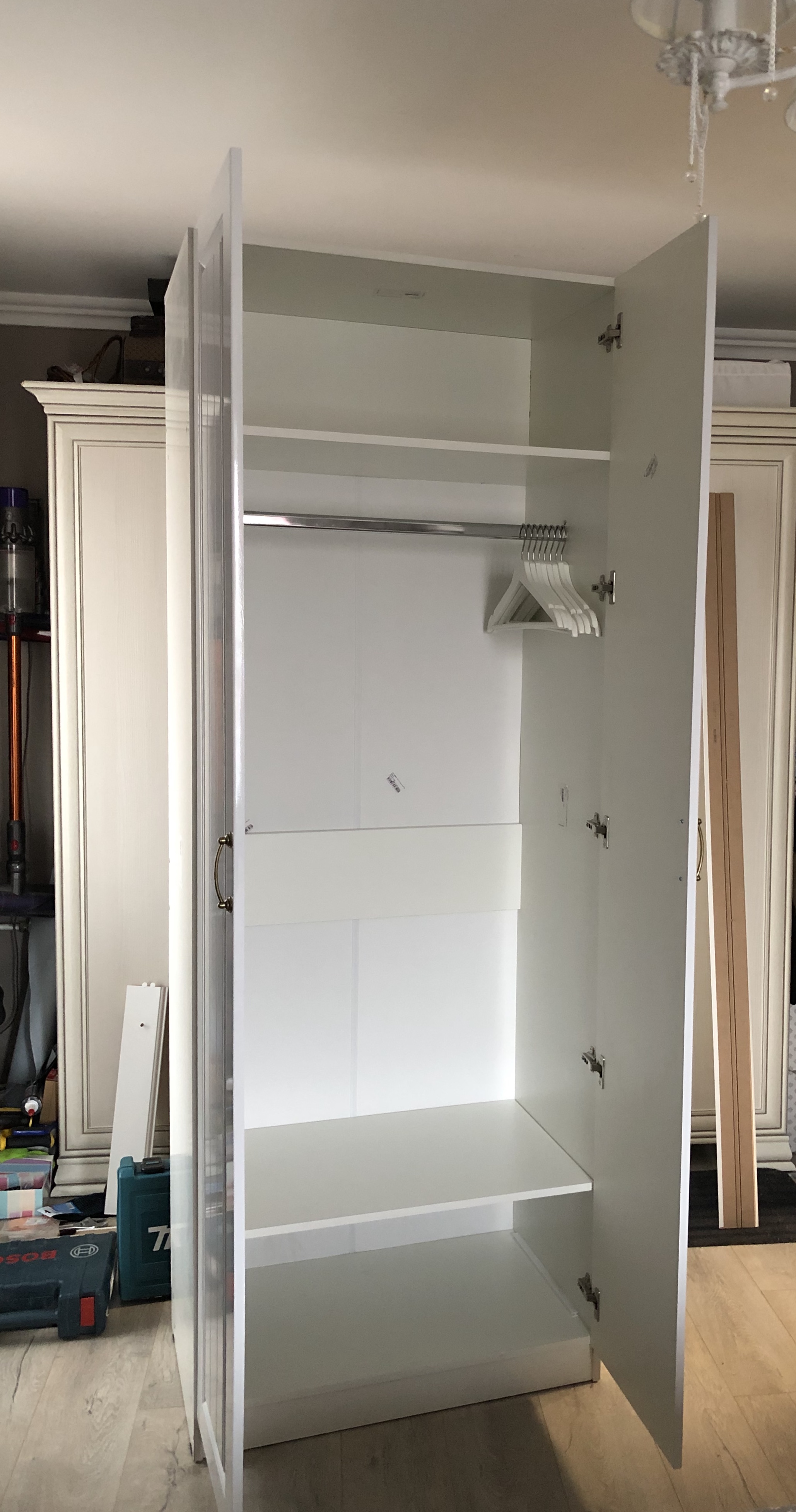 Заказали шкаф в белом цвете с глянцевыми дверьми. Очень удобно что можно выбрать покрытие и цвет, фурнитуру и наполненность. Двери хорошего качества, каркас низкого, но за такую цену - отлично👌 были небольшие сколы краски на полках, но тоже не критично. Инструкция не совсем простая, но разобрались быстро, собирать в 4 руки полчаса.