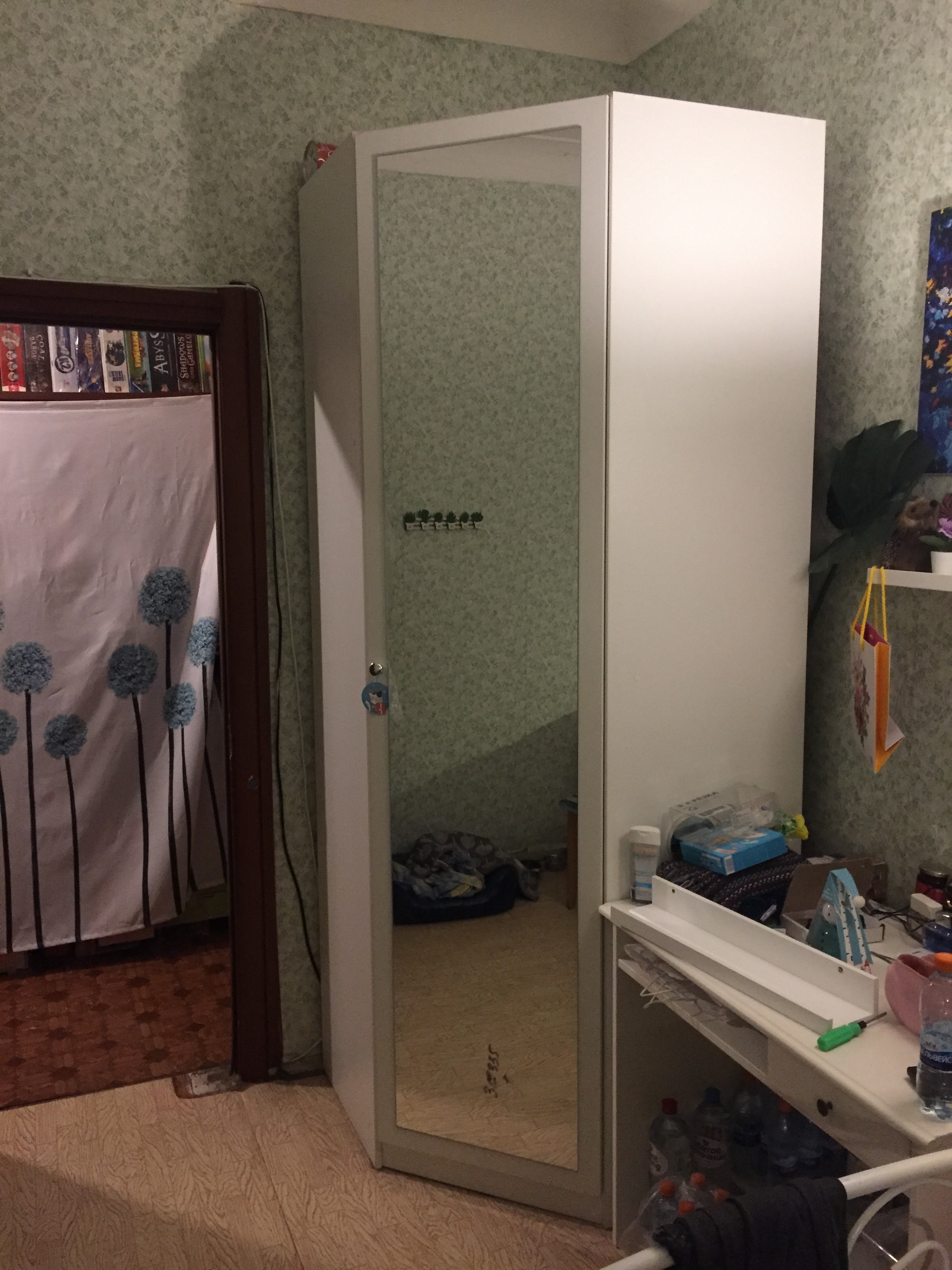 Купила этот шкаф себе в комнату и очень довольна! Взяла в белом цвете с зеркалом.Недорого и  прекрасно вписывается в интерьер. Зеркало и полки  надежно закреплены и выдерживают большой вес вещей. Привезли в течение недели, на следующий день приехал сборщик и собрал быстро и аккуратно. Магазин хороший, без нареканий цена/качество соответствуют.