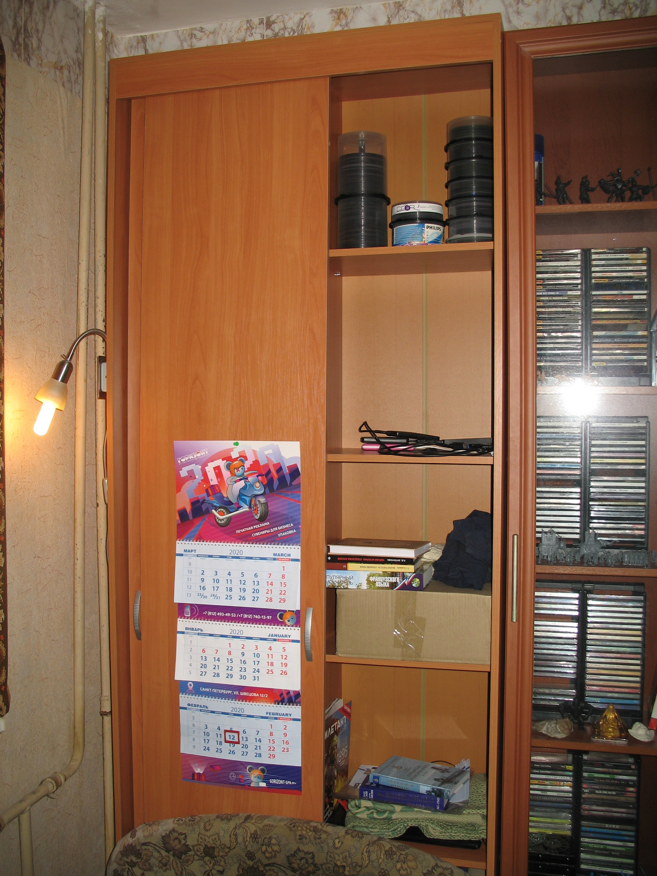 Очень долго искал навесной шкаф в нишу над кроватью, никак не мог найти подходящего варианта... Пока вдруг не осенило: а что если вместо навесного шкафа купить шкаф-купе, да и упереть в него кровать. Идея показалась гениальной. Во-первых, не надо будет бурить перфоратором дырки в капитальной стене, чтобы повесить навесной шкаф, что очень облегчает решение задачи. Во-вторых, вместимость шкафа-купе почти в 3 раза окажется больше навесного шкафа, что уже само по себе решающий аргумент. Сказано-сделано, залез в И-нет и почти сразу наткнулся на данный эконом-вариант шкафа-купе производства компании Bestmebelshop. Что называется, глаз на этот шкаф положил моментально. Во-первых, это просто-таки идеальный вариант для такой маленькой комнаты как у меня, во-вторых, порадовало неплохое соотношение цена-качество (дешевле похожих вариантов в И-нете не нашёл). Шкаф очень понравился! Очень вместительный! На нижние полки я положил хлам (старые журналы и газеты, освободив 2 отделения другого шкафа). Полки слева пойдут под бельё, полки справа под книги. Что особенно отрадно, на верхнюю полку помещаются 2 ряда по 3 в ряд боксов с СД- и ДВД-дисками.   В общем спасибо Bestmebelshop и мастеру Андрею из петербургского отдела Bestmebelshop, который мне этот шкаф собрал.