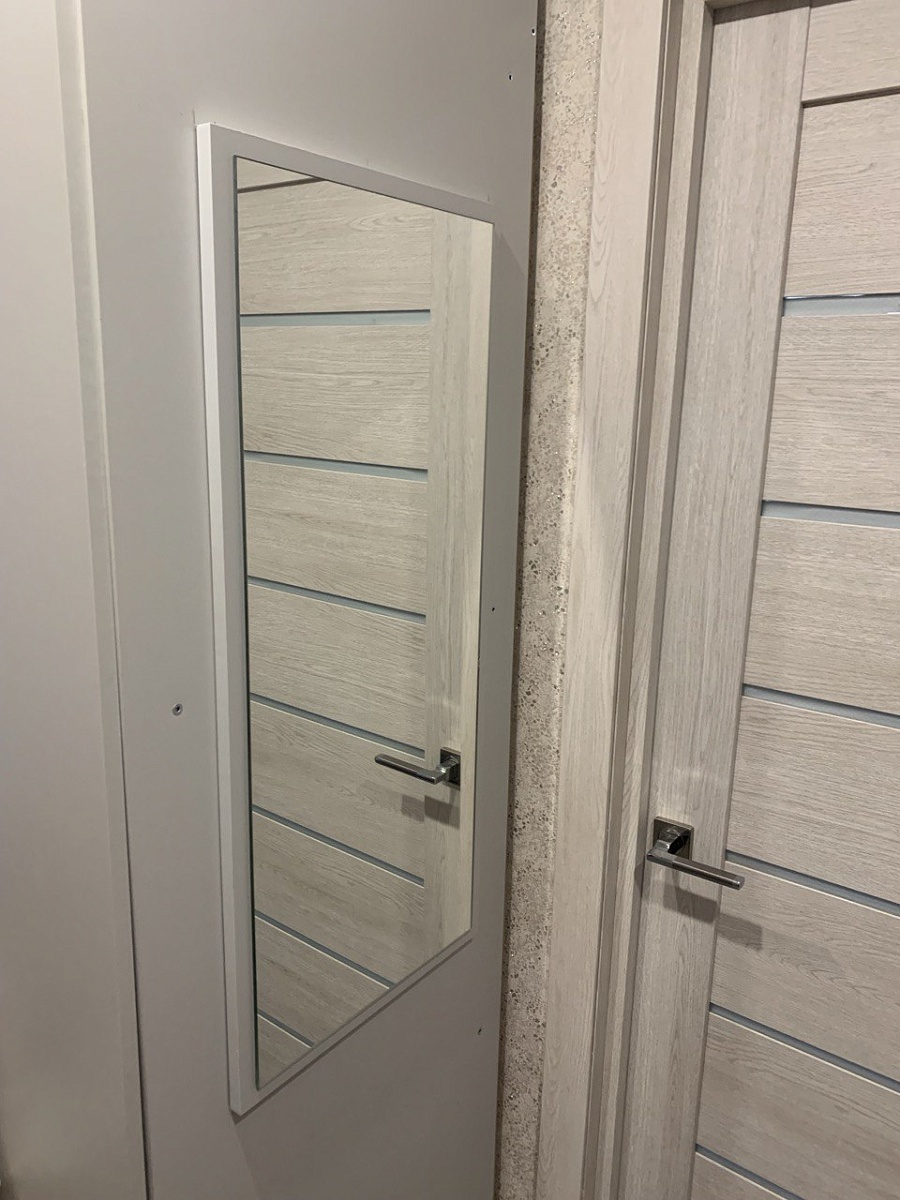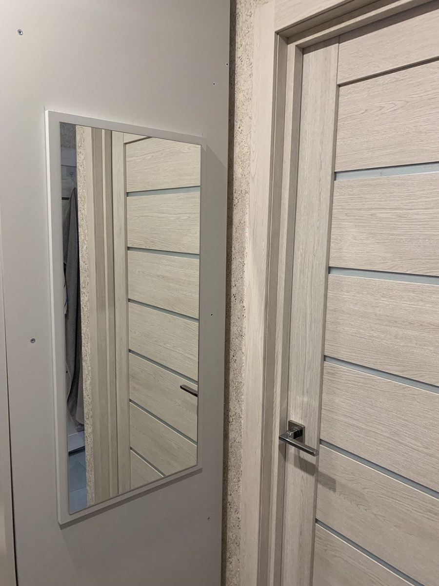 Заказывала зеркало, чтобы повесить на торце шкафа. Зеркало пришло целое, хорошо упакованное. Цвет рамы выбирала в цвет шкафа -серый, сама рама достаточно массивная, тяжелая, но все равно удалось ее приклеить на жидкие гвозди к шкафу.Зеркало отражает хорошо, без нареканий, без искажения цветов и форм.